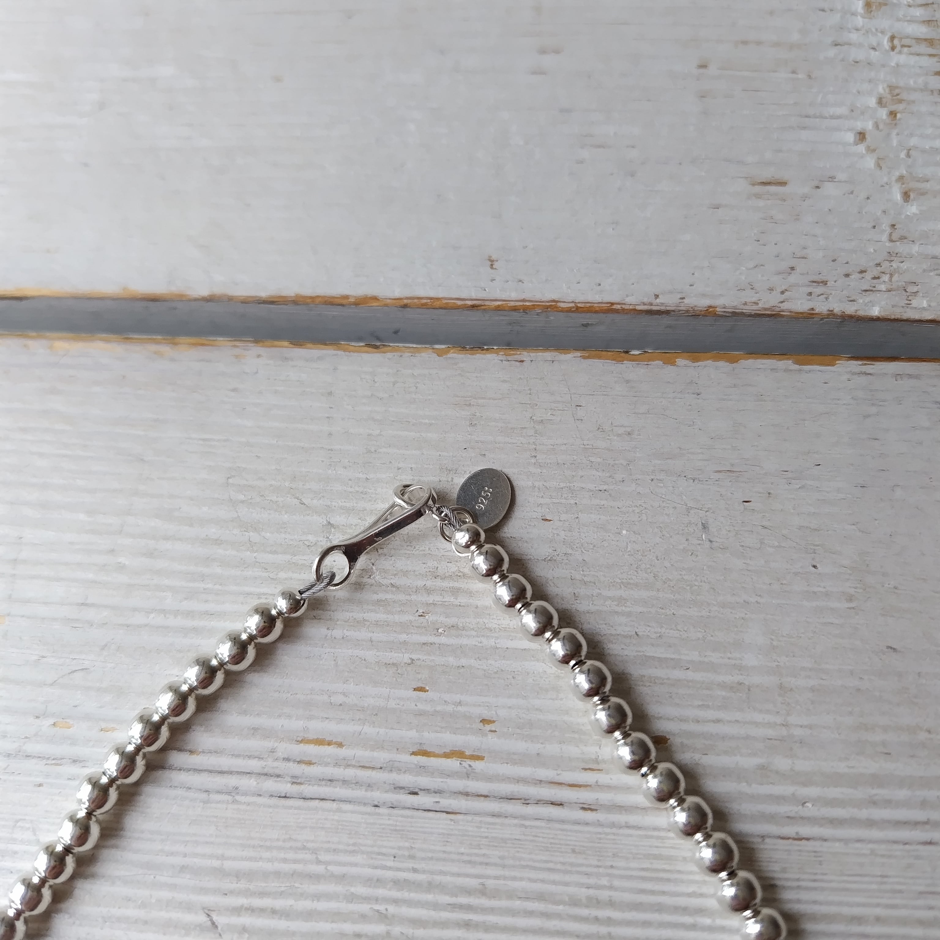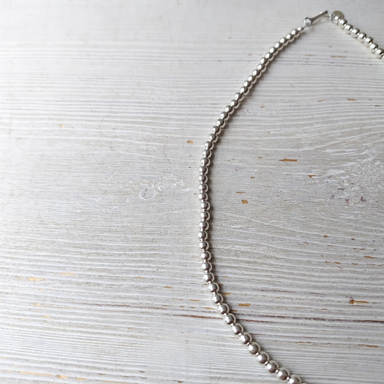 4mm玉 40cm ナバホパール シルバーネックレス インディアンジュエリー