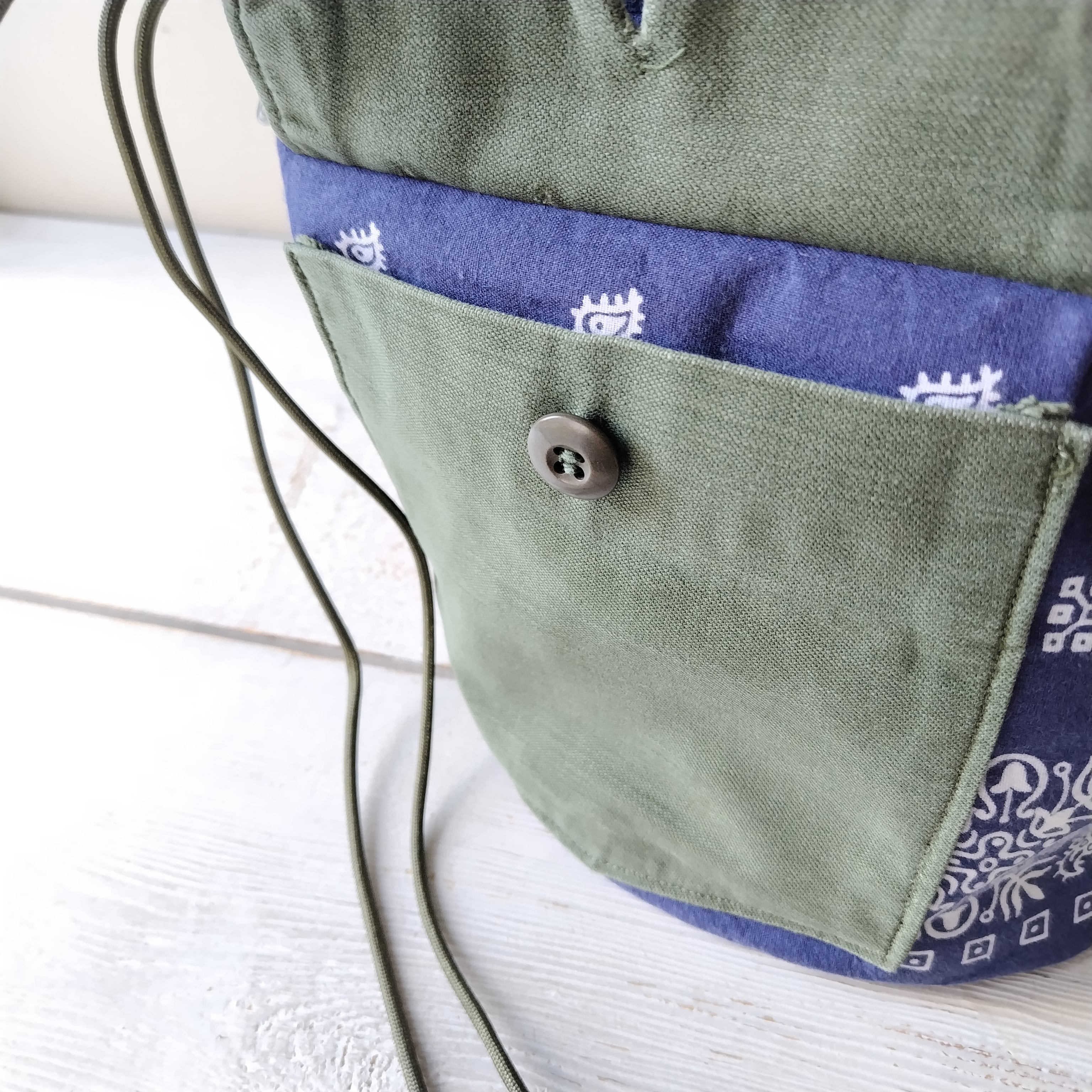 ラージサイズ バンダナ x 外付けポケット リメイク巾着 2wayショルダーバッグ