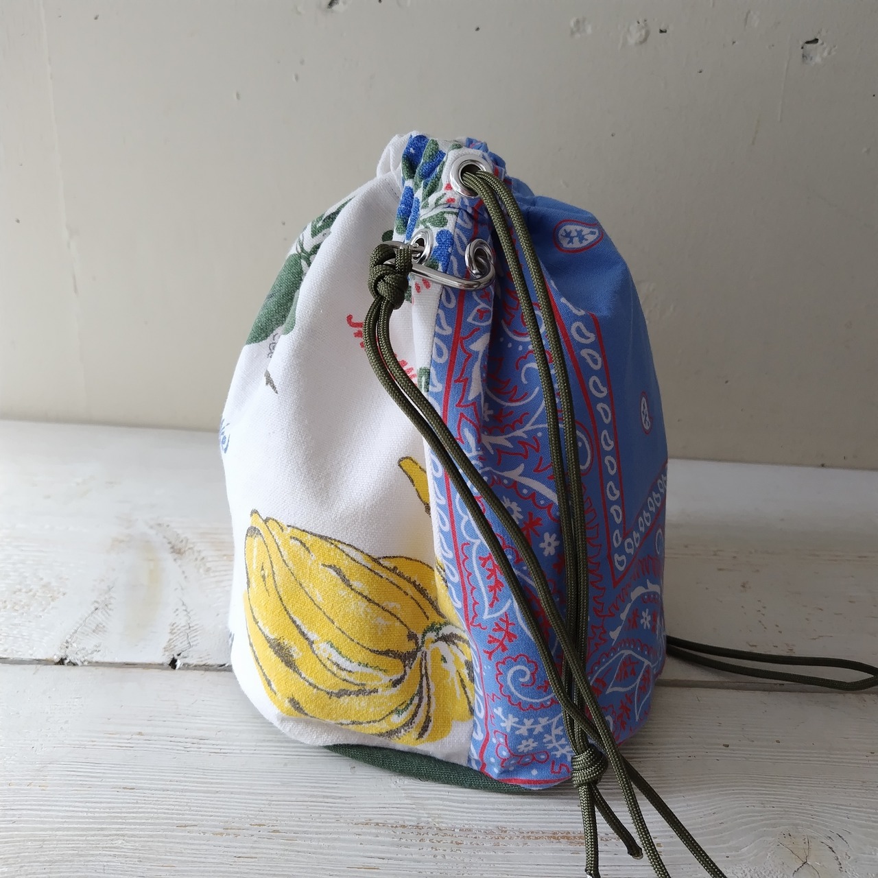 ラージサイズ ビンテージ レアカラーバンダナ リメイク巾着 2wayショルダーバッグ
