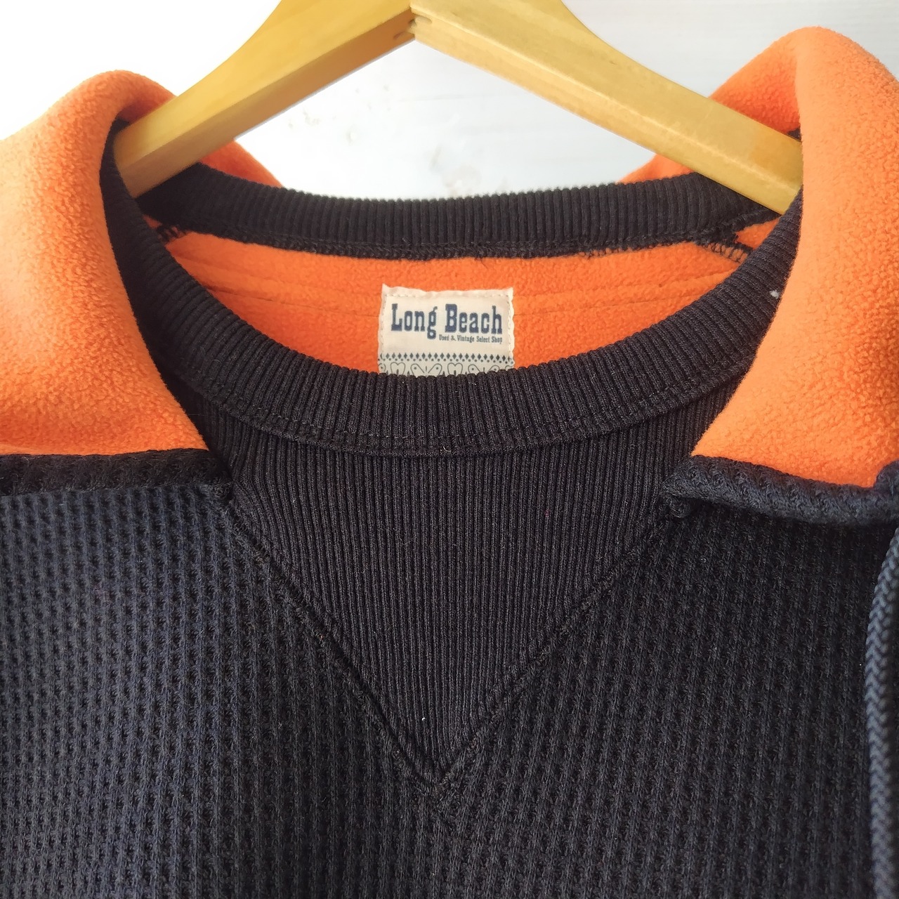 Mサイズ LongBeach x IMPRESTORE 別注 はめ込み前V 後付けパーカー サーマル x フリース