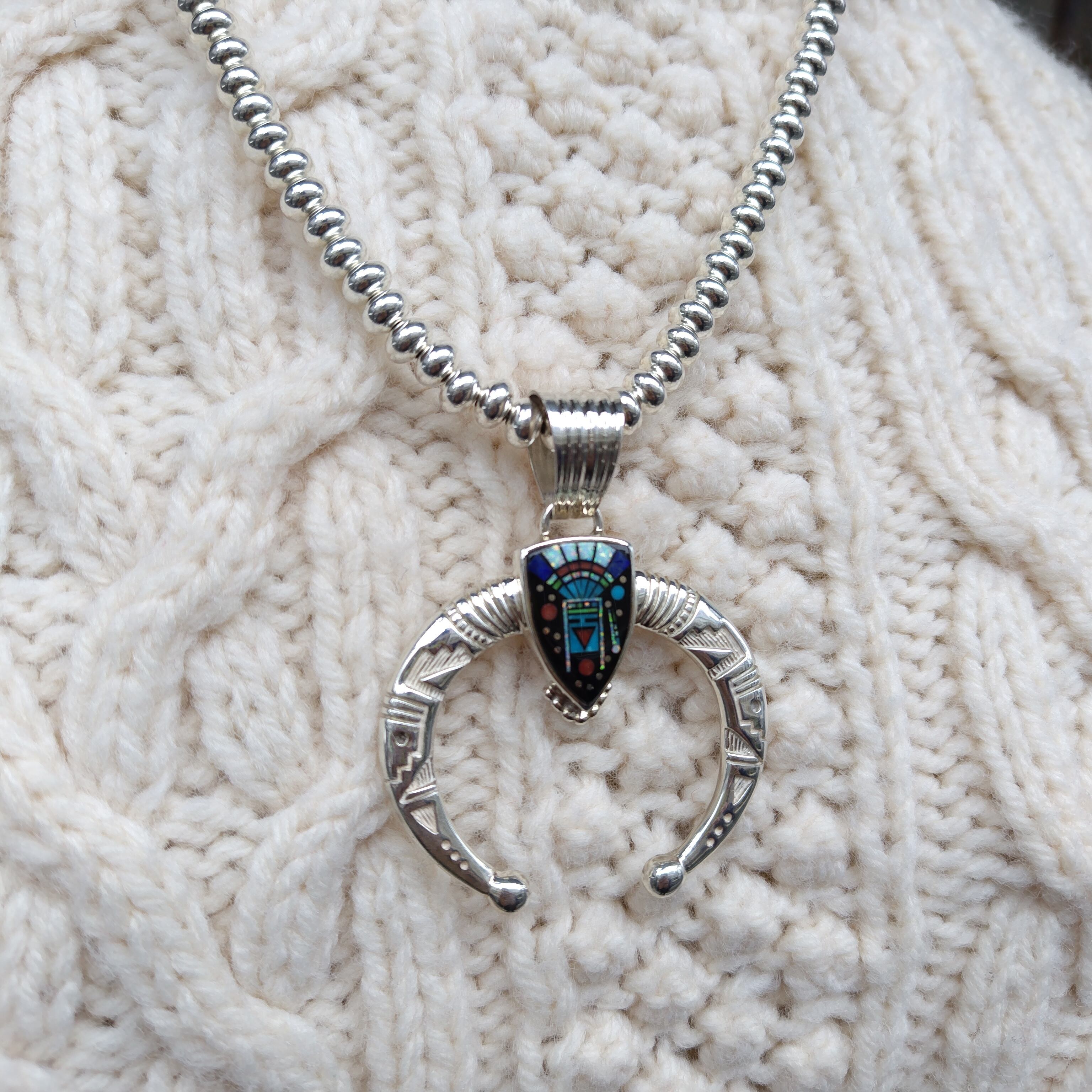 デザイン最高のナバホ インレイ ナジャ シルバー ネックレスになります!