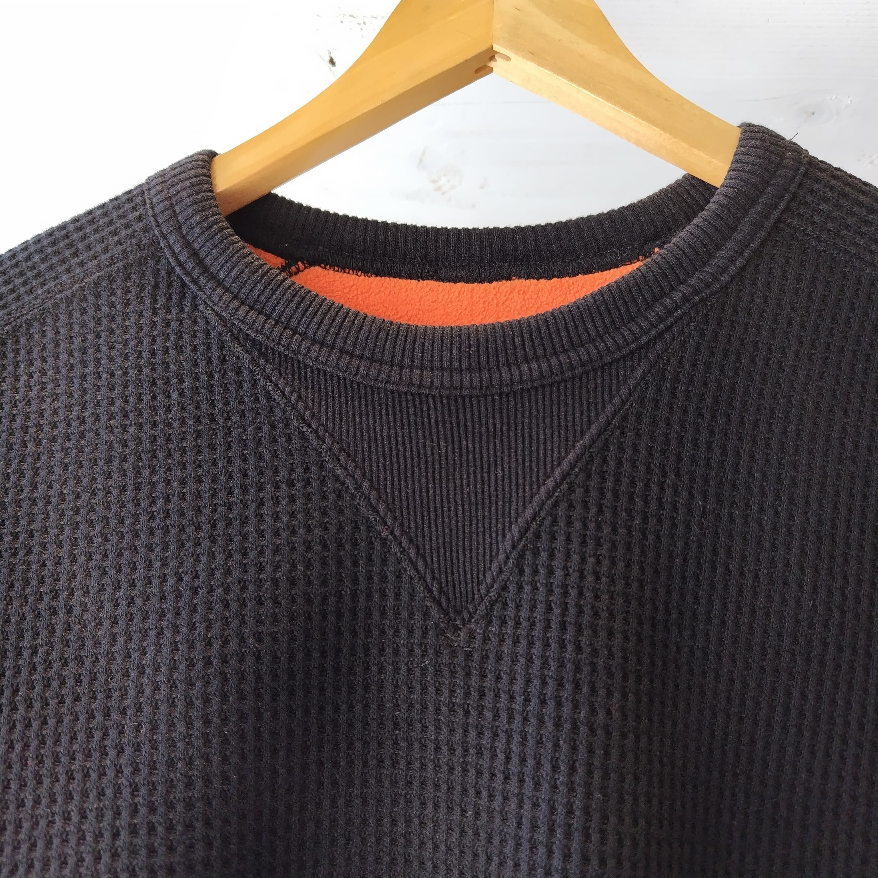 Sサイズ Long Beach x IMPRESTORE 別注 はめ込み前V ブラックサーマル 裏 オレンジフリース