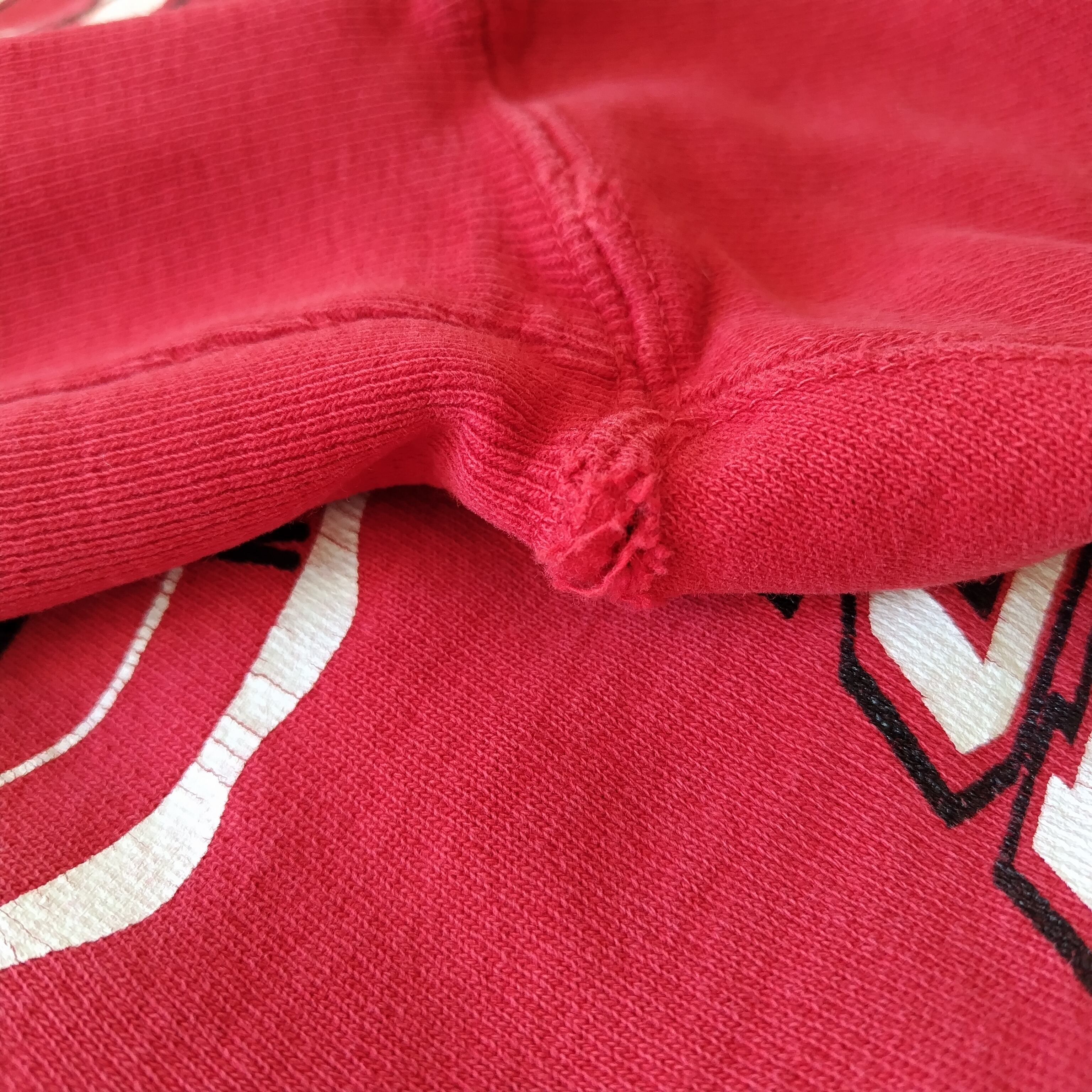 洗い込んだ感、リブに所々若干のダメージがございますがプリントのいいリバースウィーブはなかなかでてきません!!