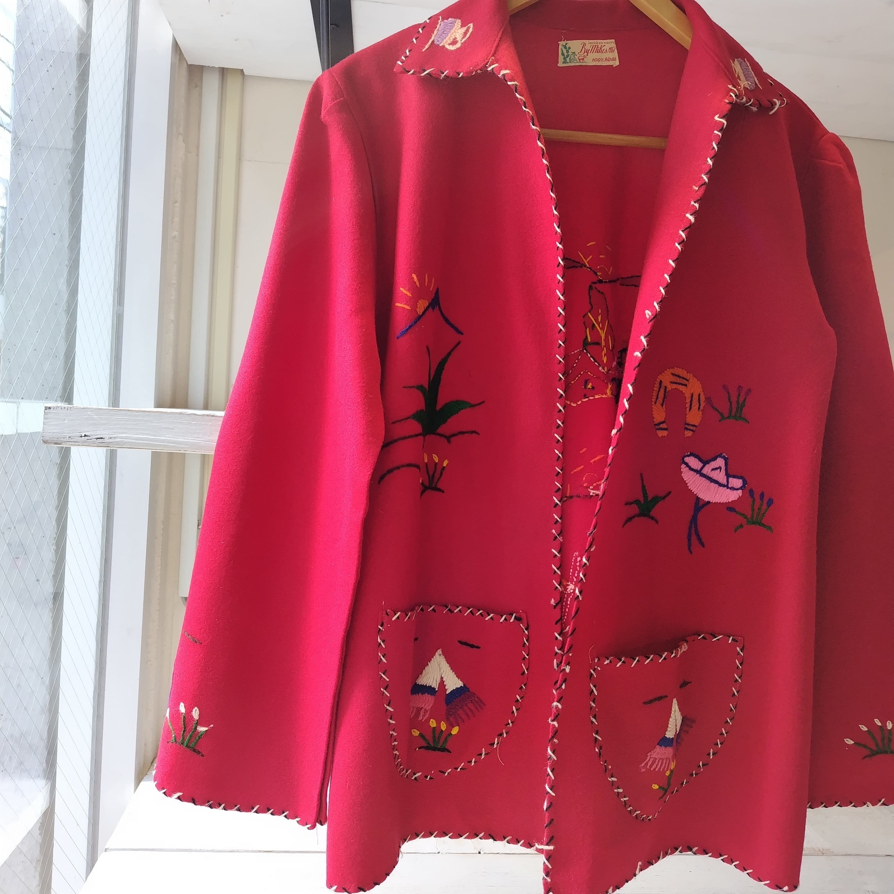 洗いこんだ感、ウール特有の毛羽立ち、左袖に微量のシミ、所々に刺繍のホツレがございますが雰囲気とレア度が間違いなく勝ってるかと思います!!
