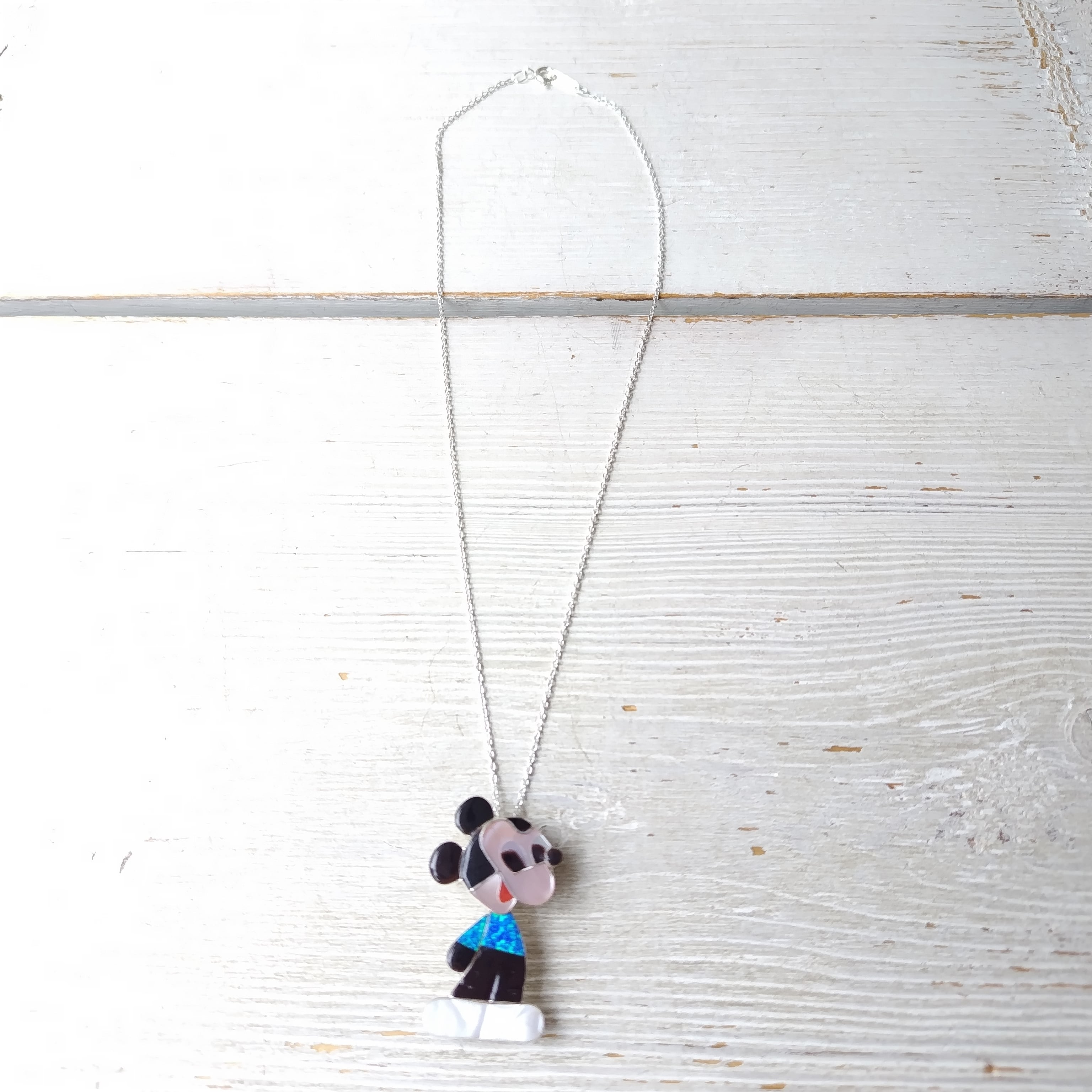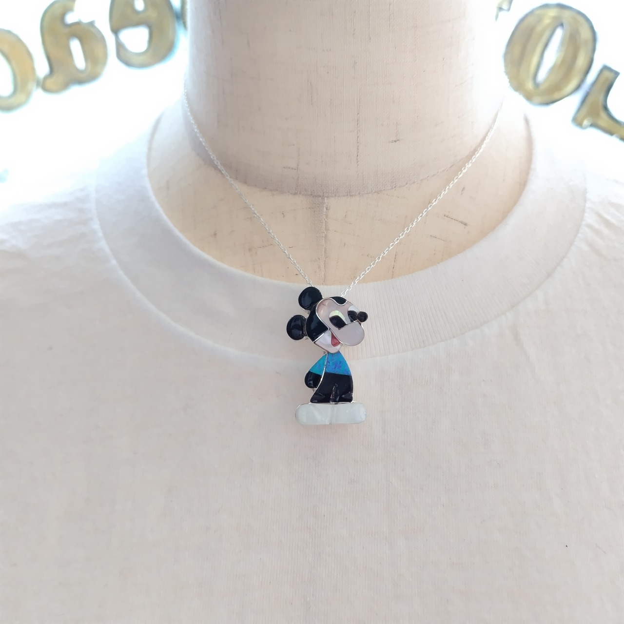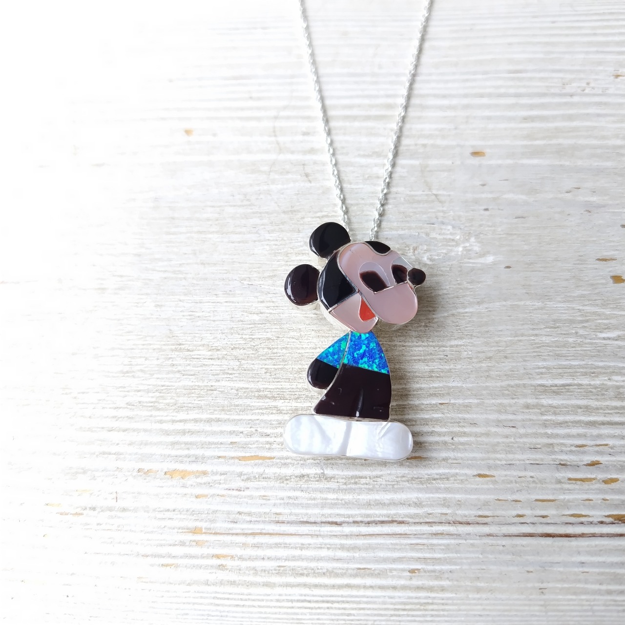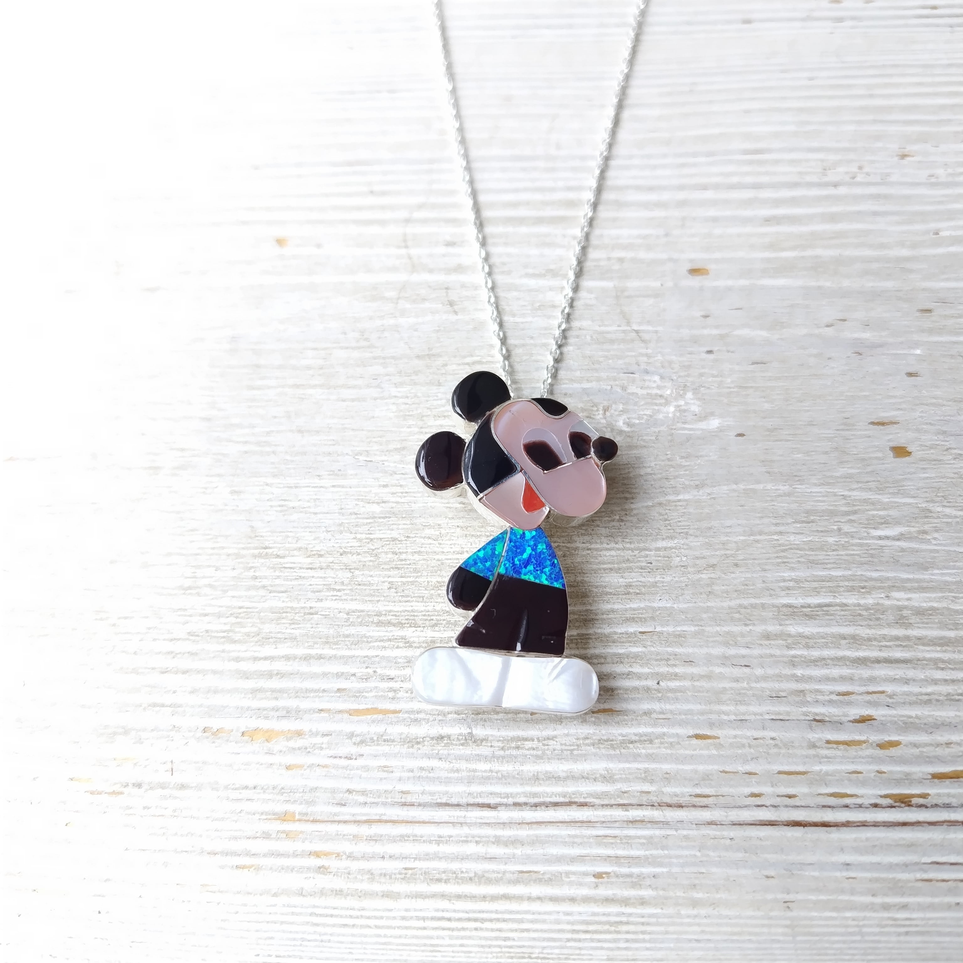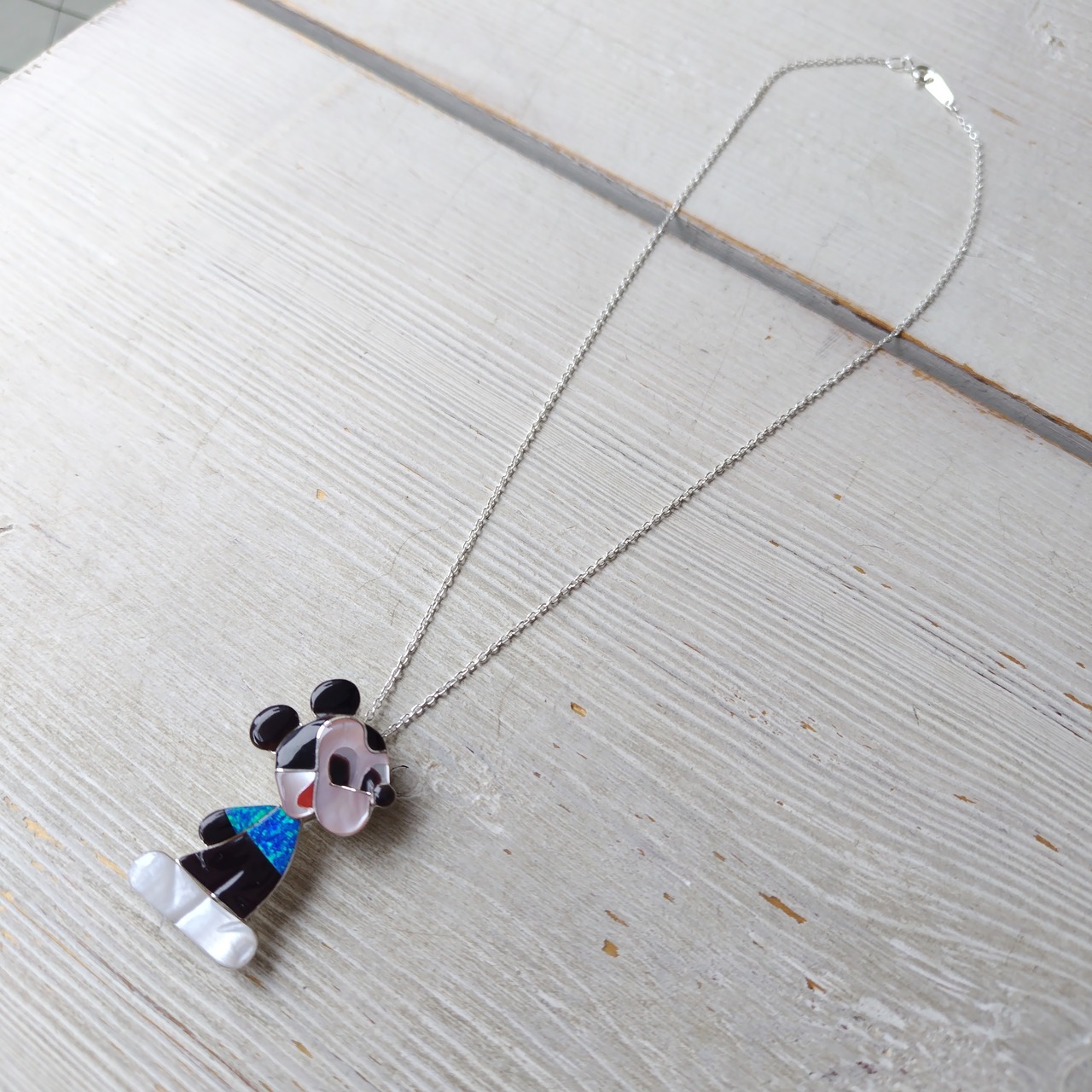 ZUNI Paula Leekity インレイ シルバーブローチ +トップ 40cm シルバーチェーン付き インディアンジュエリー