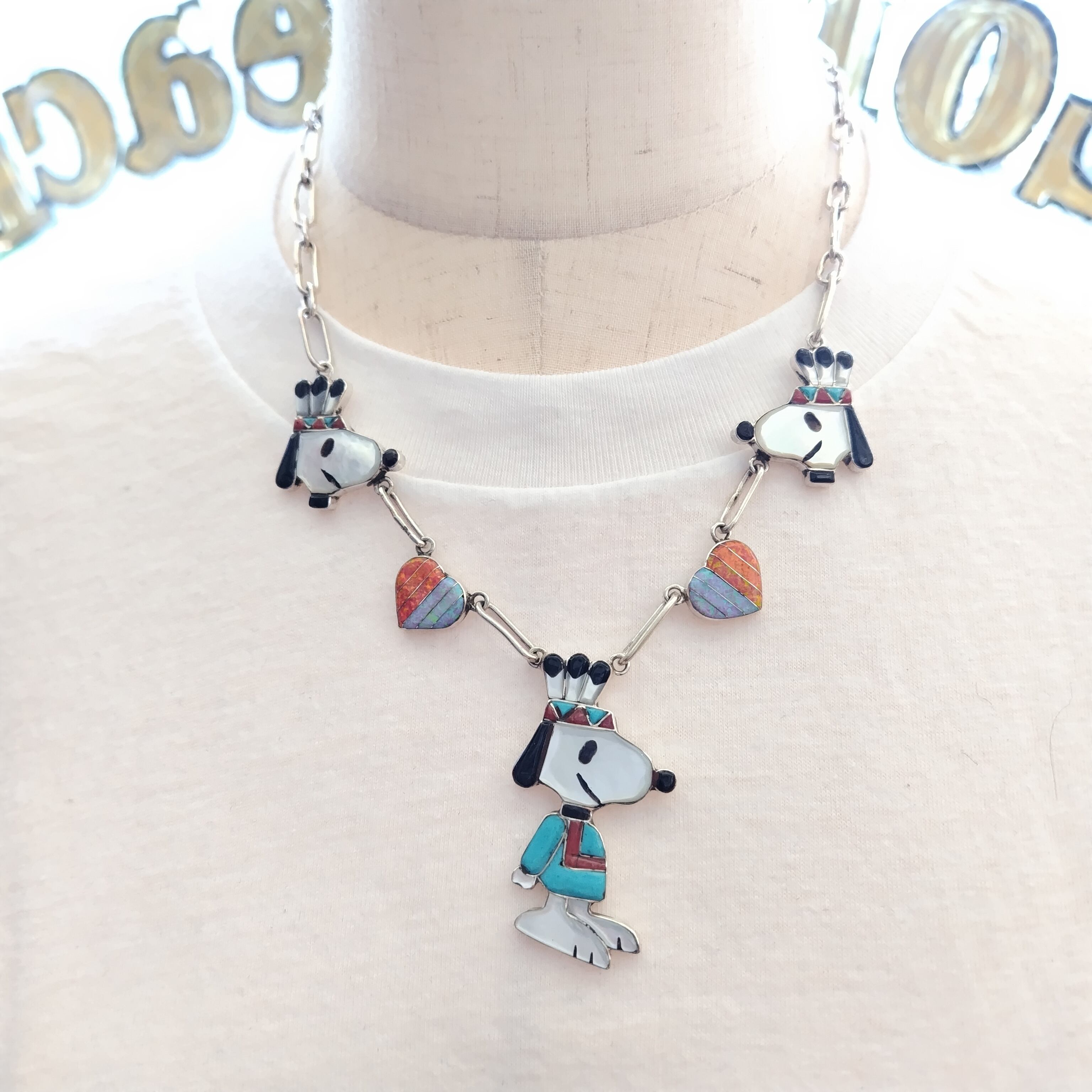 ZUNI DON DEWA インレイ シルバーネックレス インディアンジュエリー