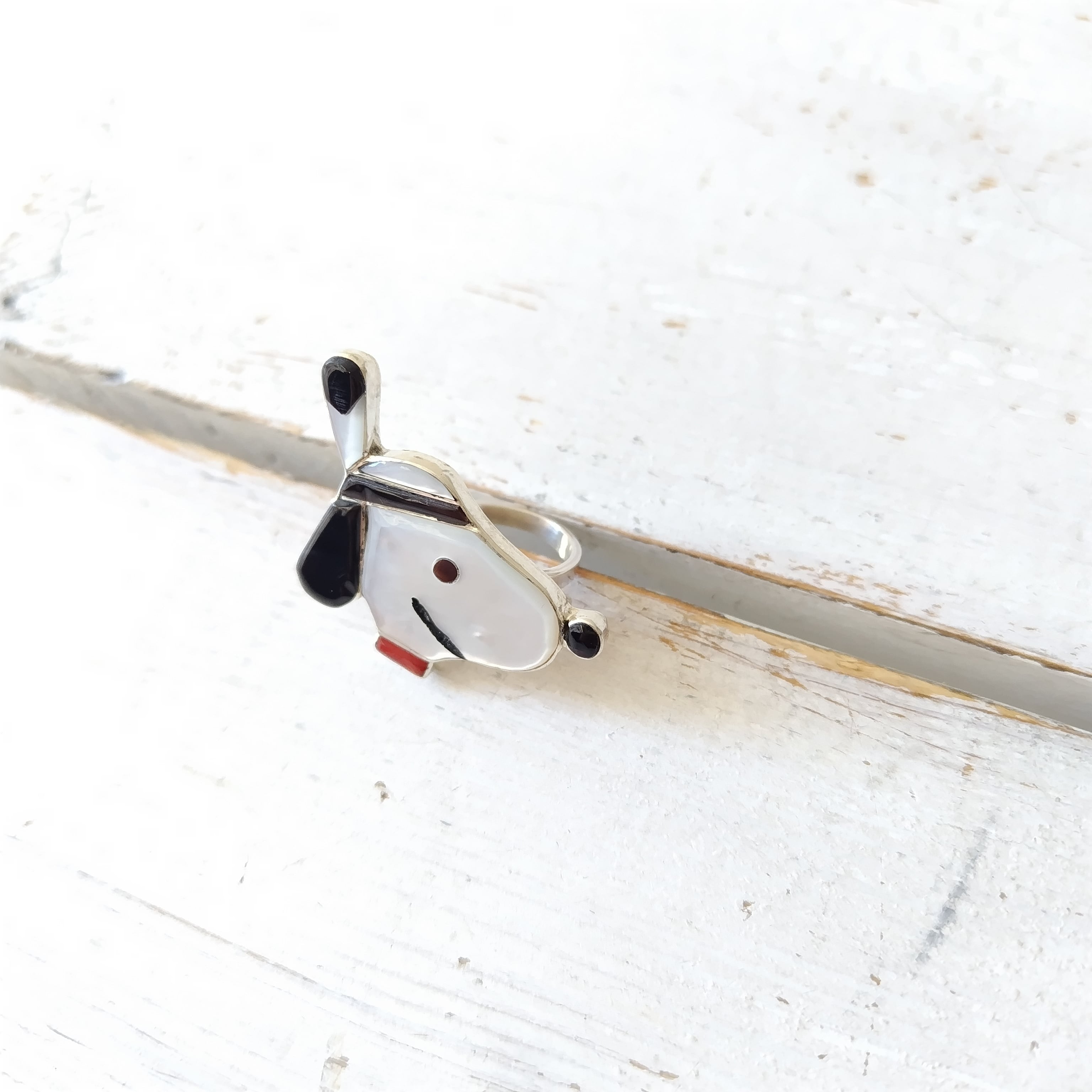 5号前後フリーサイズ ZUNI DON DEWA インレイ シルバーリング インディアンジュエリー