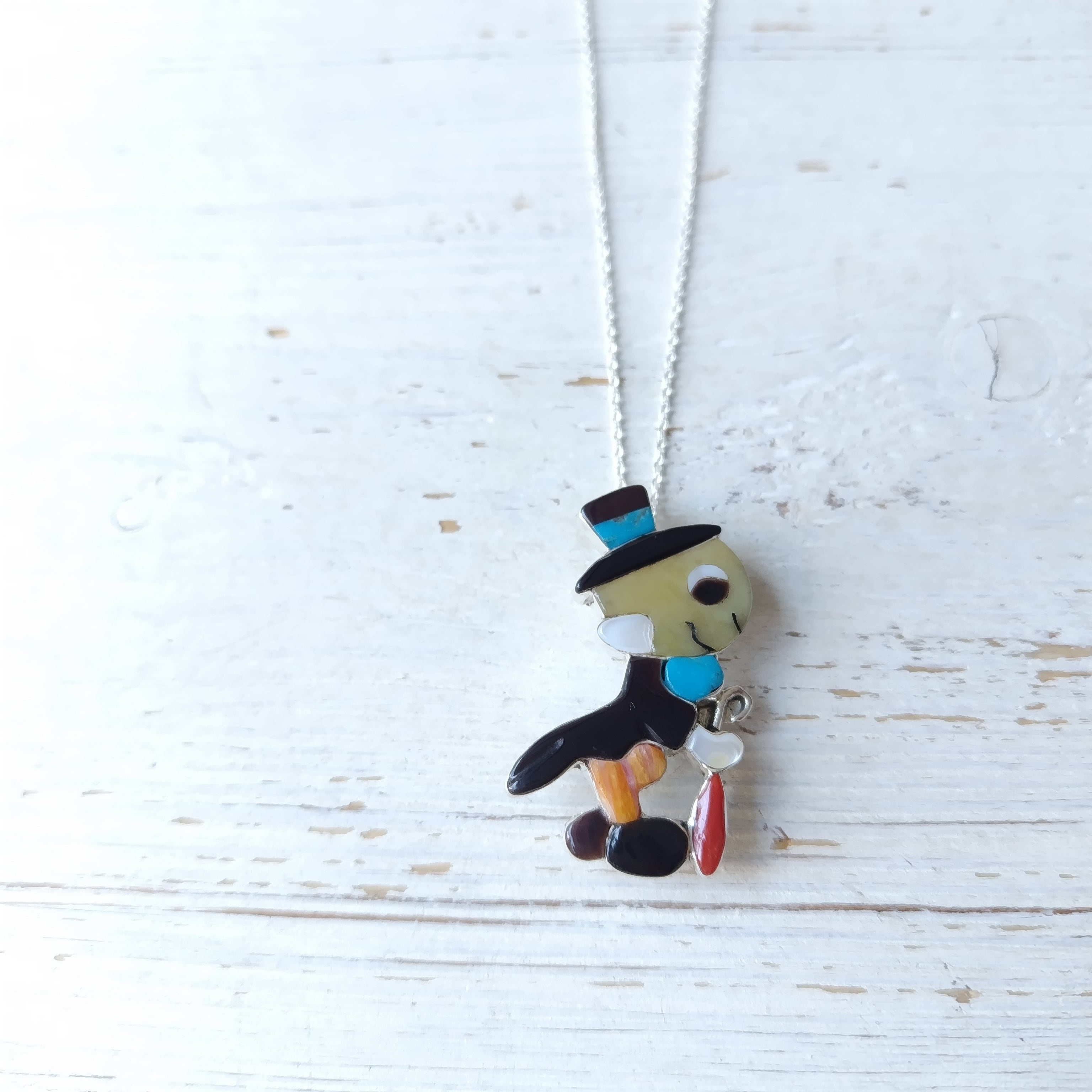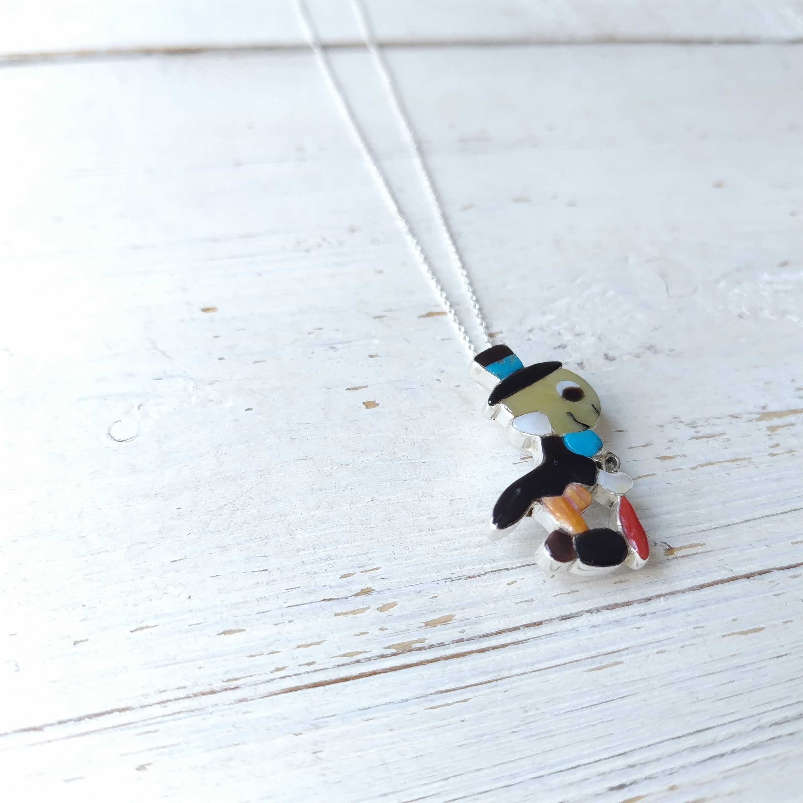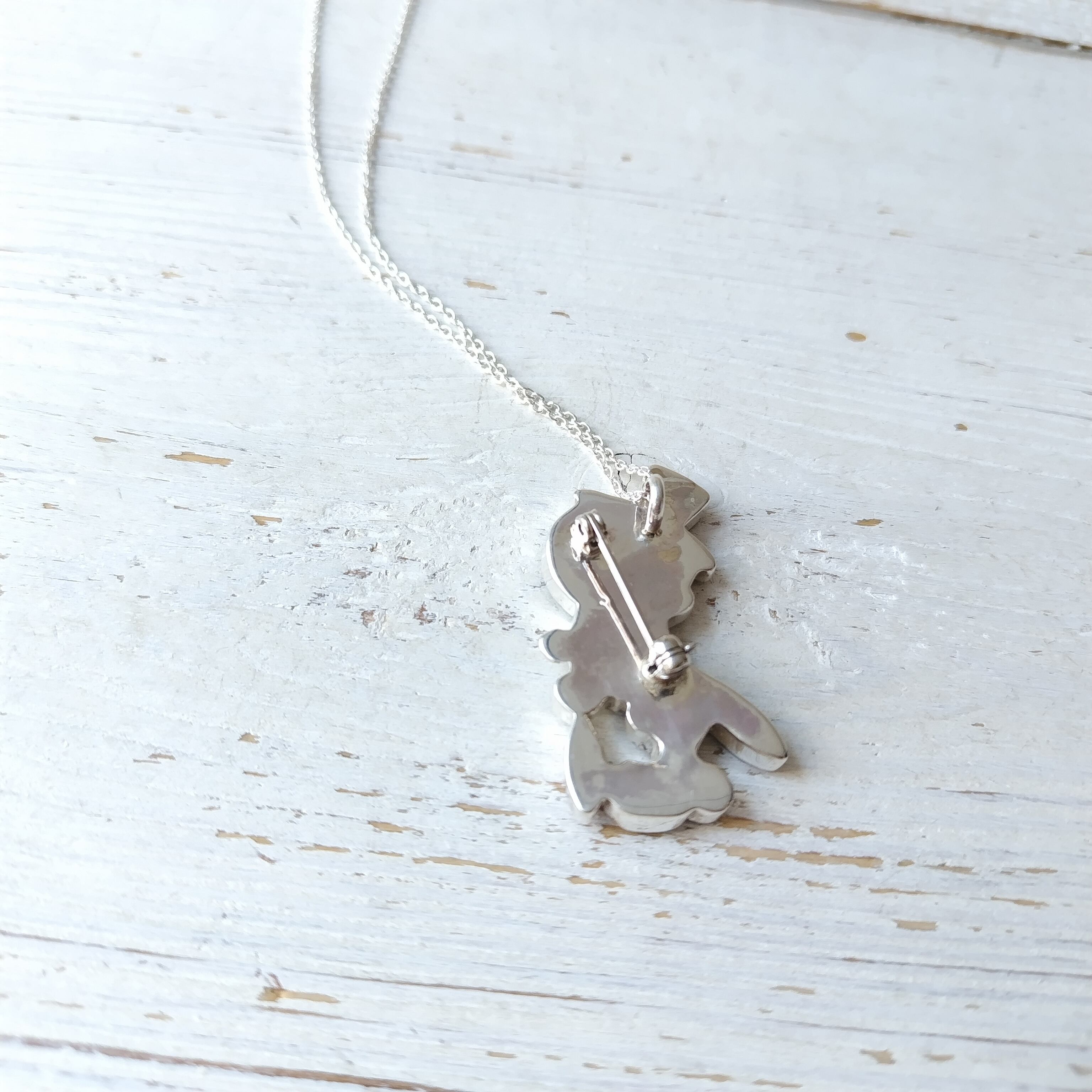 ZUNI Paula Leekity インレイ シルバブローチ + トップ 45cm シルバーチェーン付き インディアンジュエリー