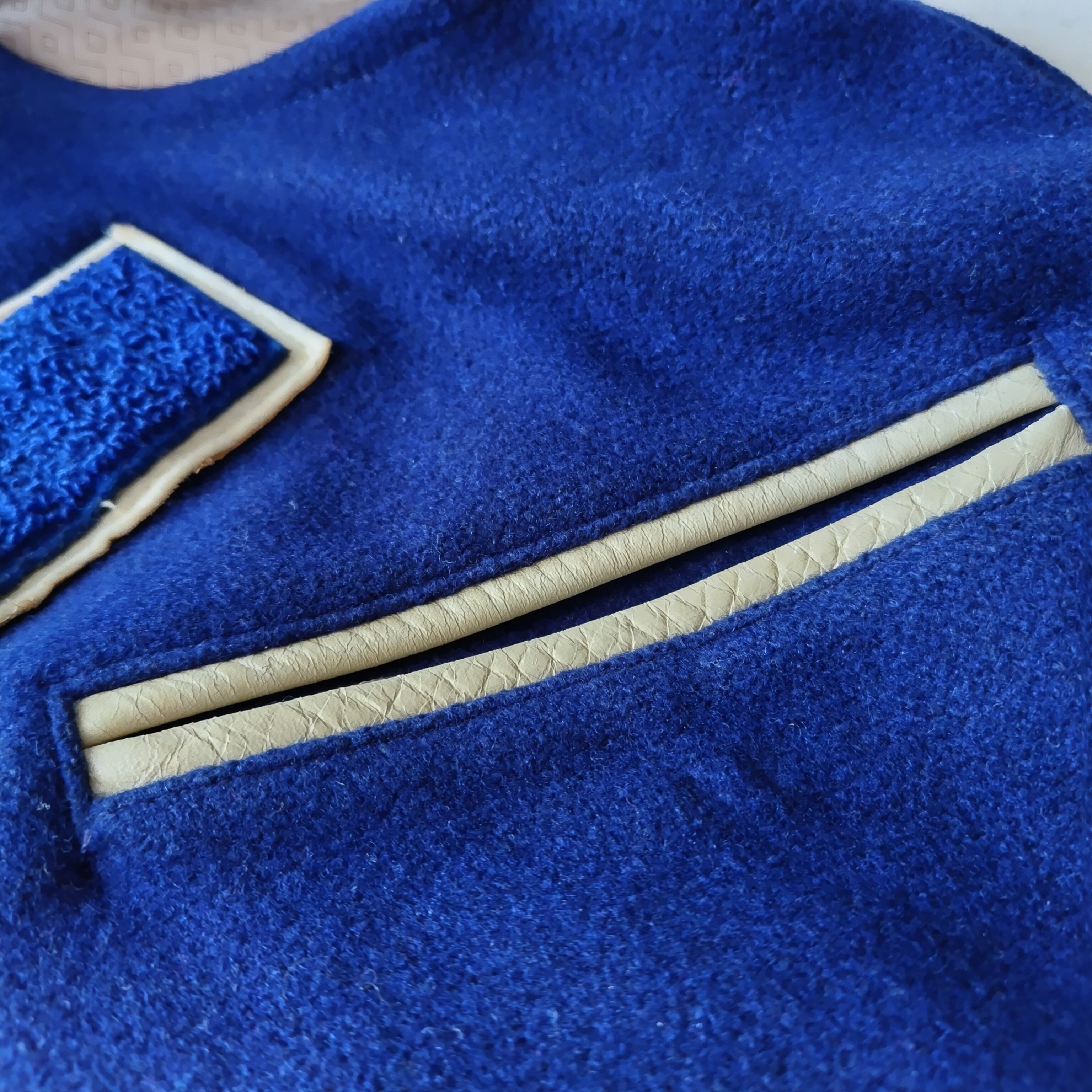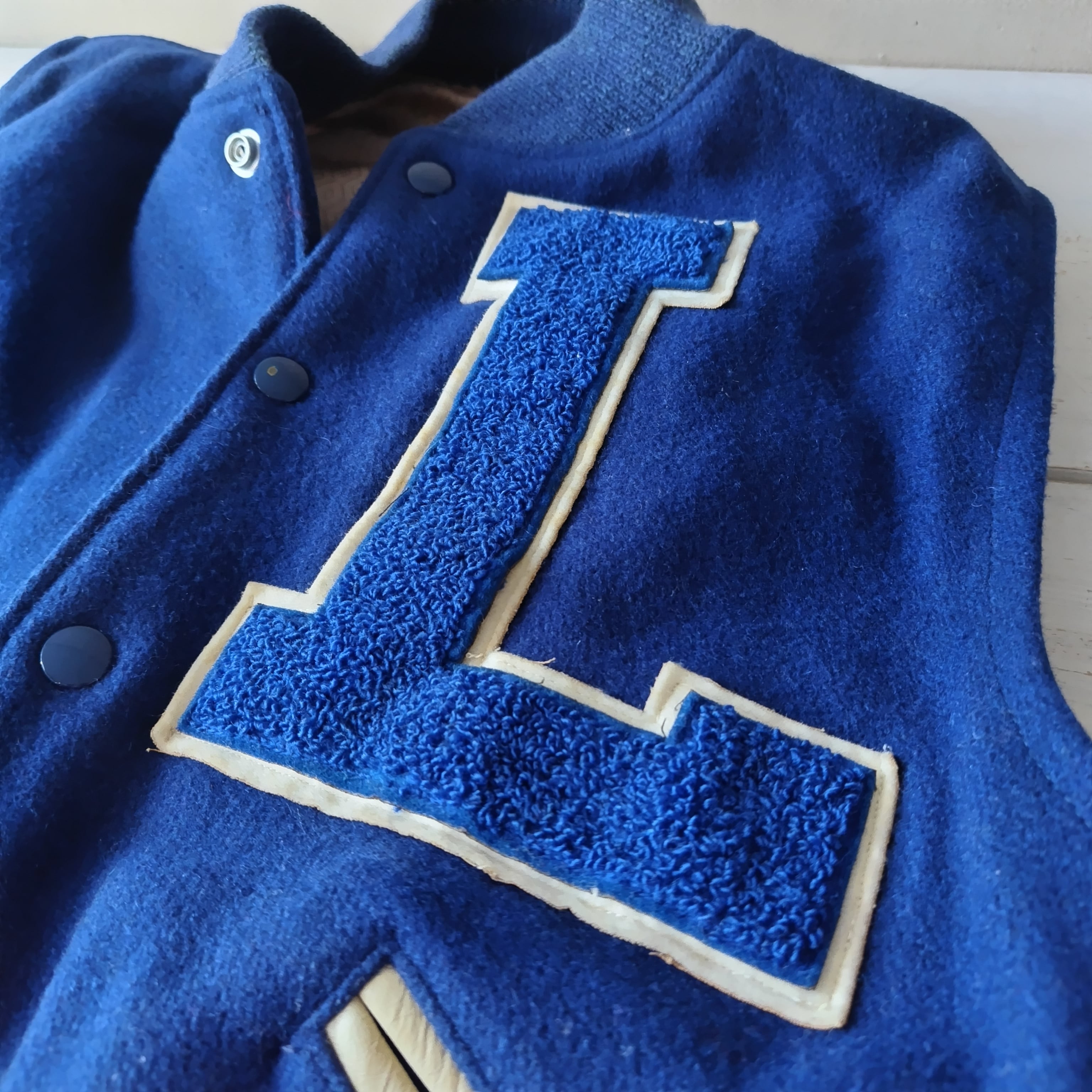 群青色になります。大ぶりなLのワッペンもいい感じです!