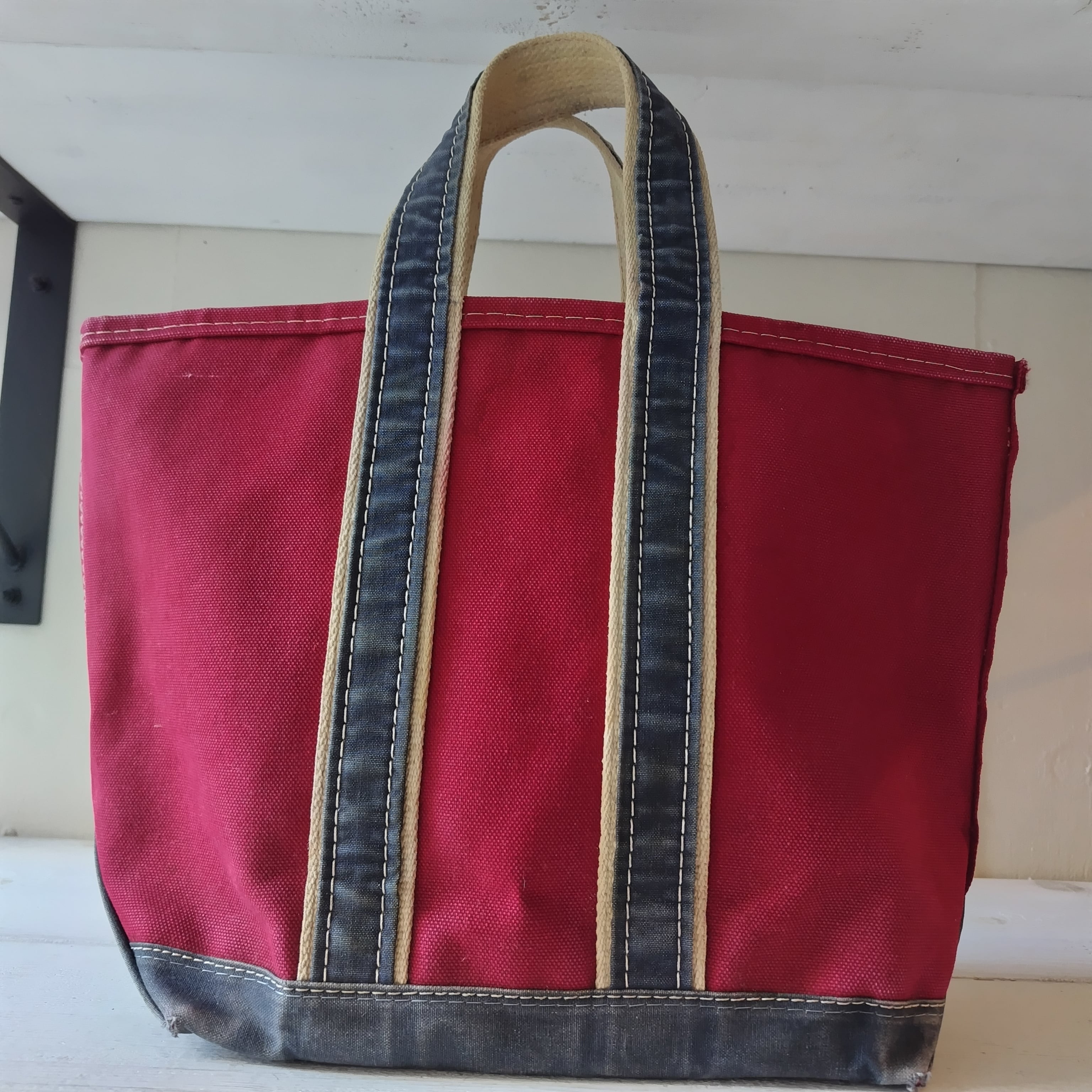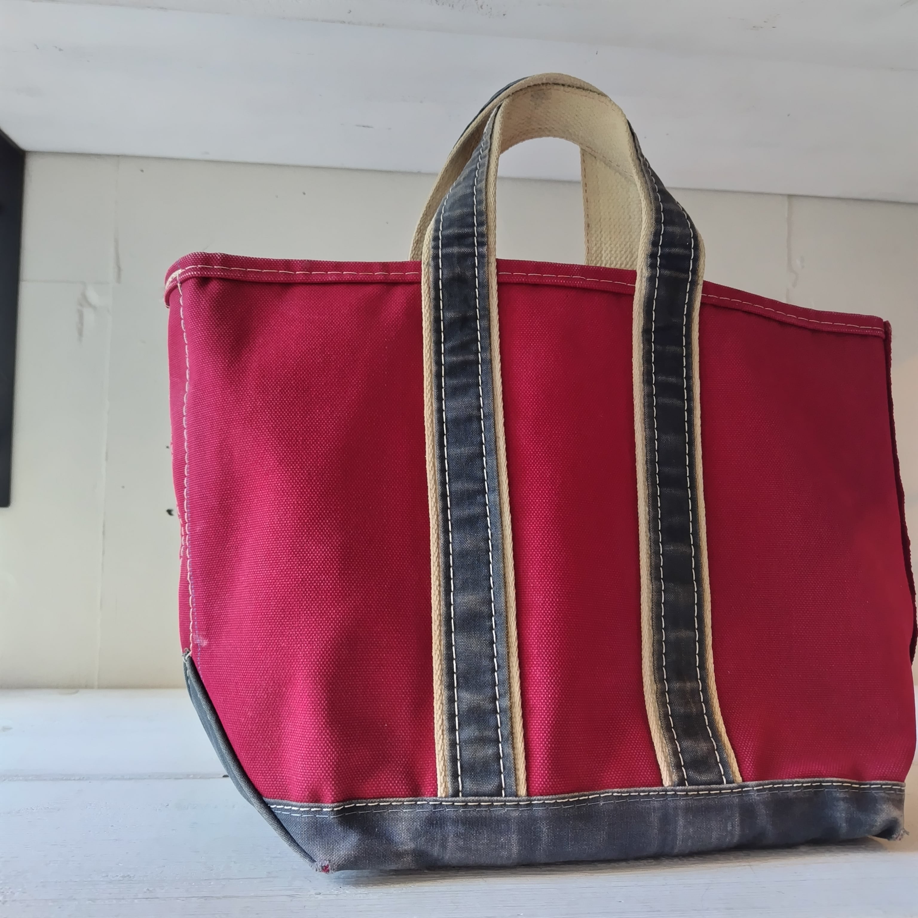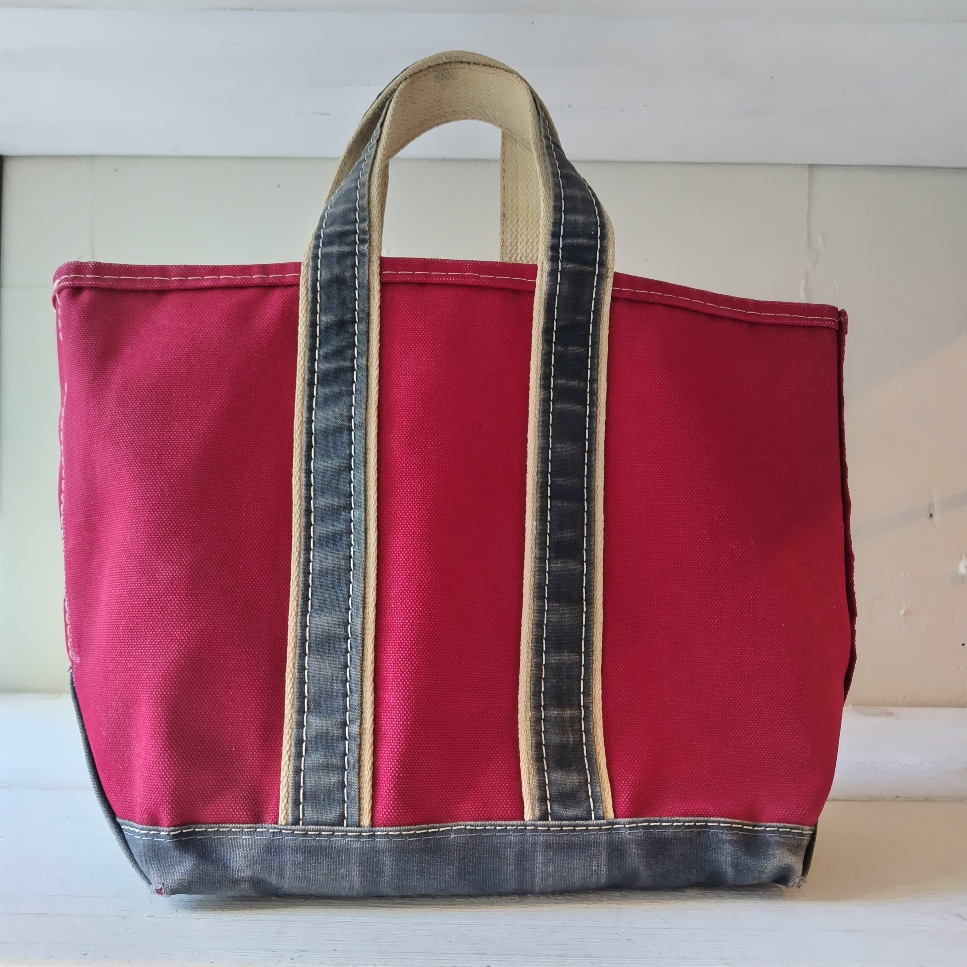 80s L.L.Bean RED x NAVY ハンドル デラックストートになります!
