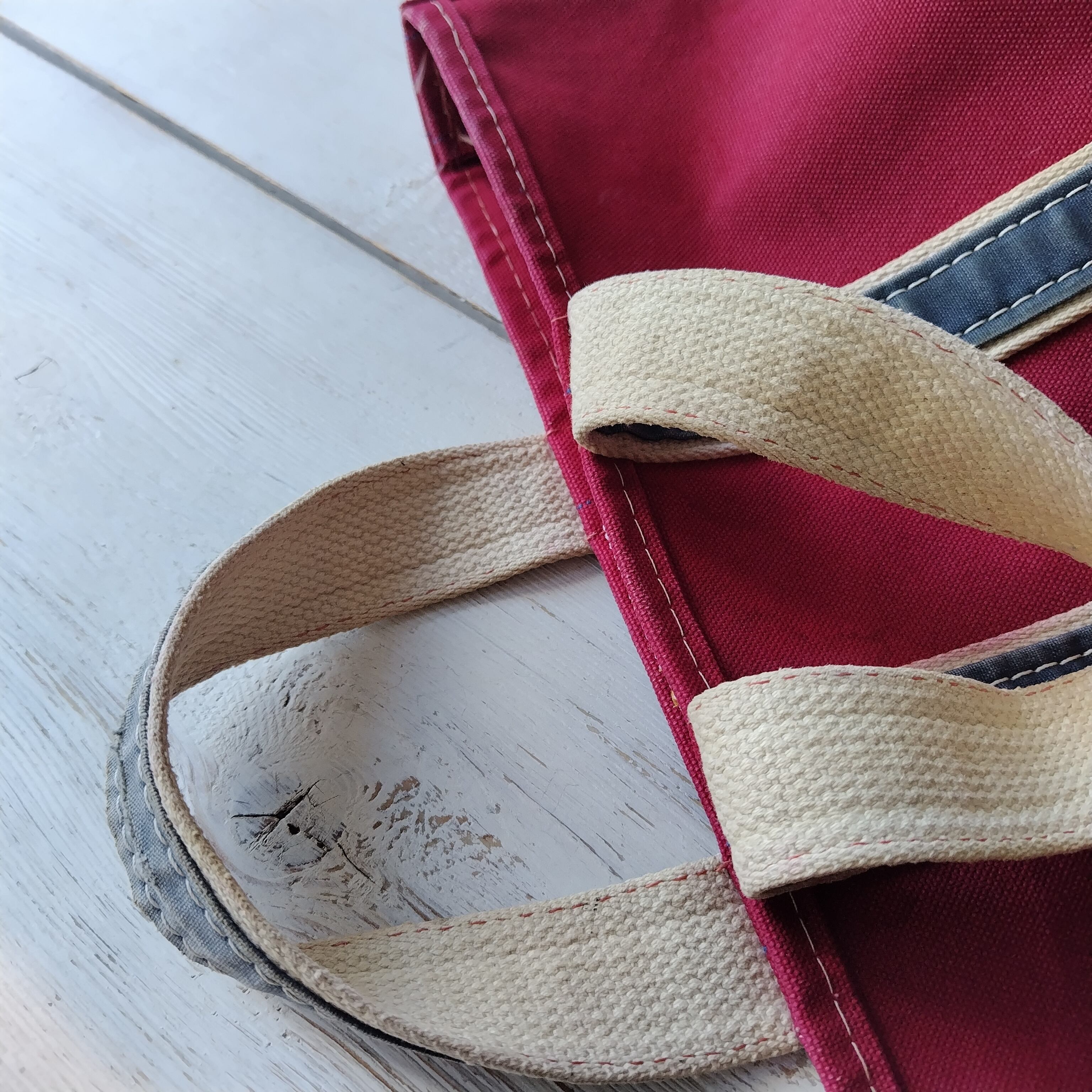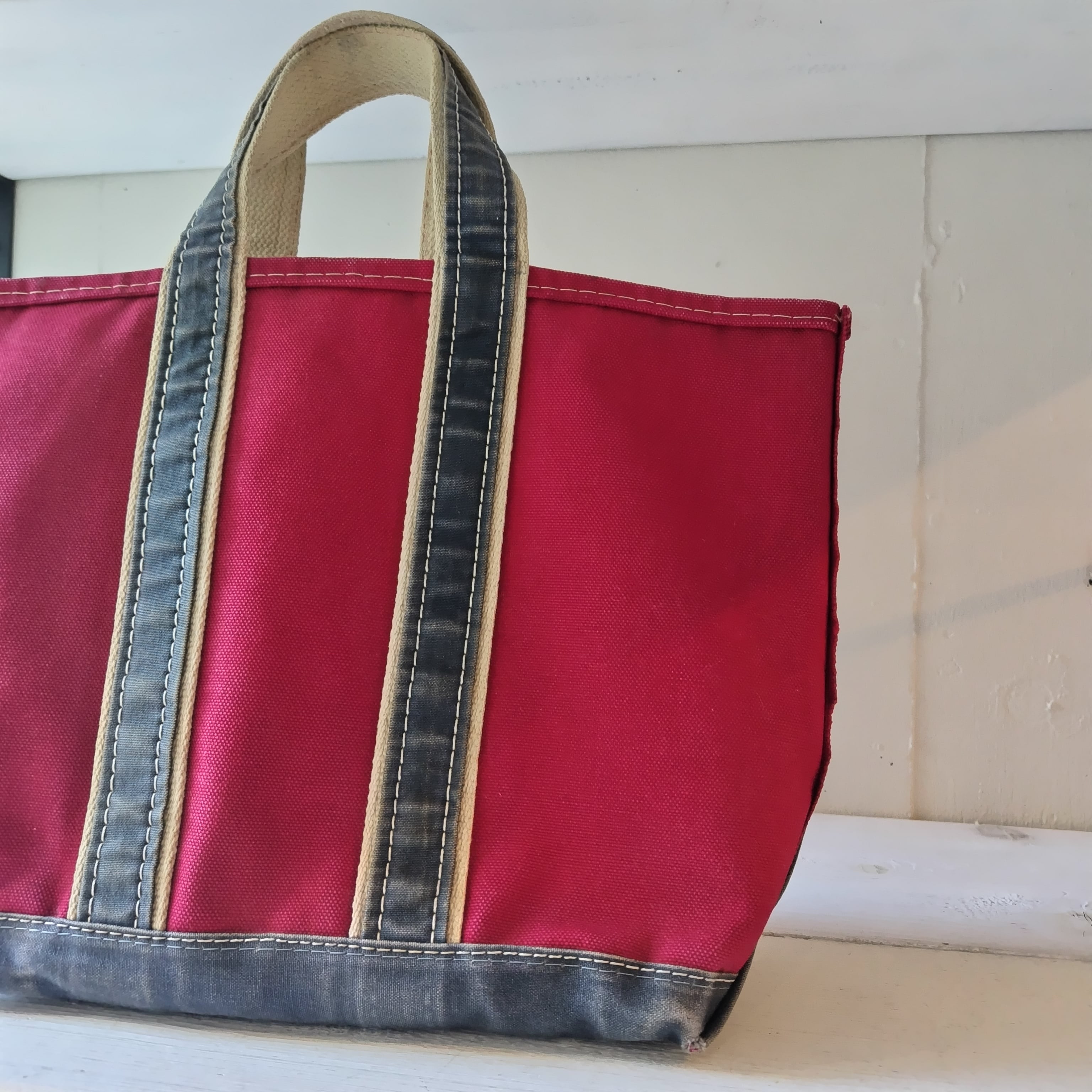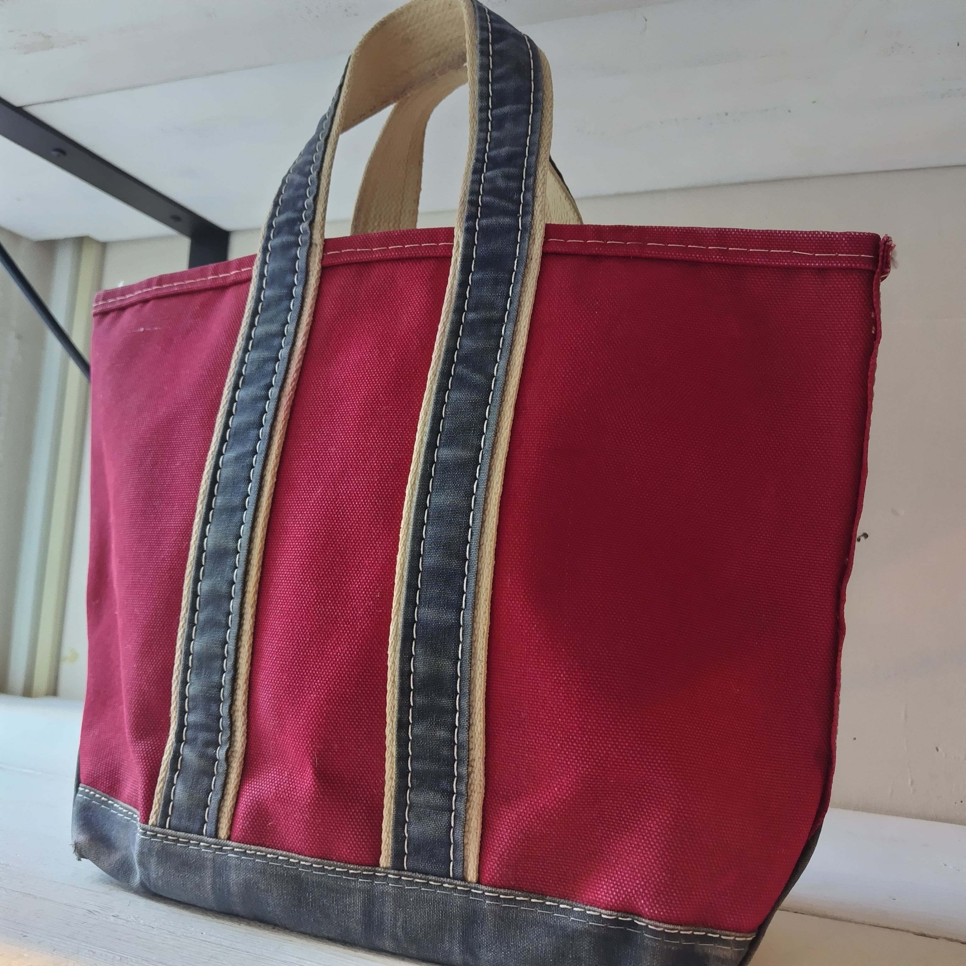 80s L.L.Bean RED x NAVY ハンドル デラックストートになります!