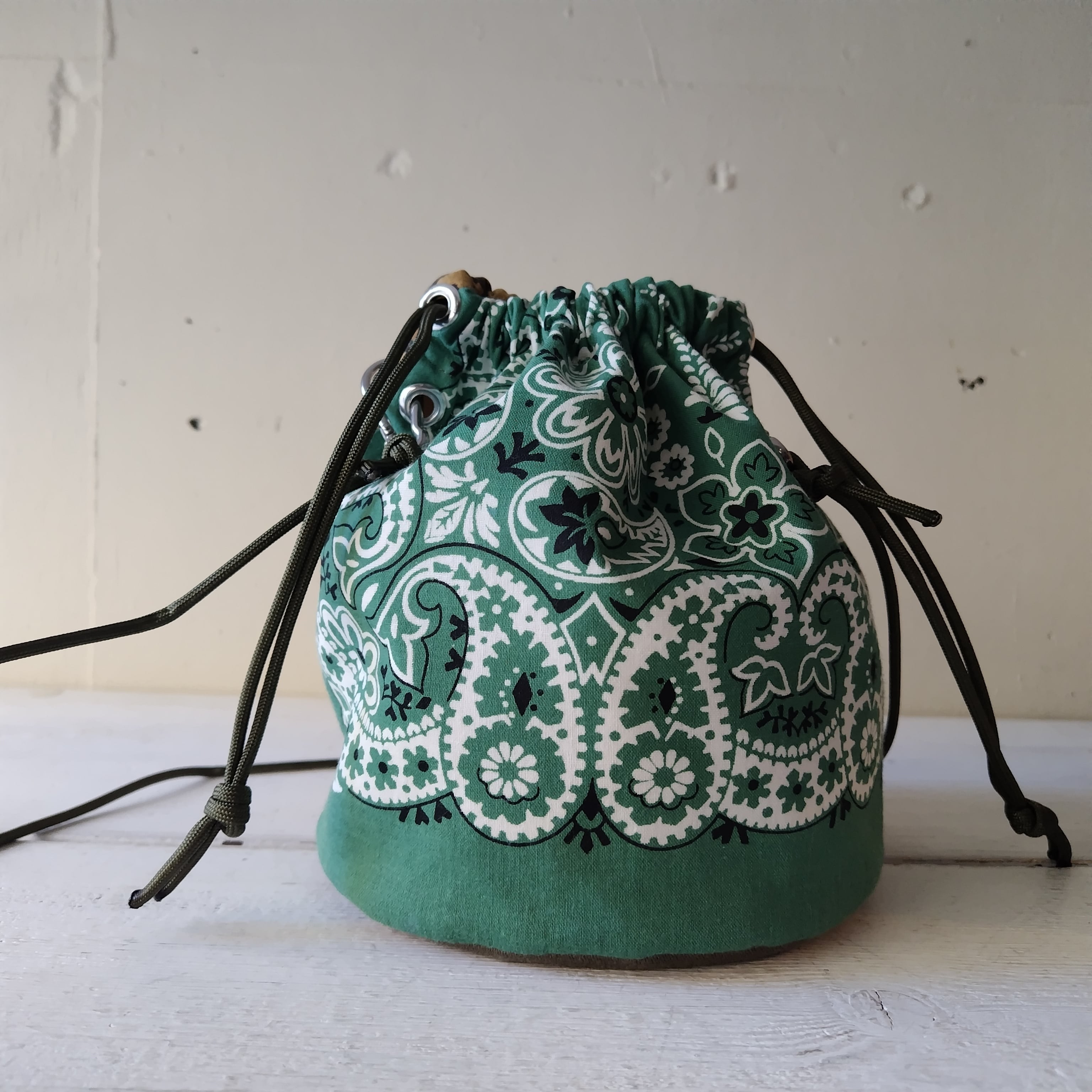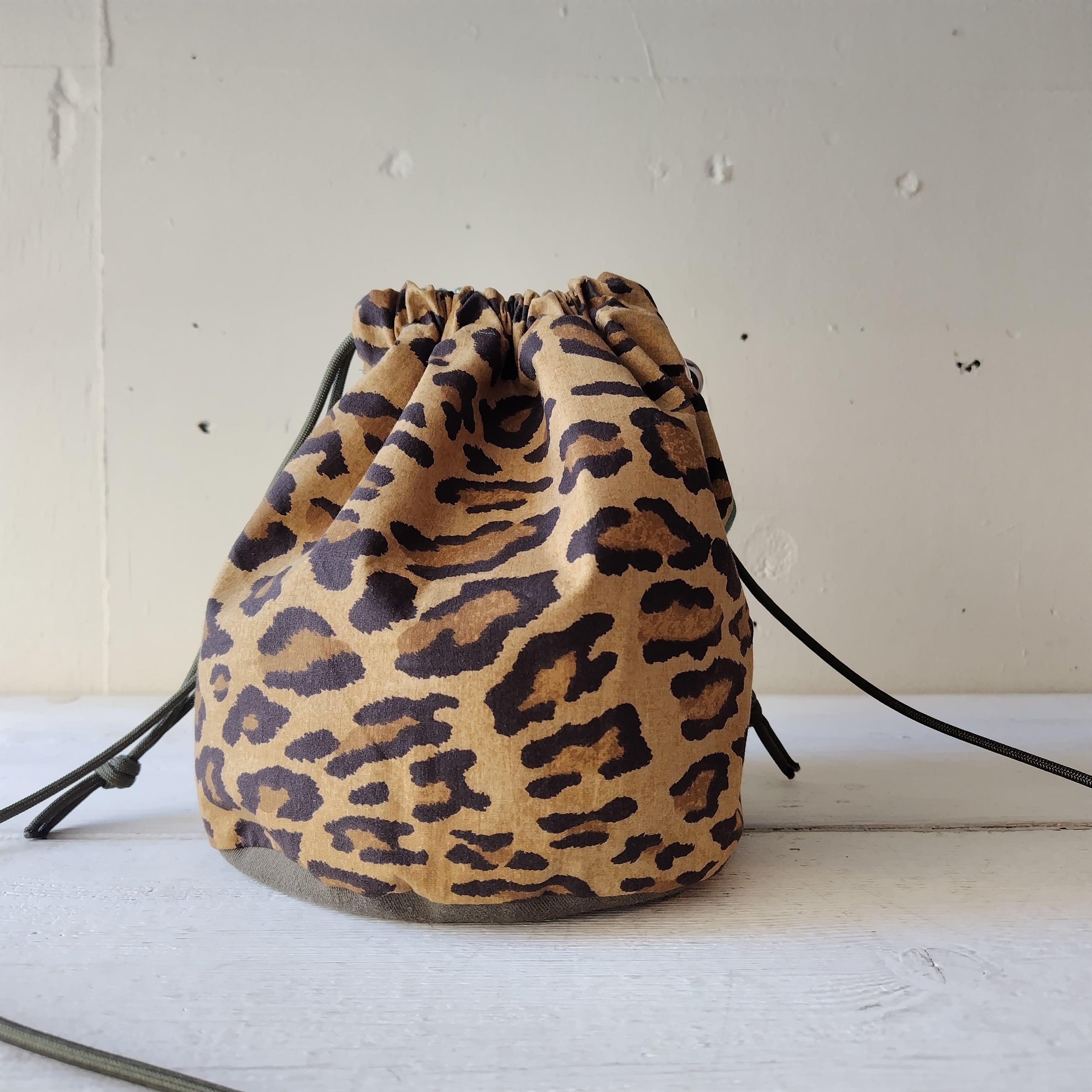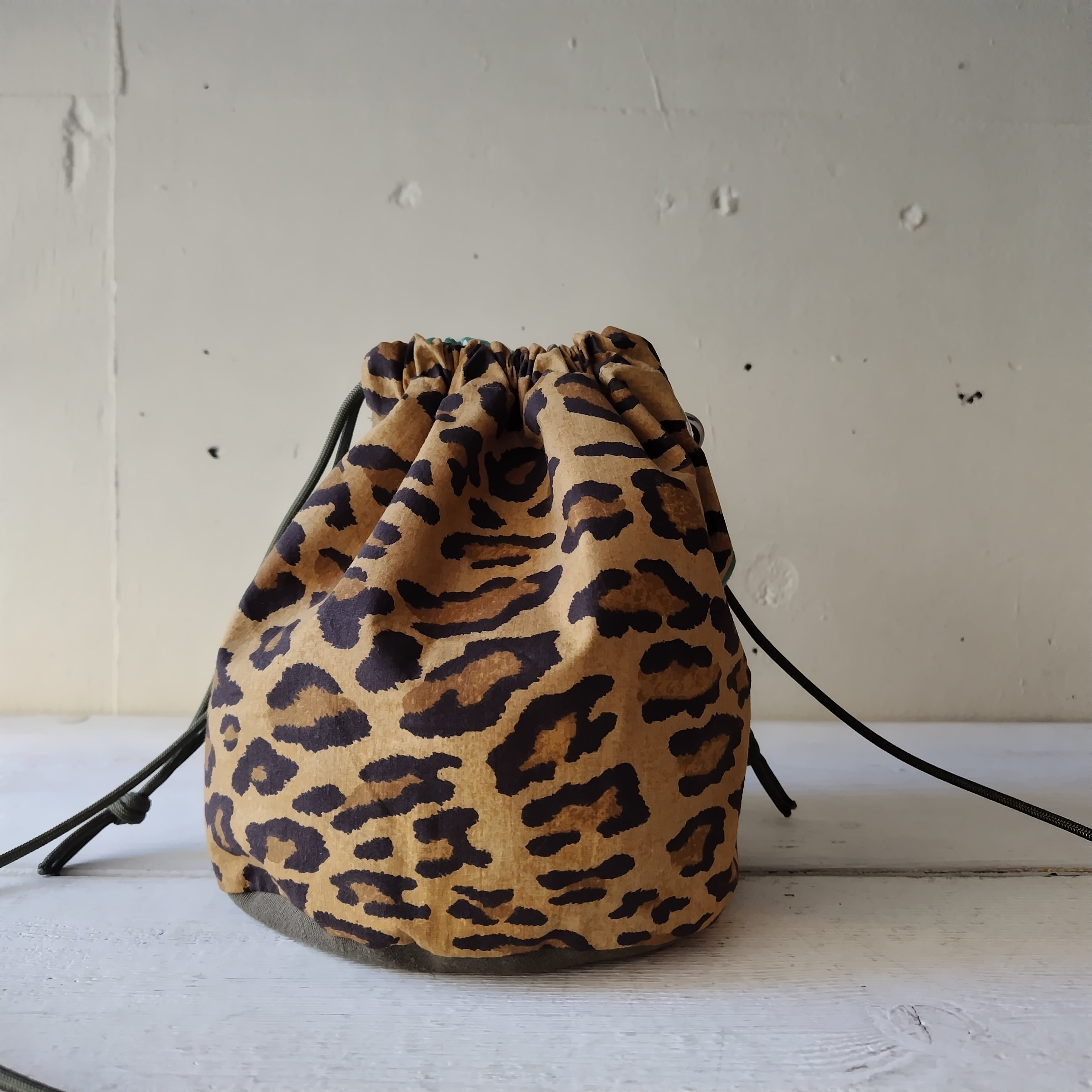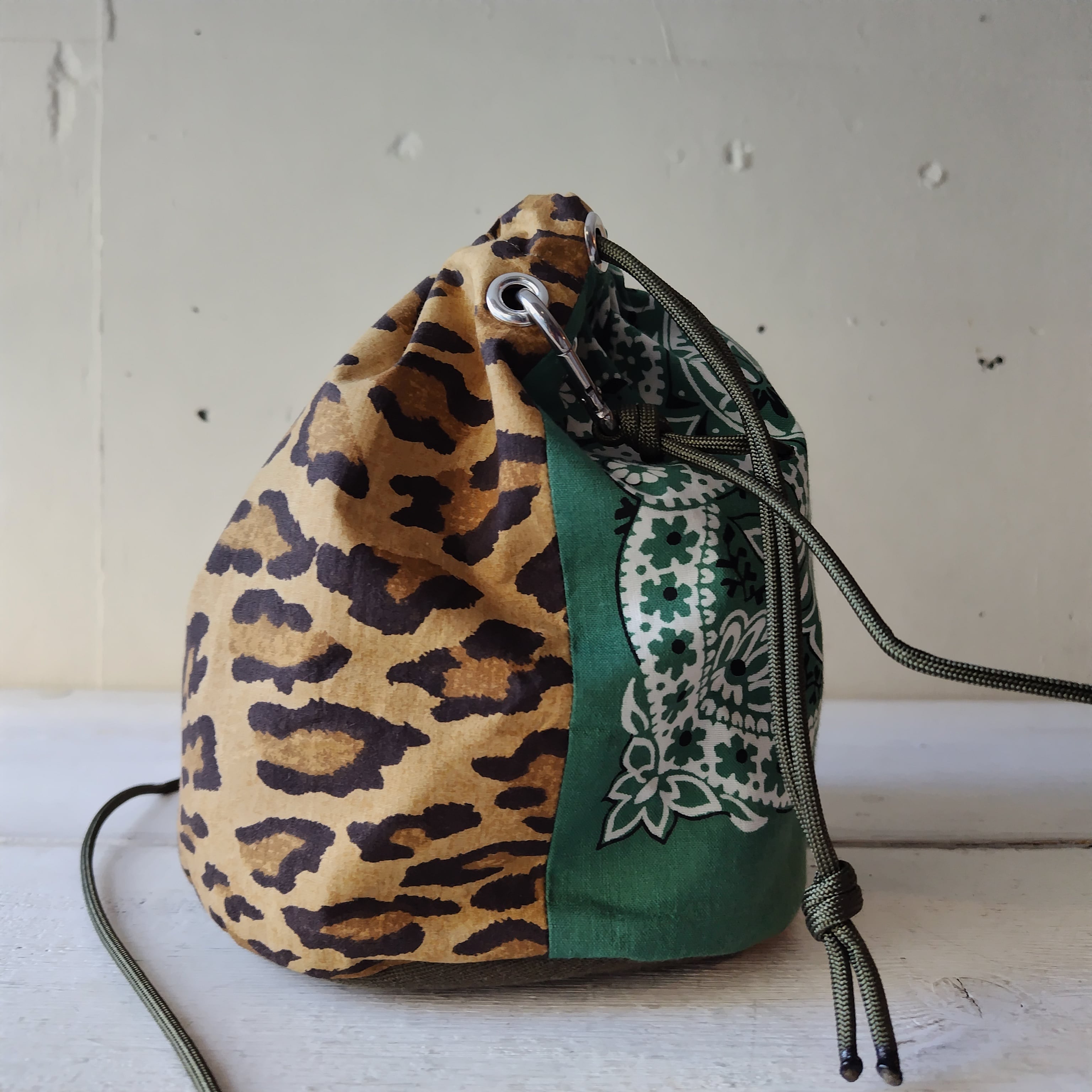 レオパード x ビンテージバンダナ リメイク巾着 2wayショルダーバッグ