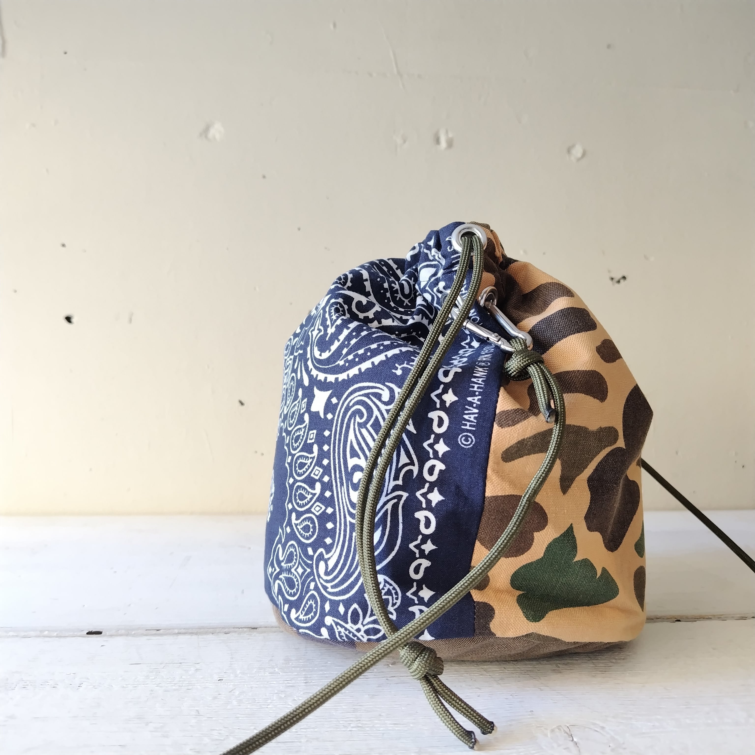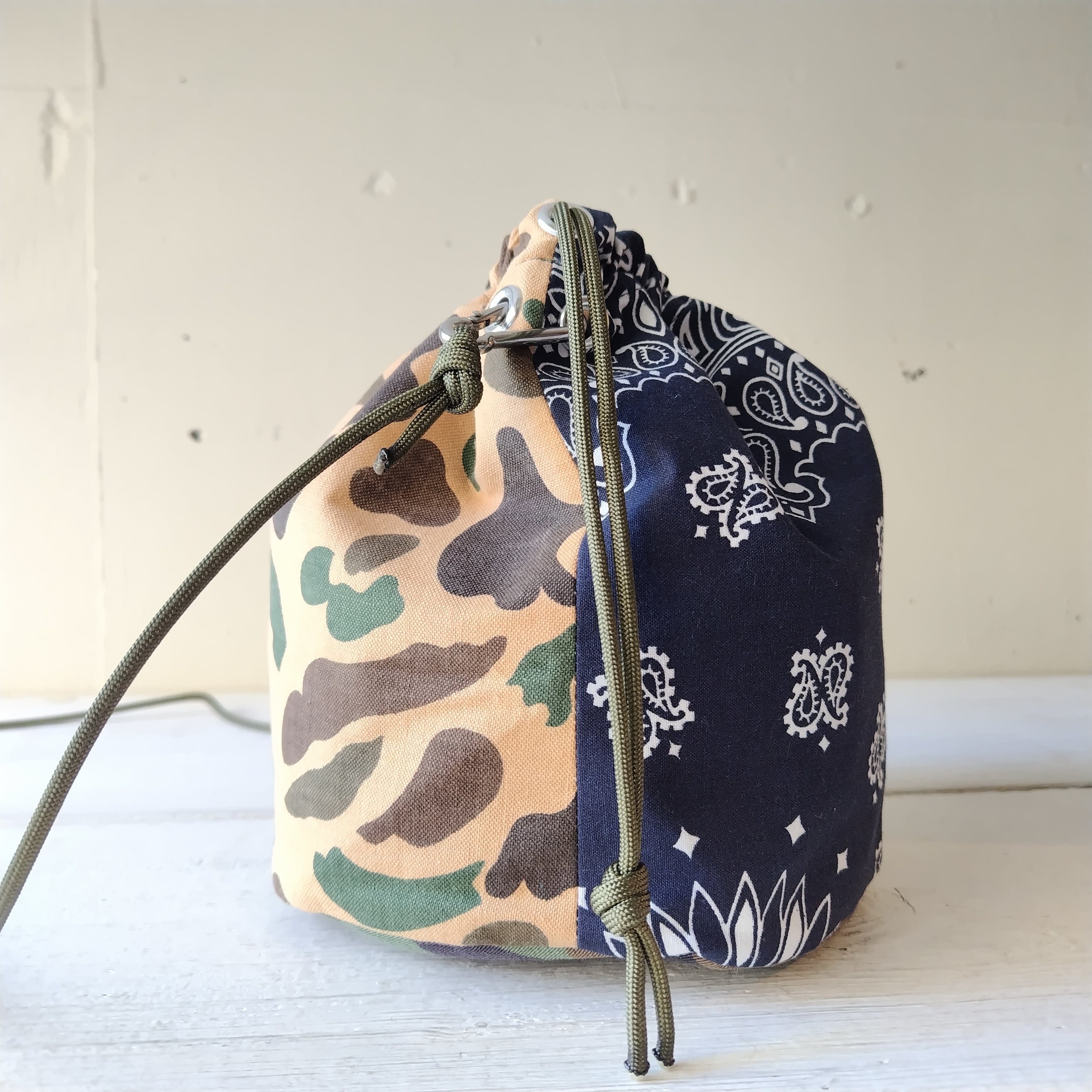 カモフラージュ x バンダナ リメイク巾着 2wayショルダーバッグ