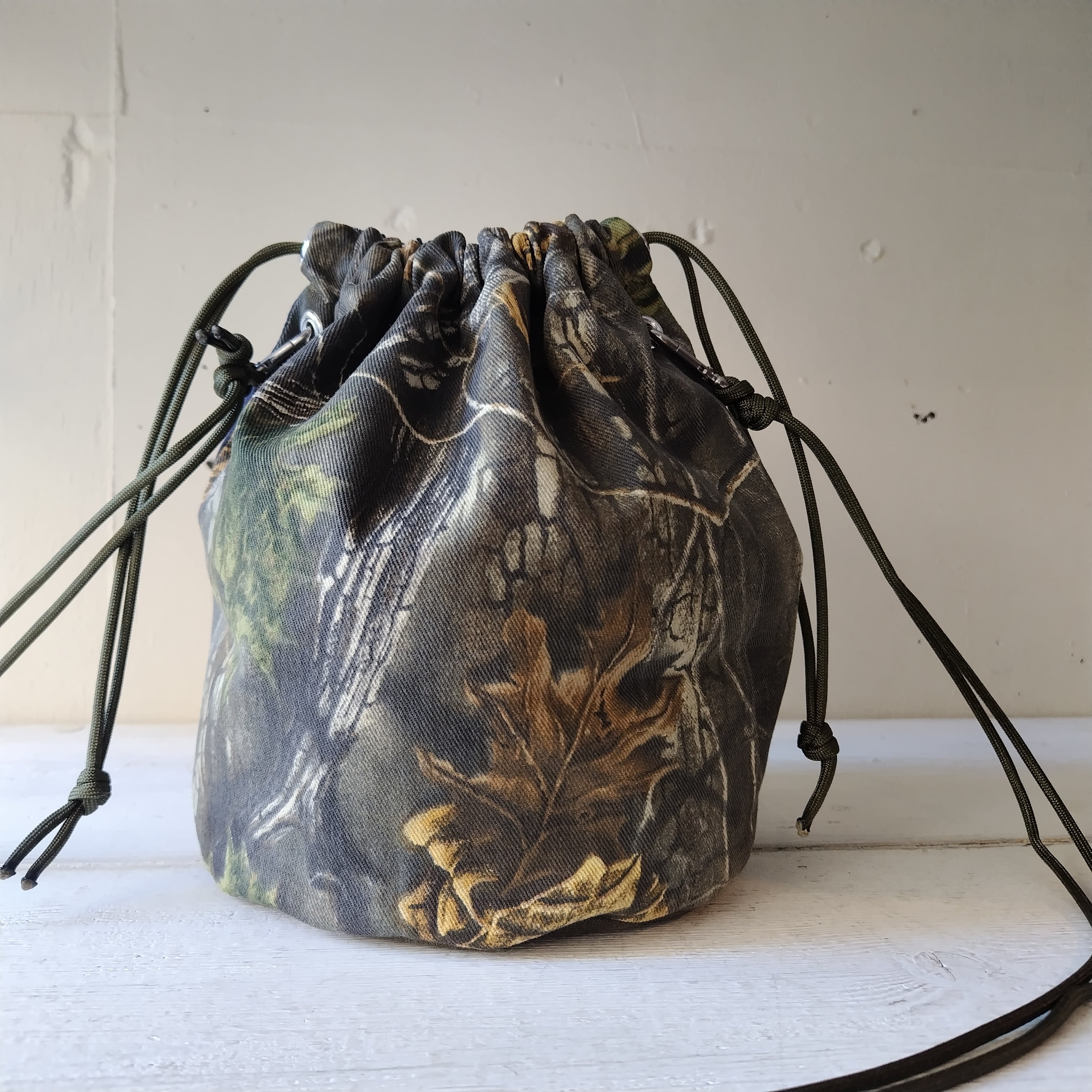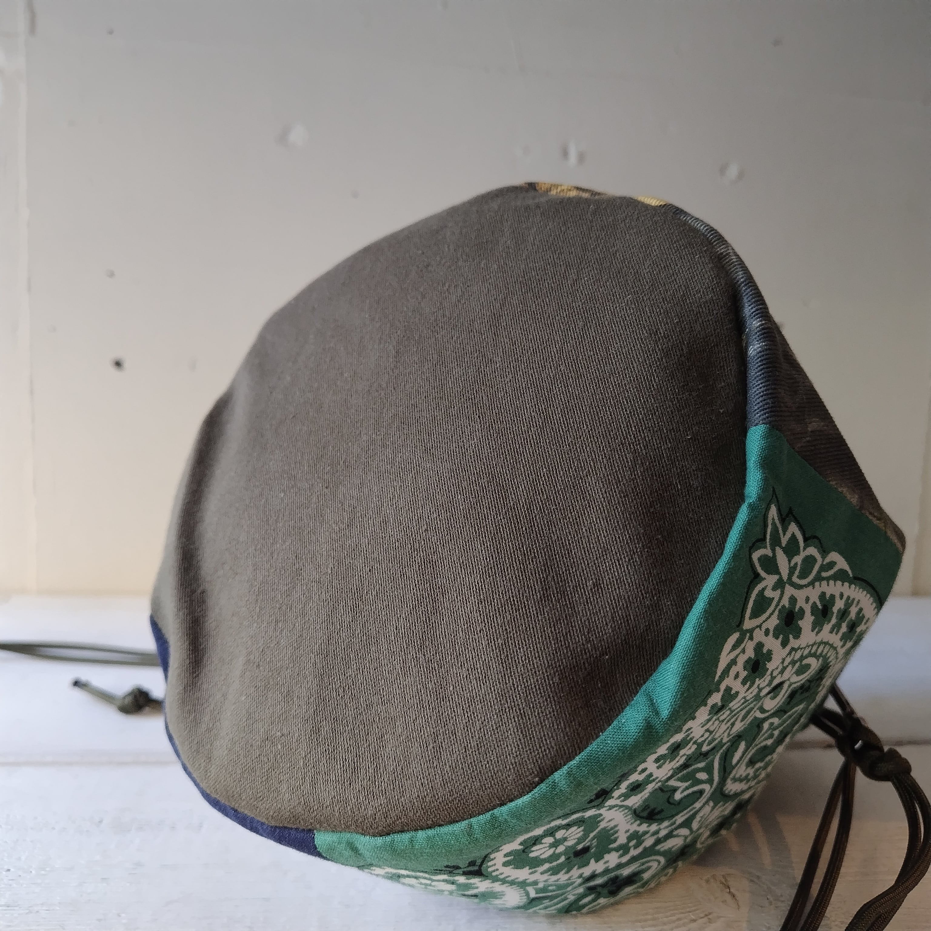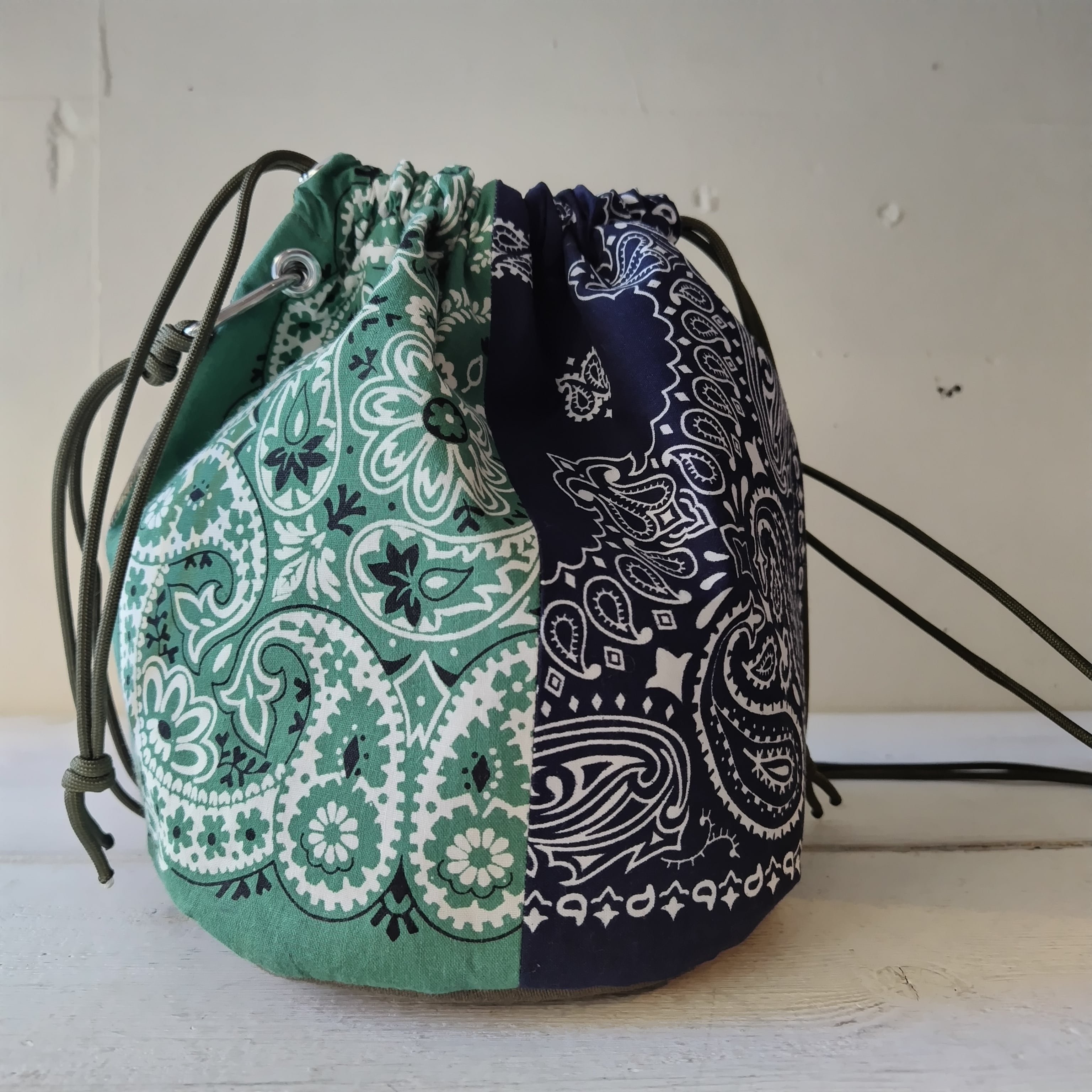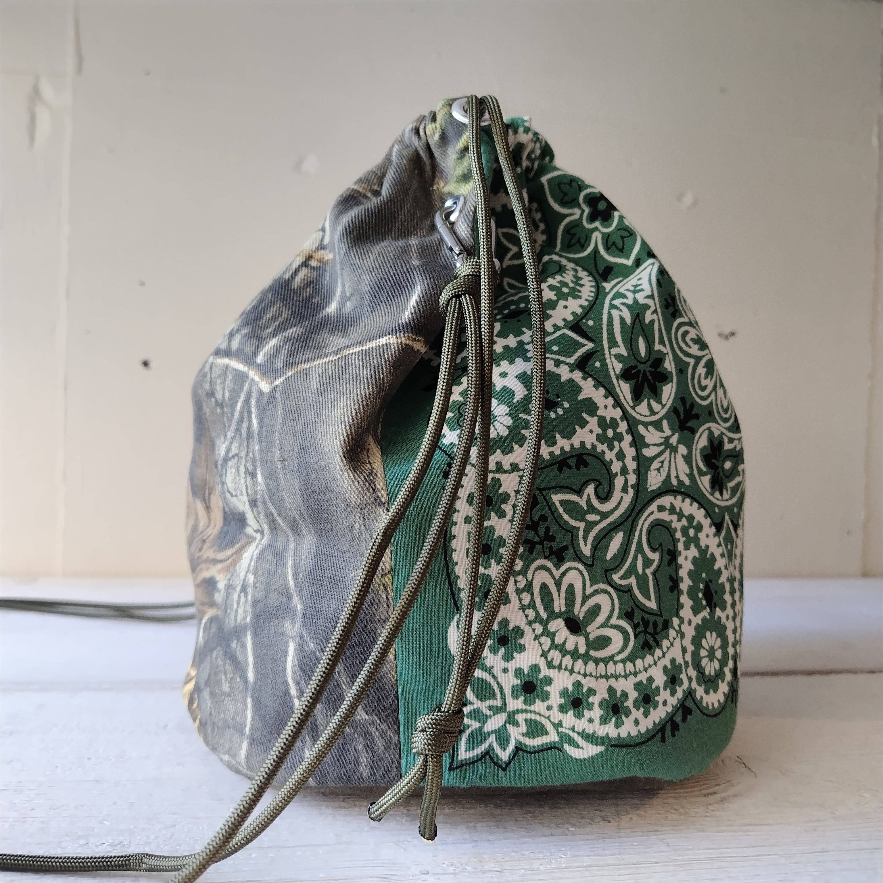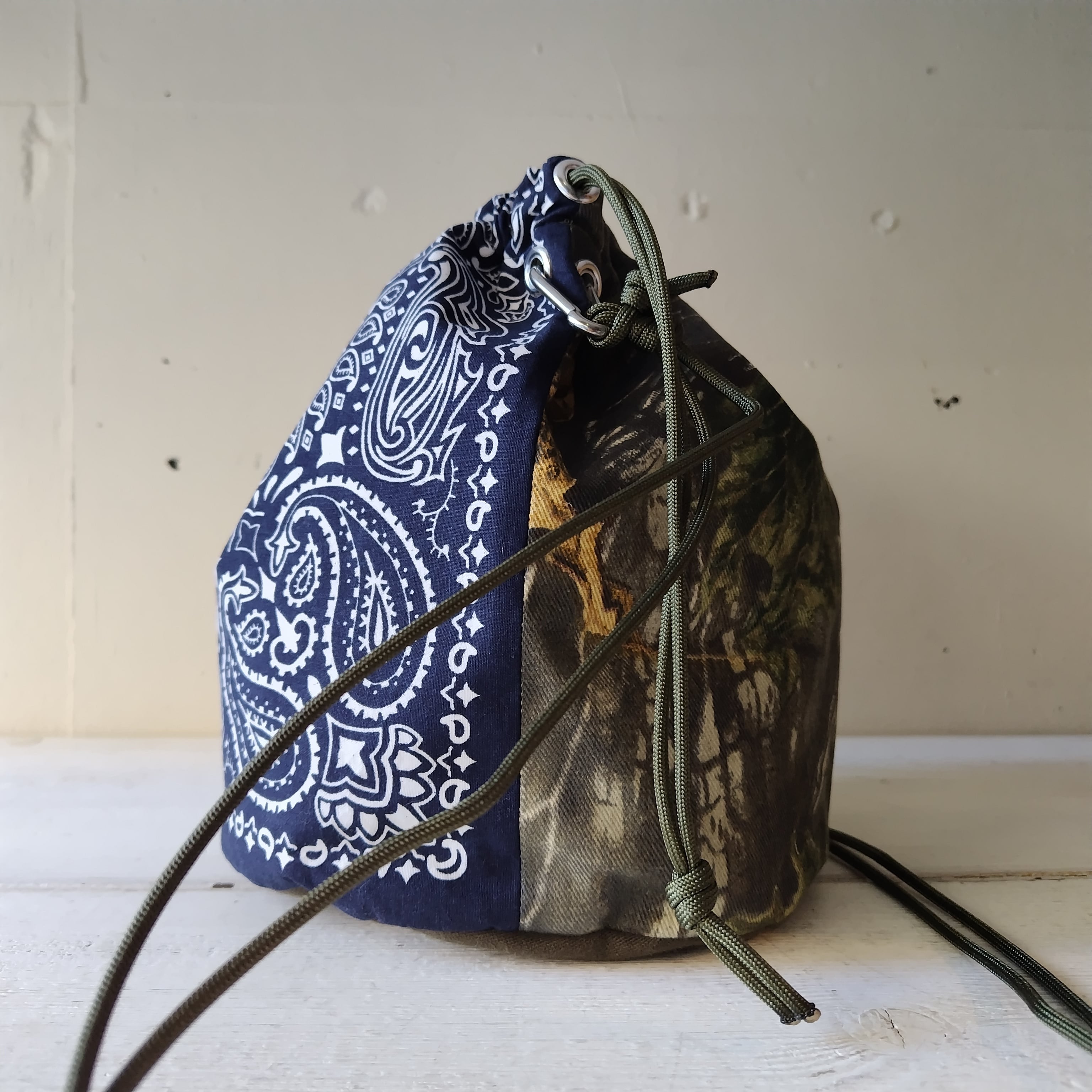 ラージサイズ カモフラージュ x バンダナ パッチワーク リメイク巾着 2wayショルダーバッグ