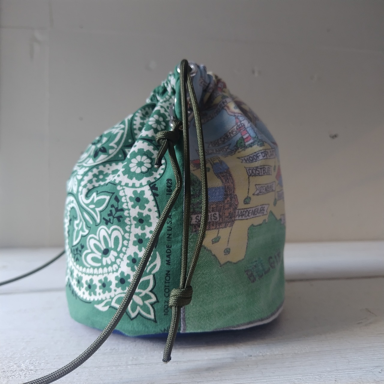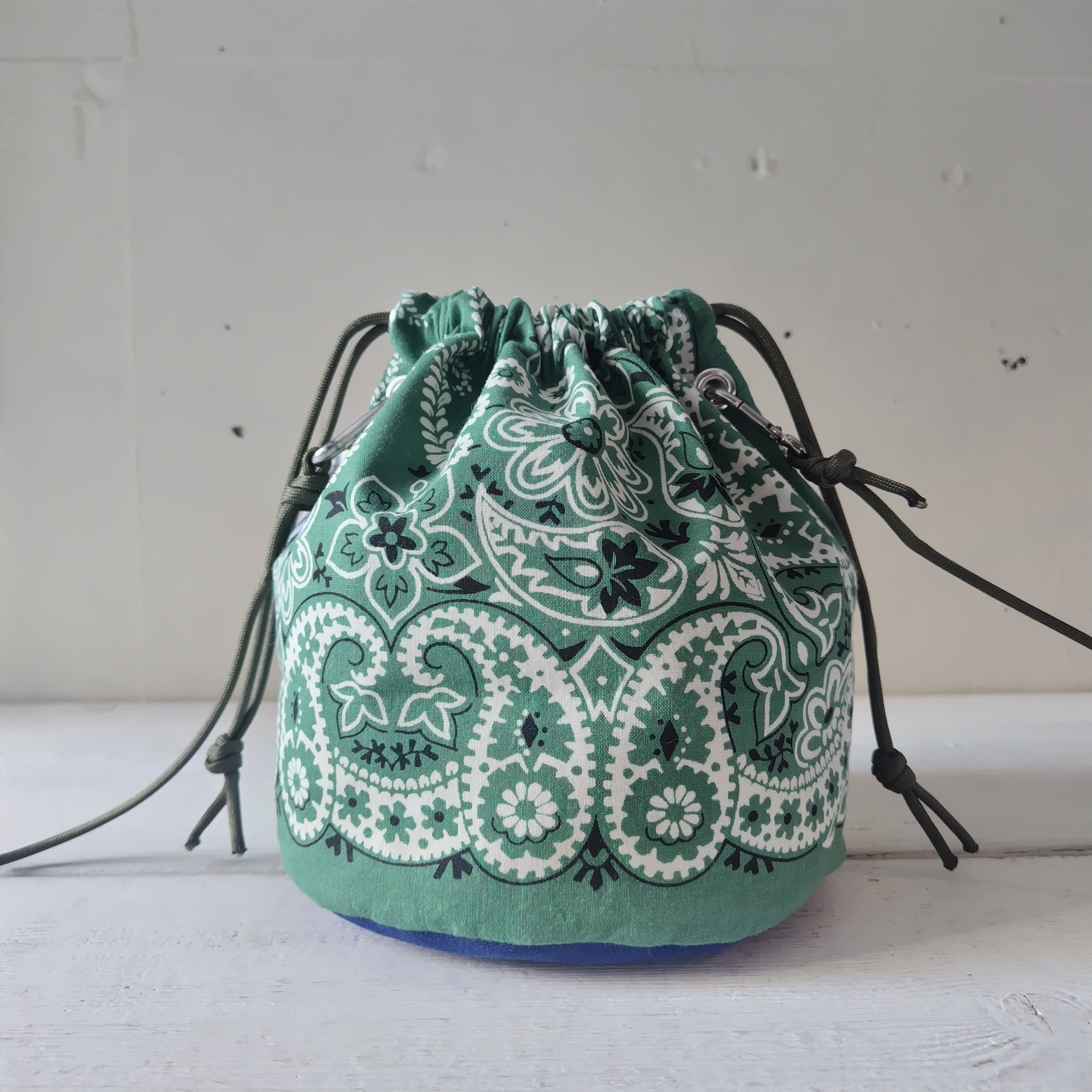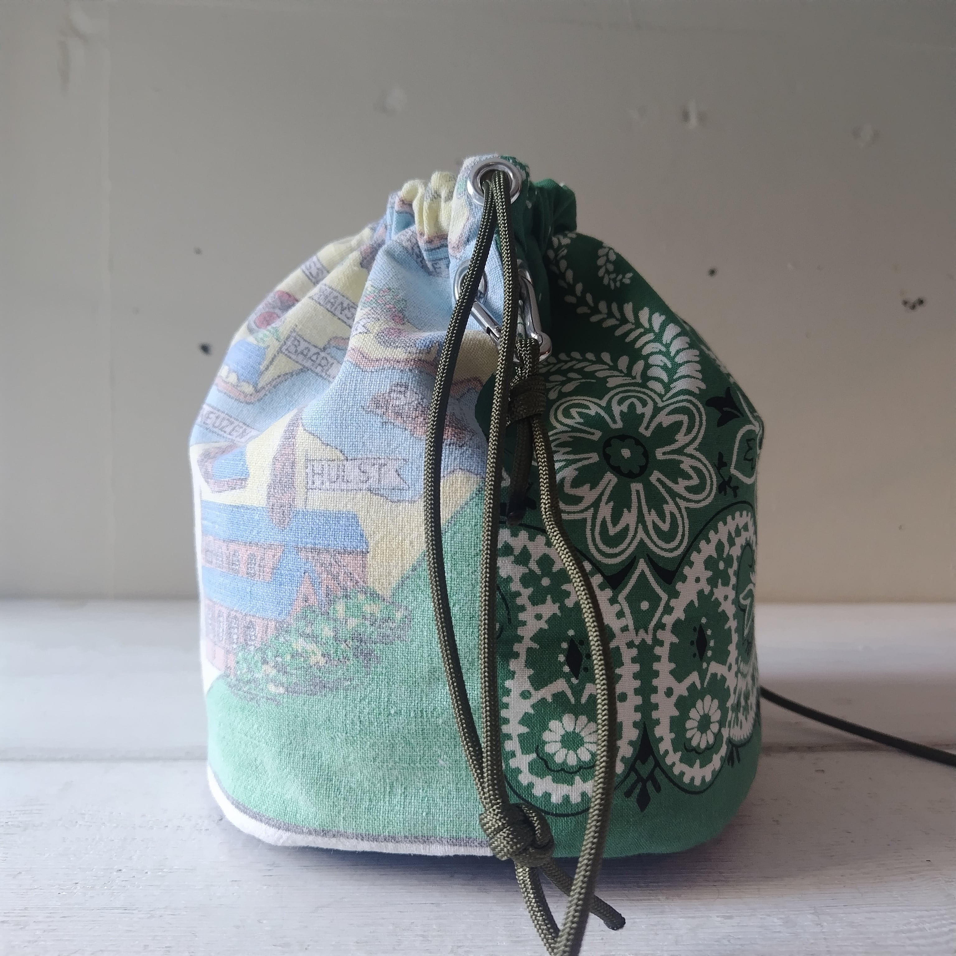 ビンテージ バンダナ x ファブリック リメイク巾着 2wayショルダーバッグ