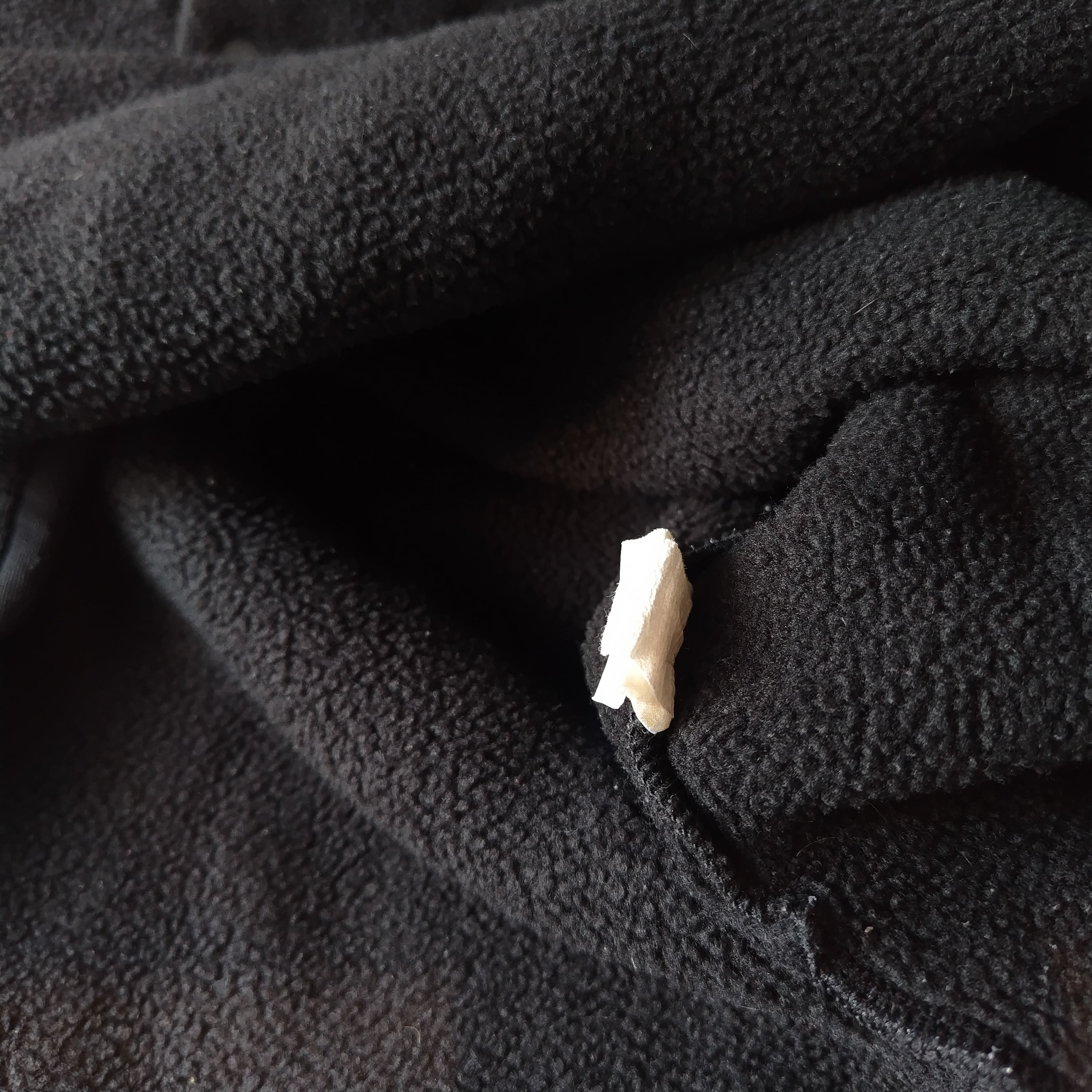 ブランドロゴの背景に描かれているフィッツロイ山群の頂に、通常あるはずの白い雪山(白いライン)が描かれていないデザインのタグです。