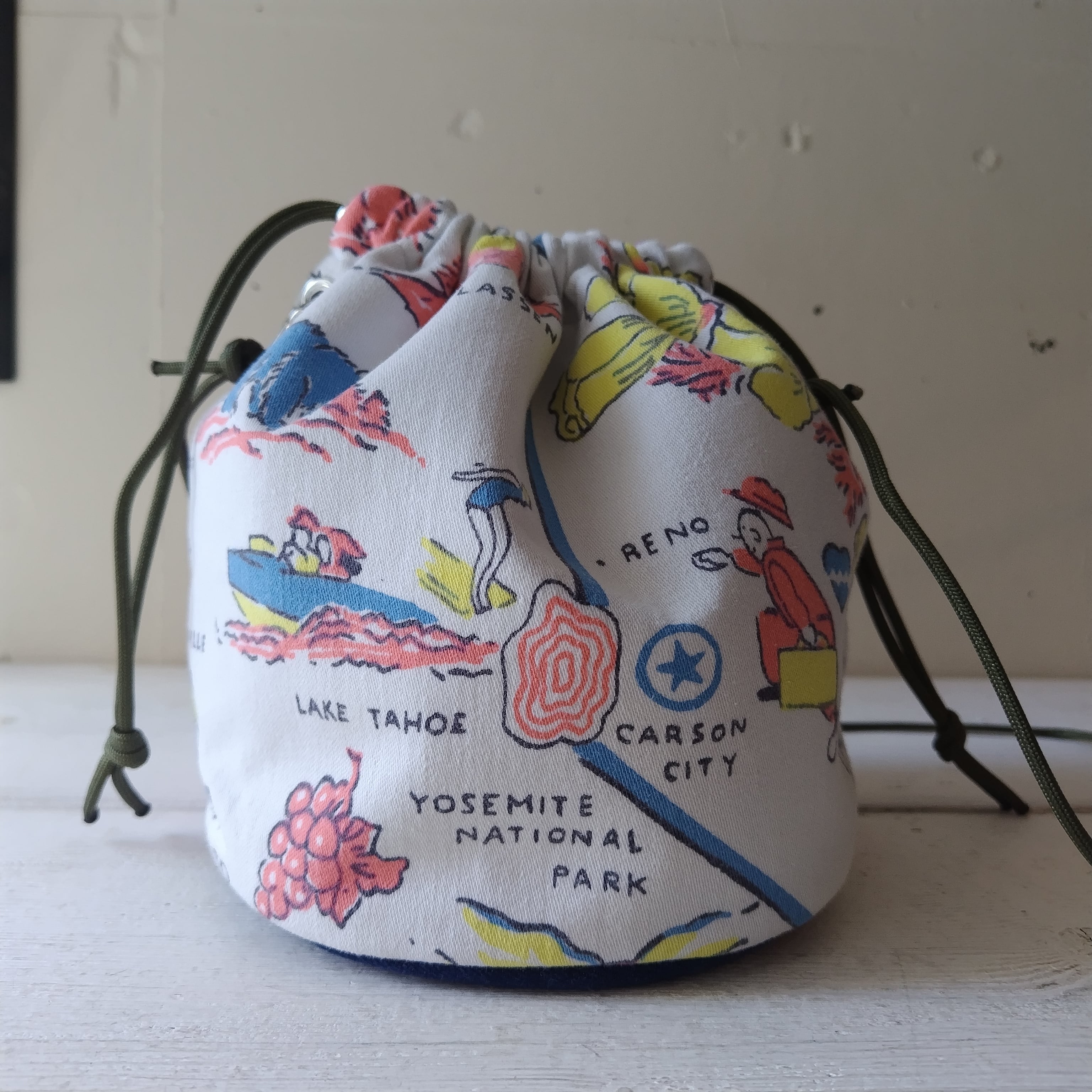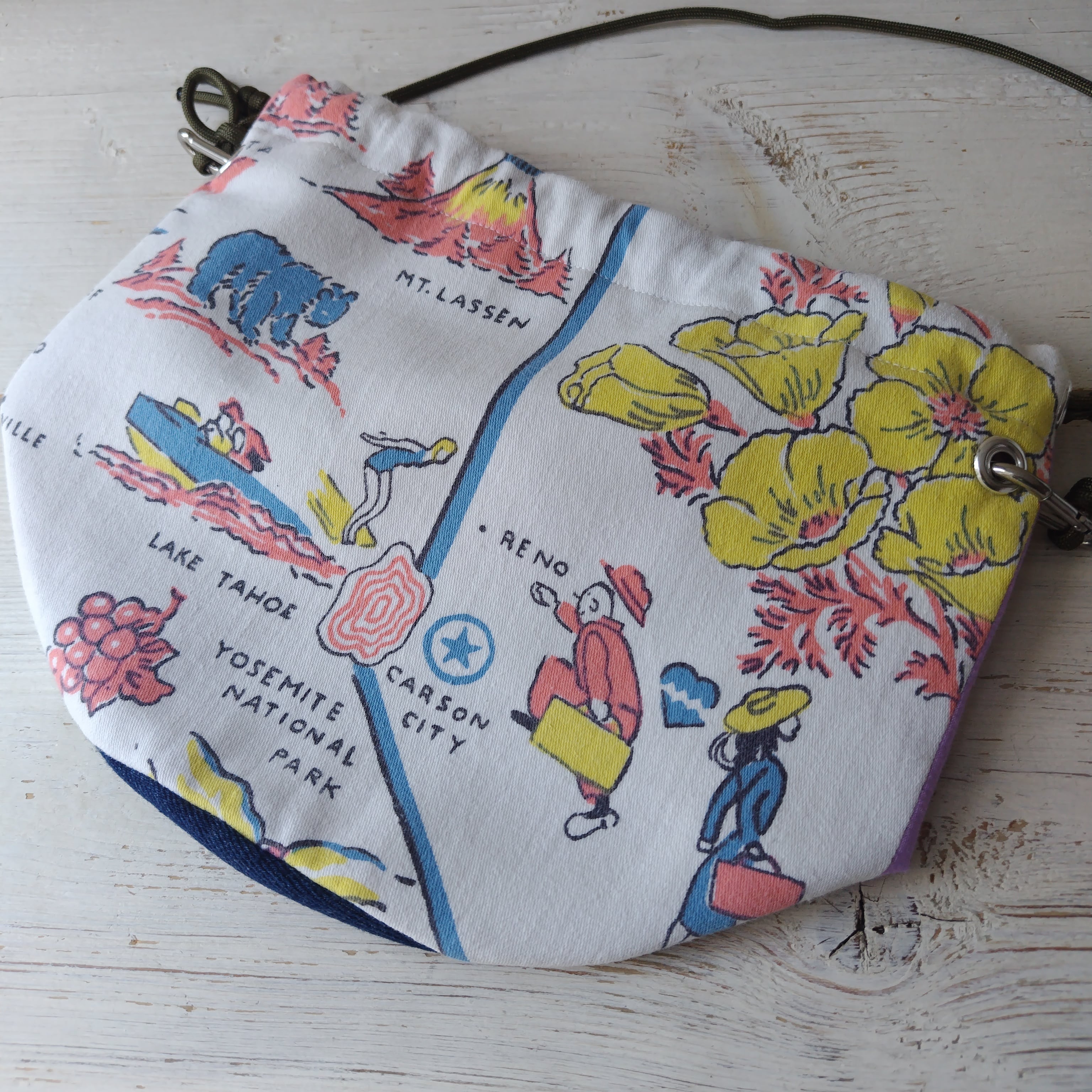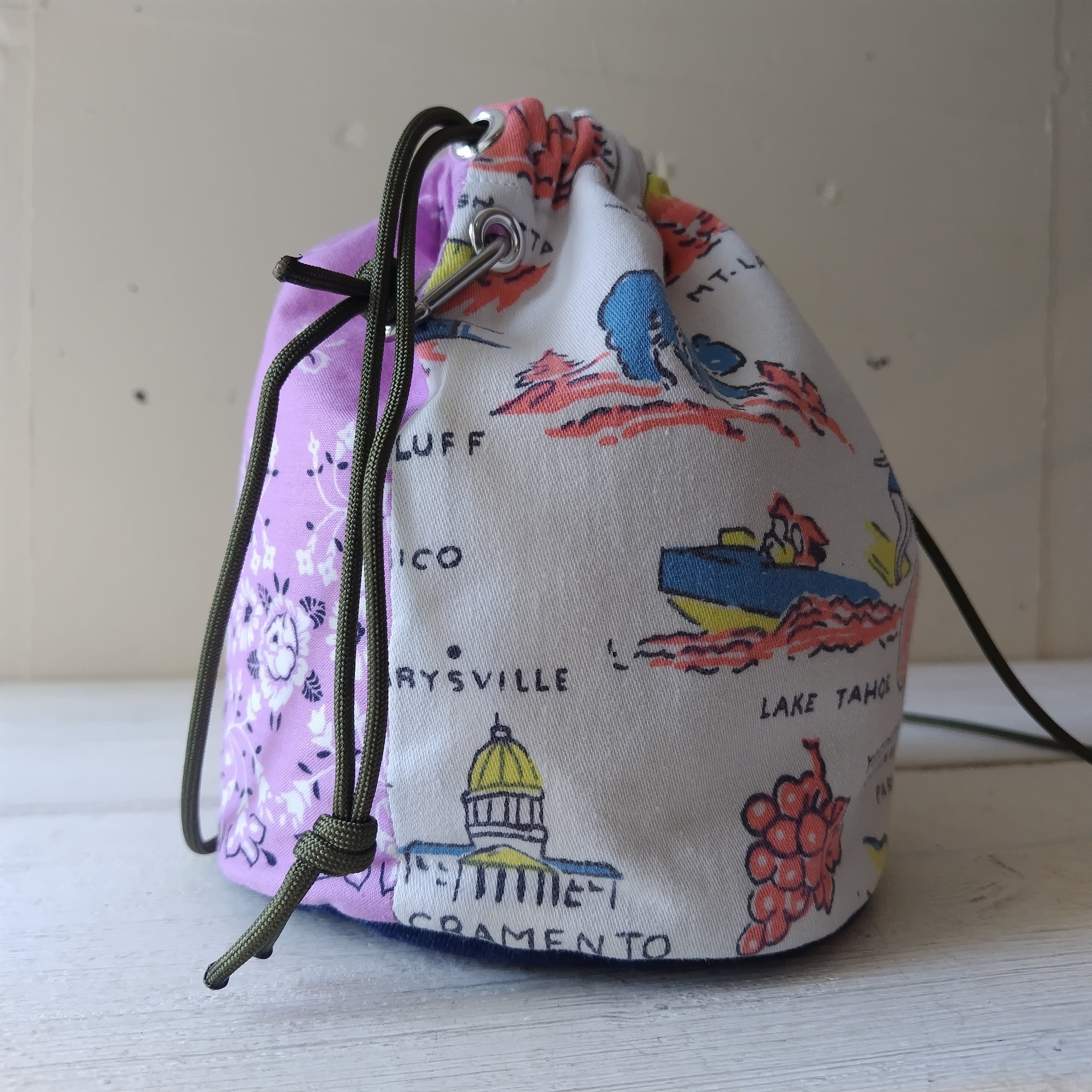 バンダナ x ビンテージファブリック リメイク巾着 2wayショルダーバッグ