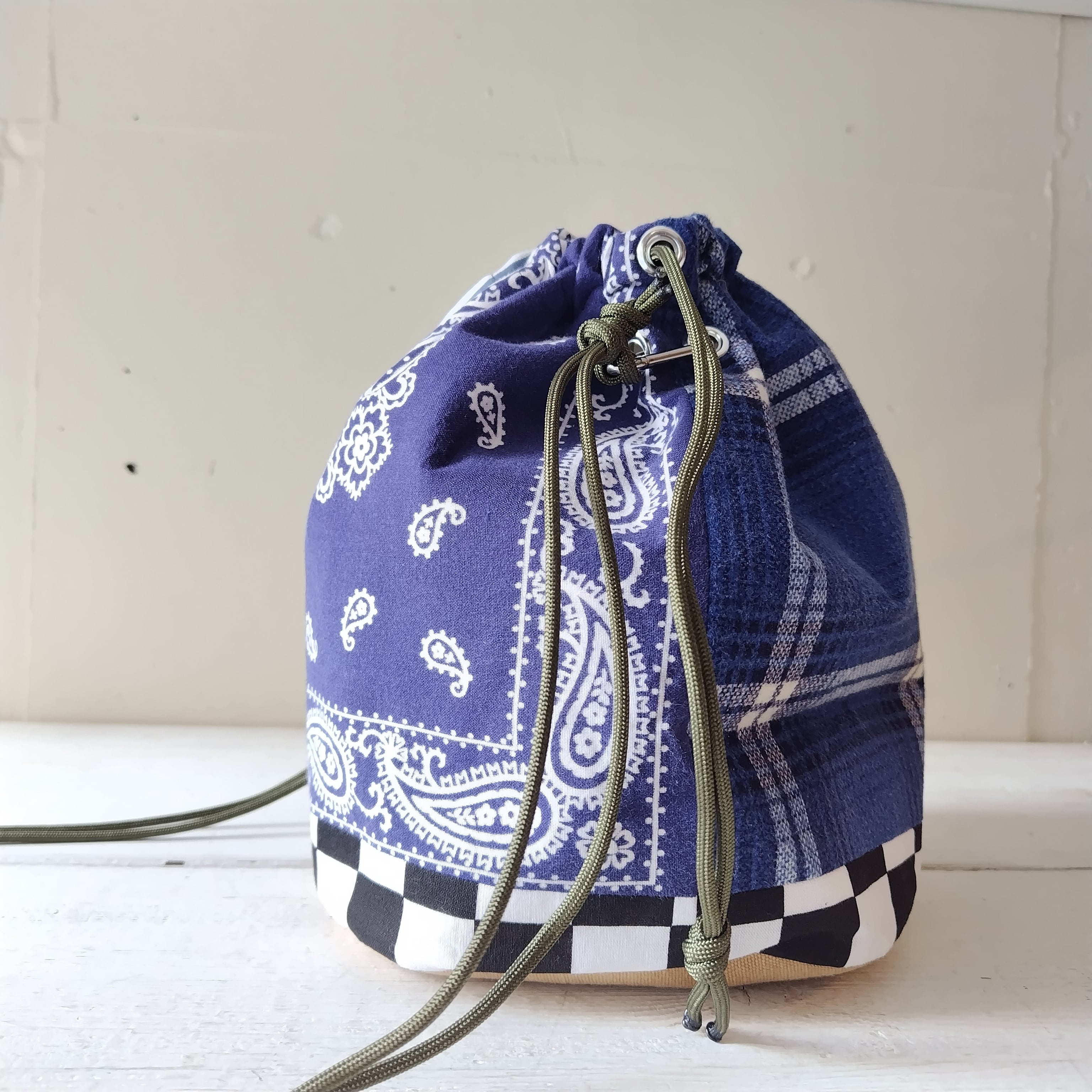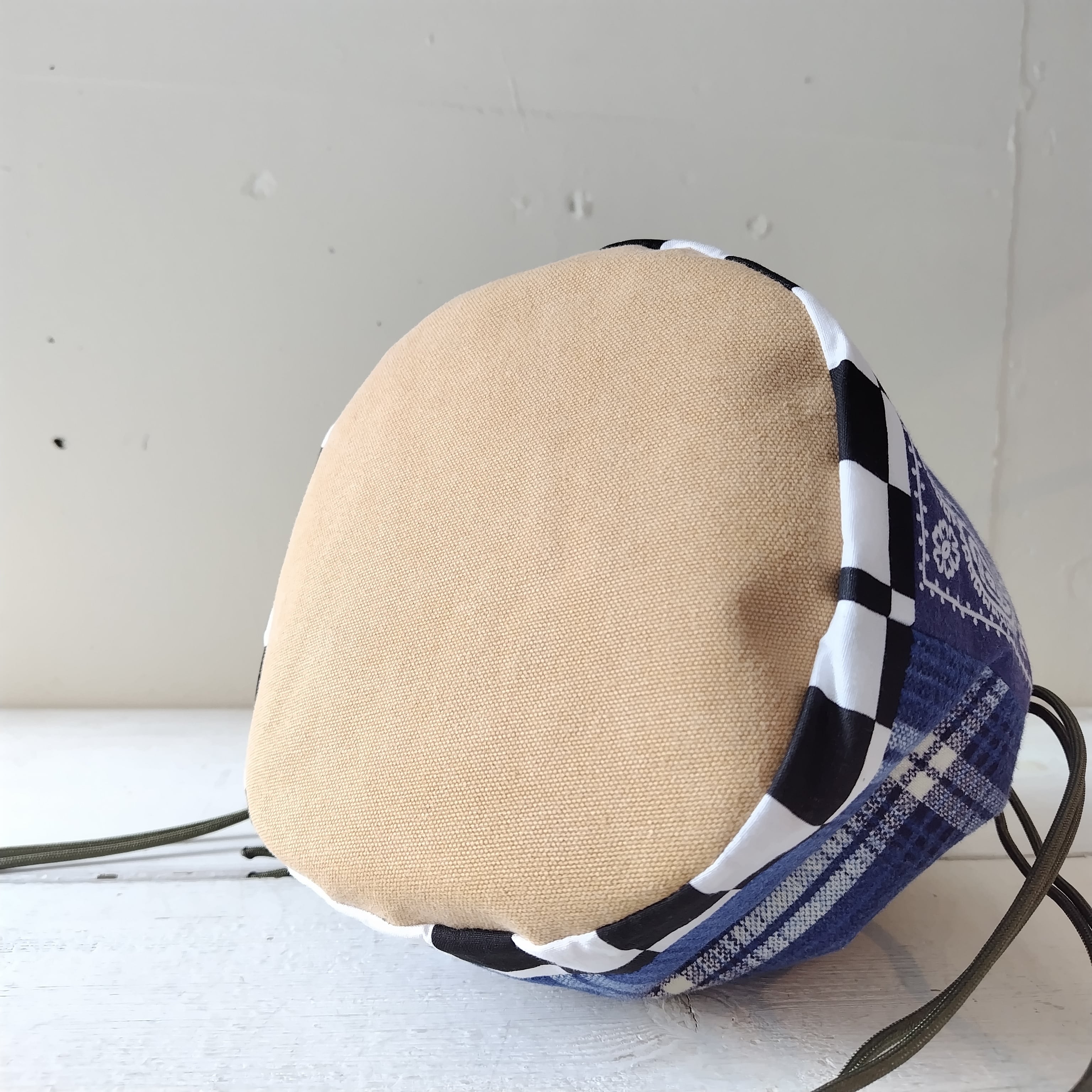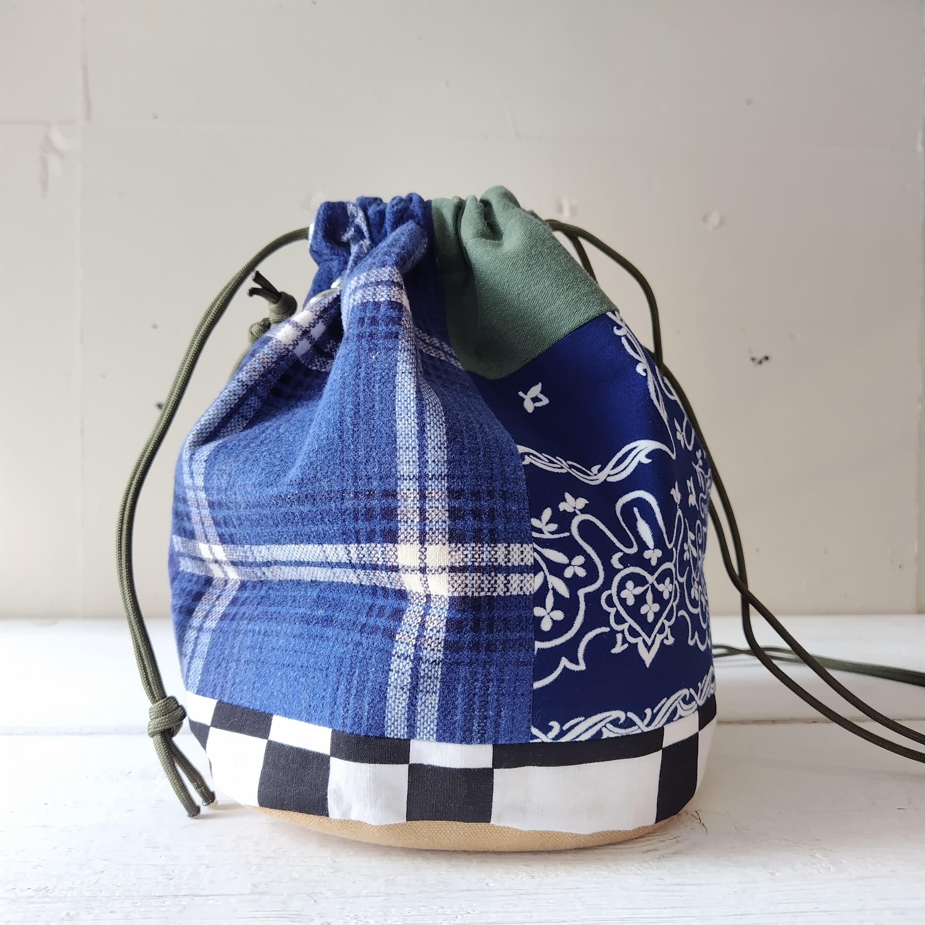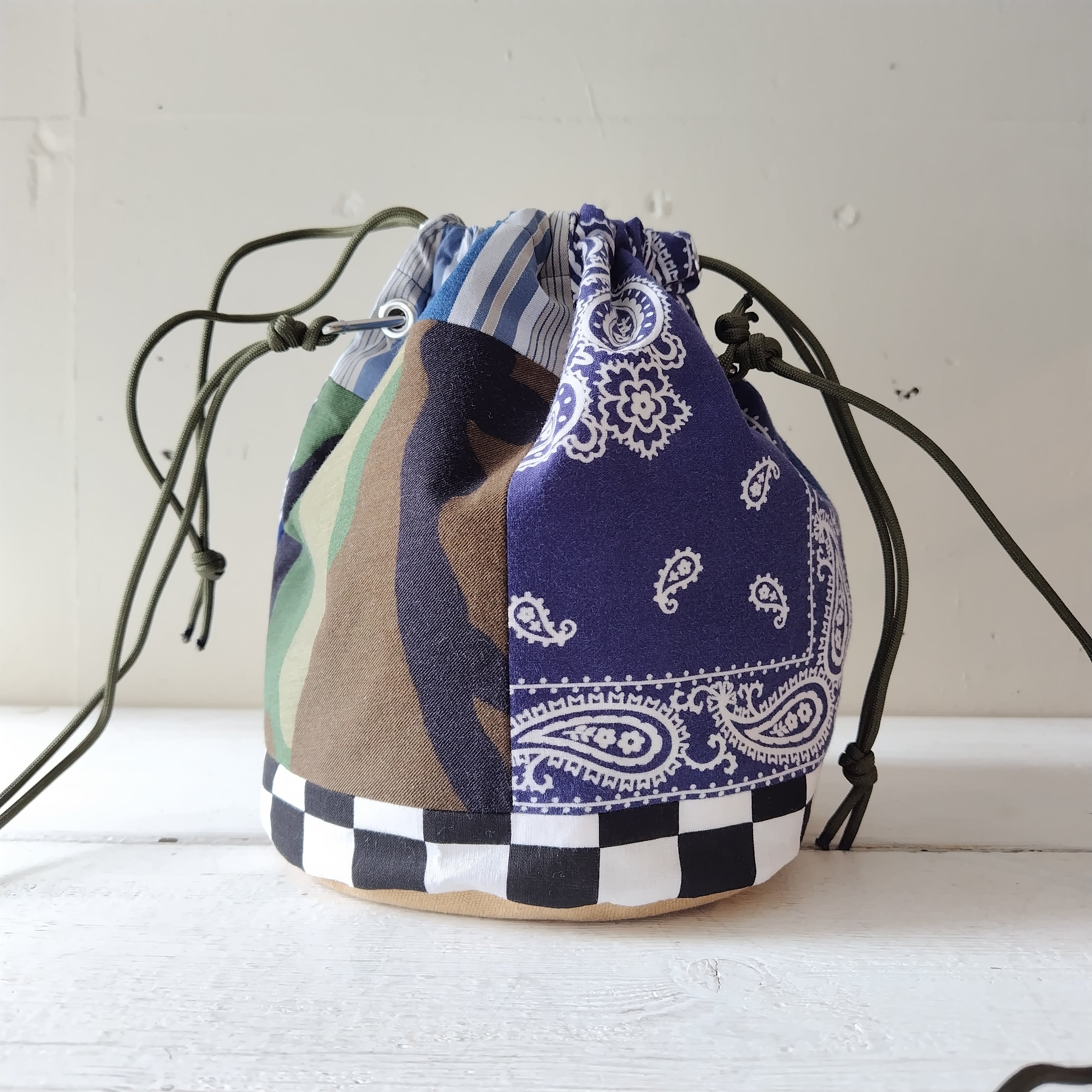 ラージサイズ パッチワーク リメイク巾着 2wayショルダーバッグ