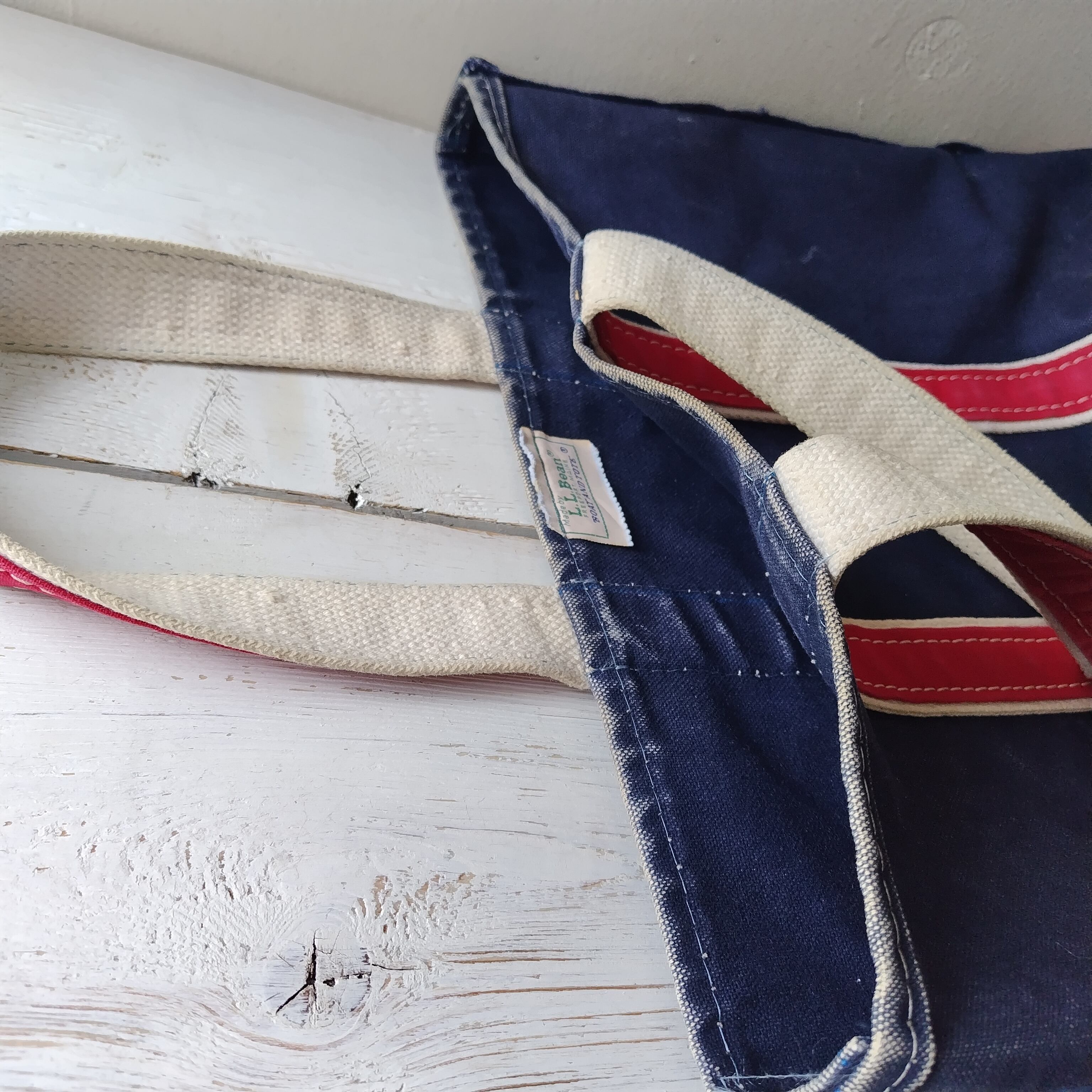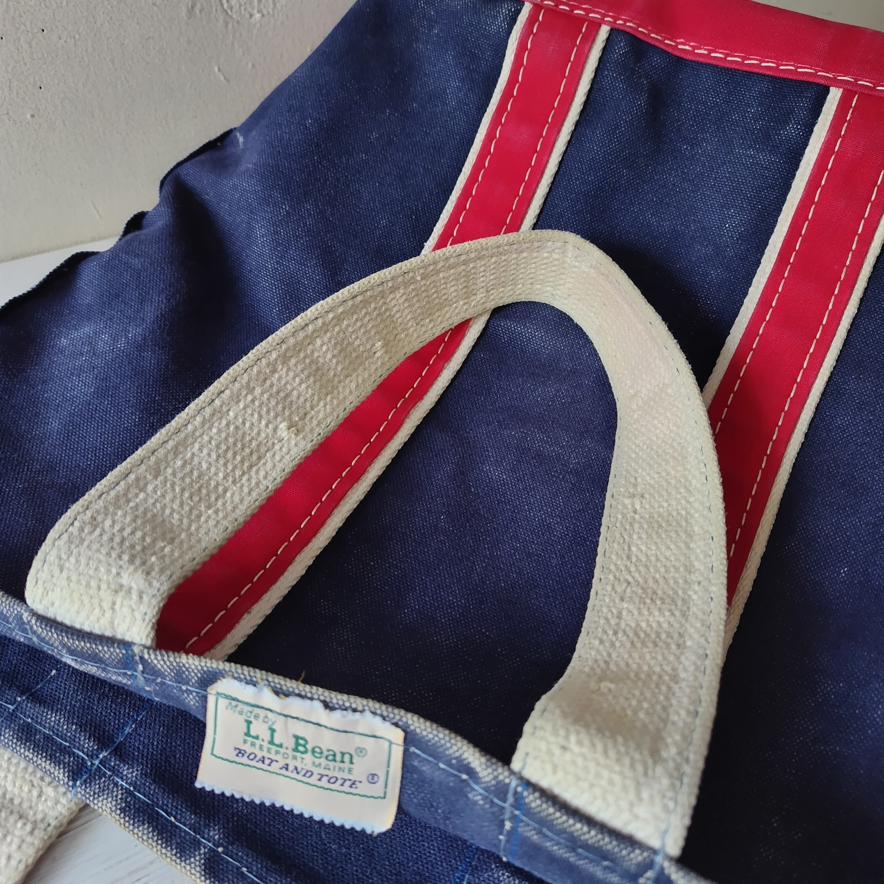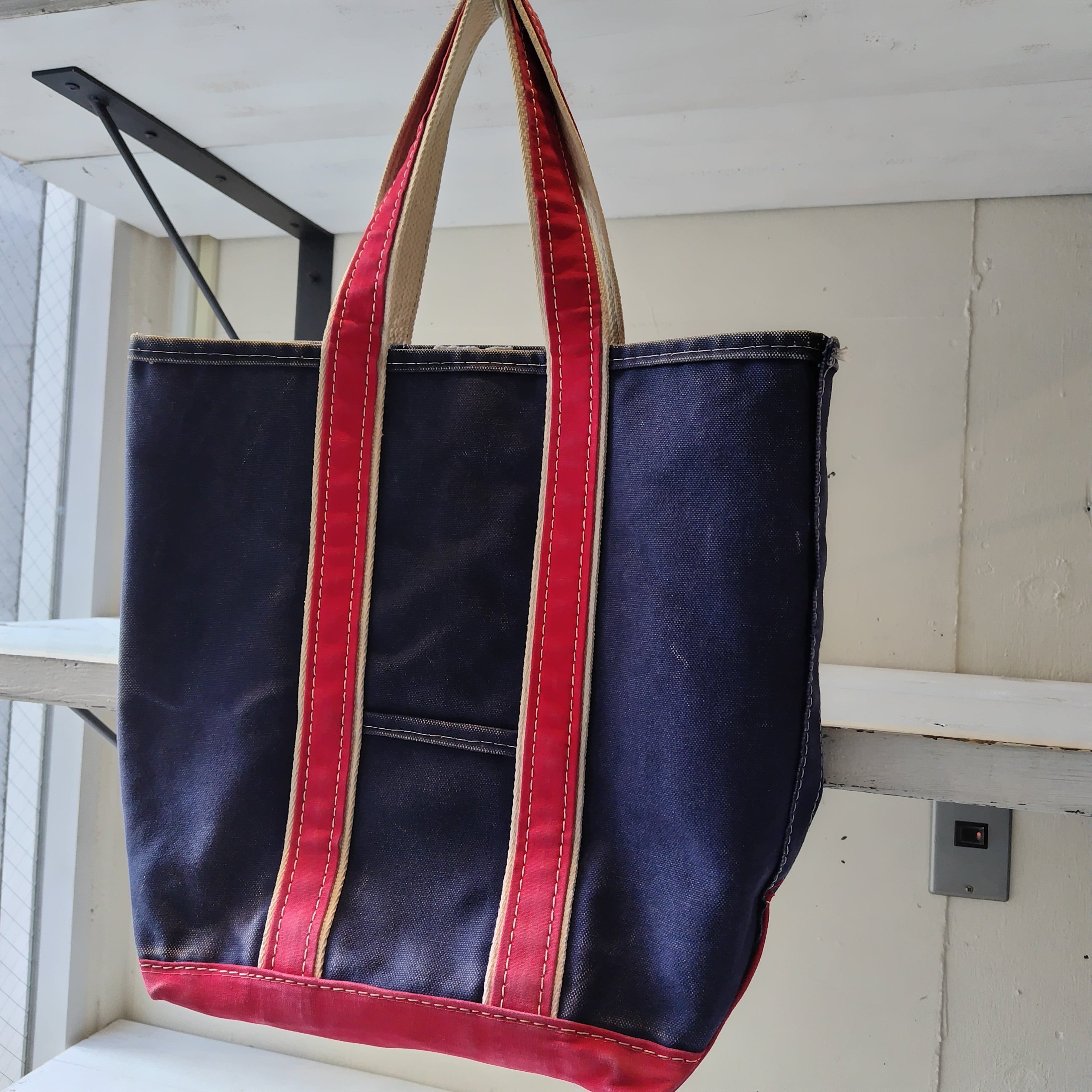 80s L.L.Bean NAVY x RED ハンドル デラックストートバッグになります!