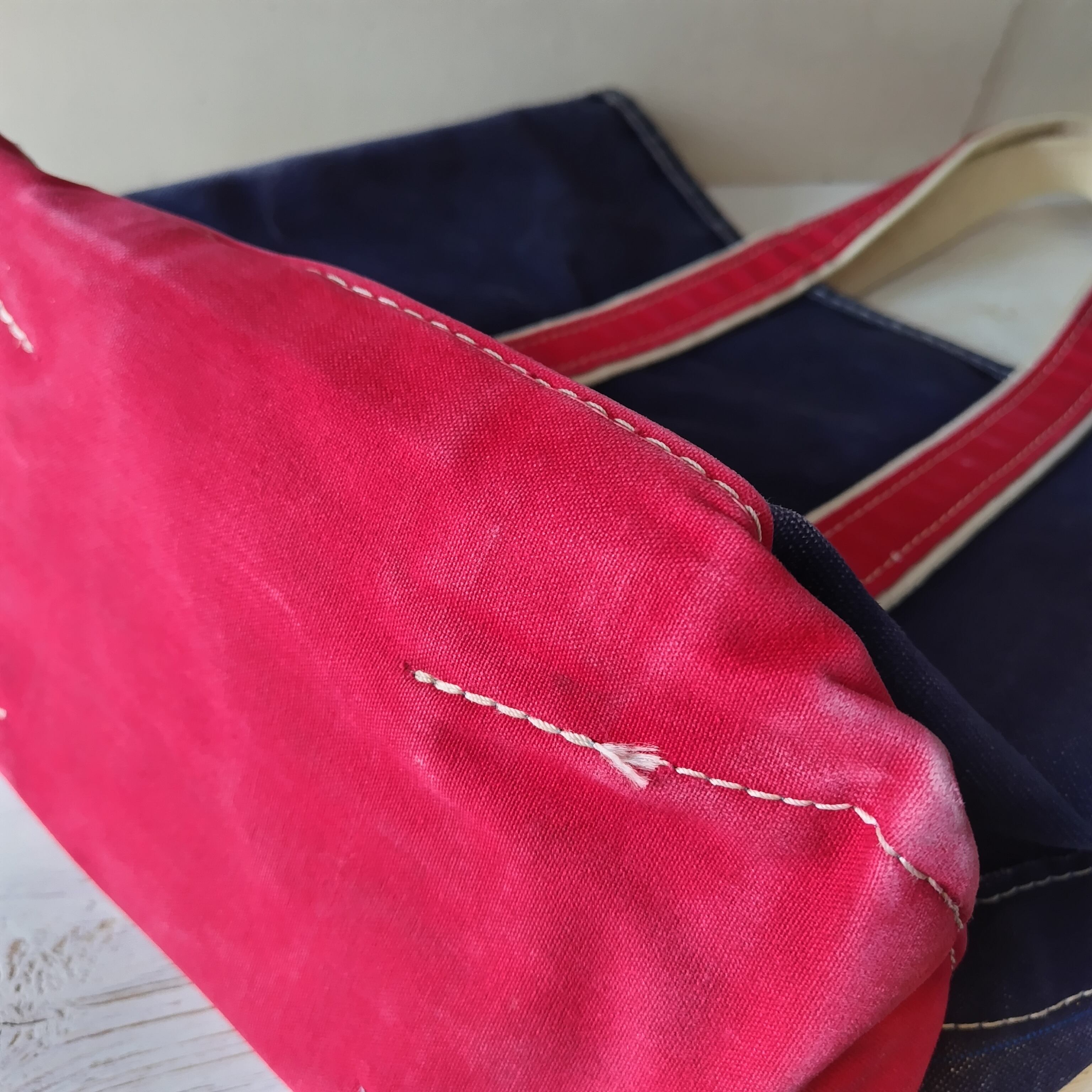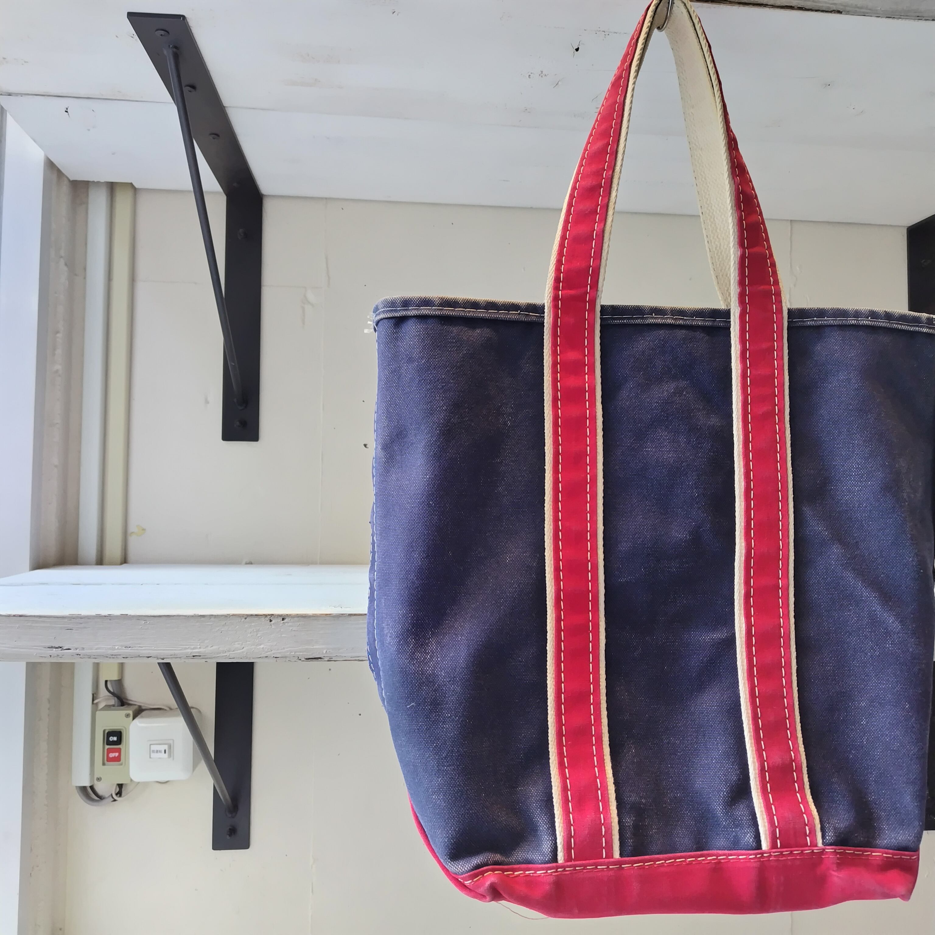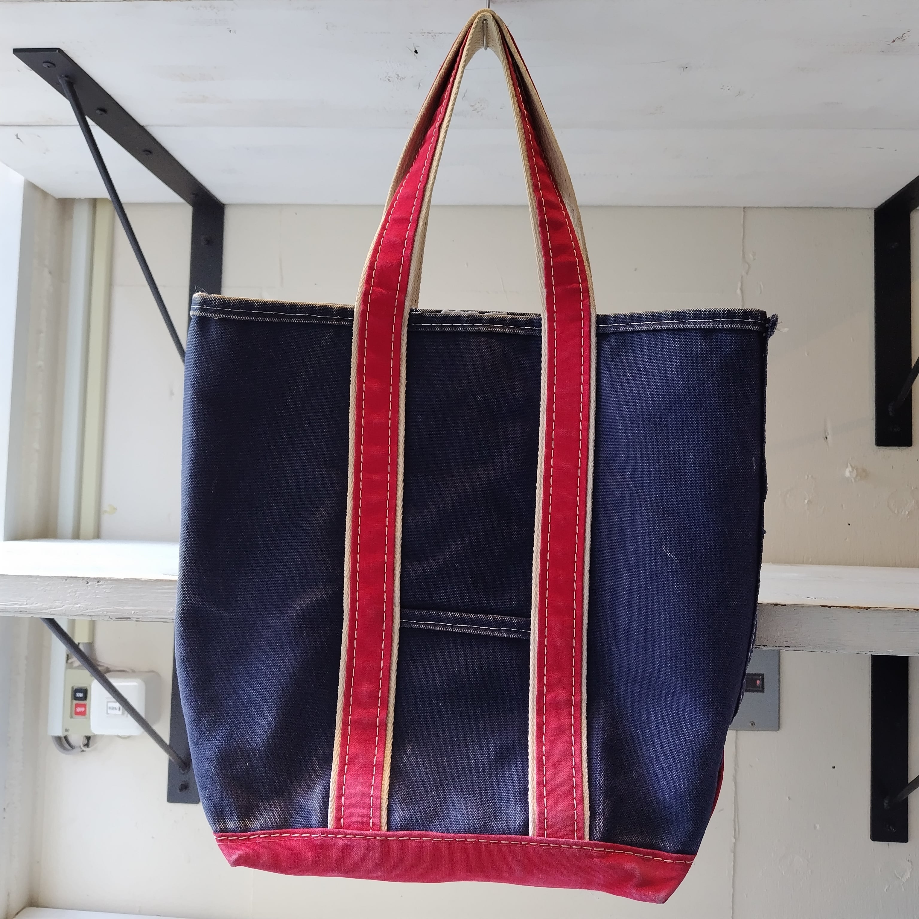 80s L.L.Bean NAVY x RED ハンドル デラックストートバッグになります!