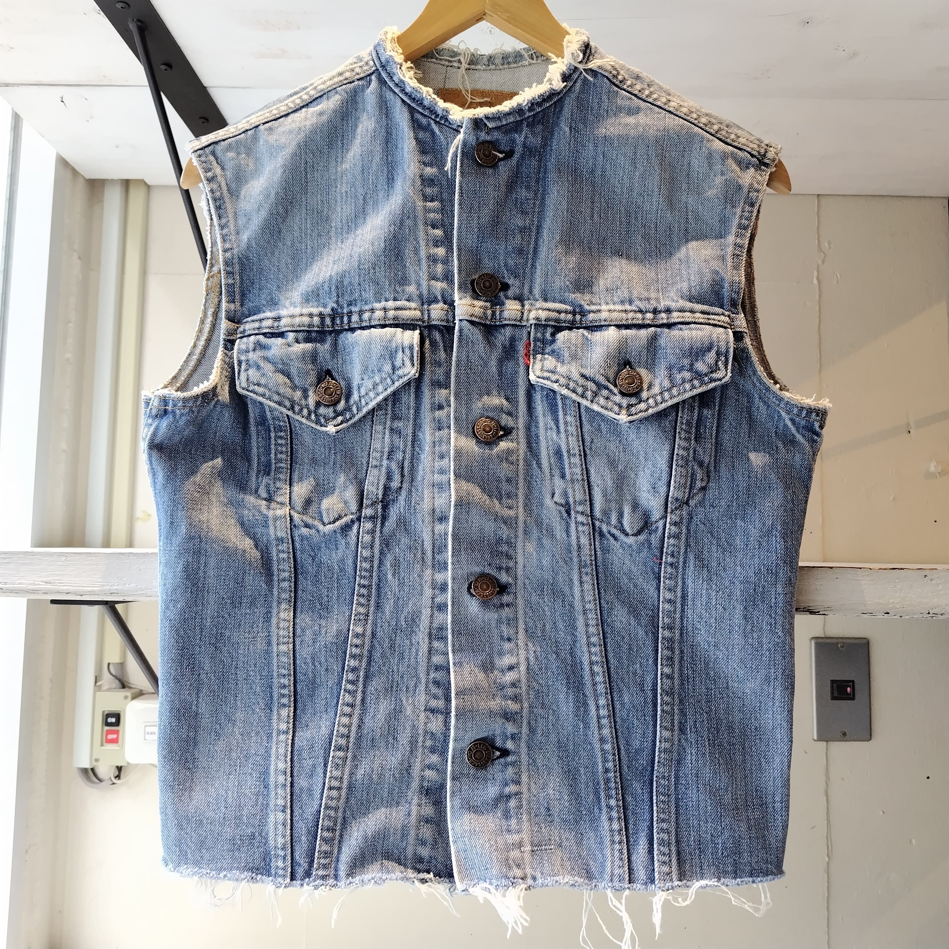色もいいですが生地も洗いこんだ柔らかさがありかなりオススメのリーバイス カットオフ デニムベストになります!!
