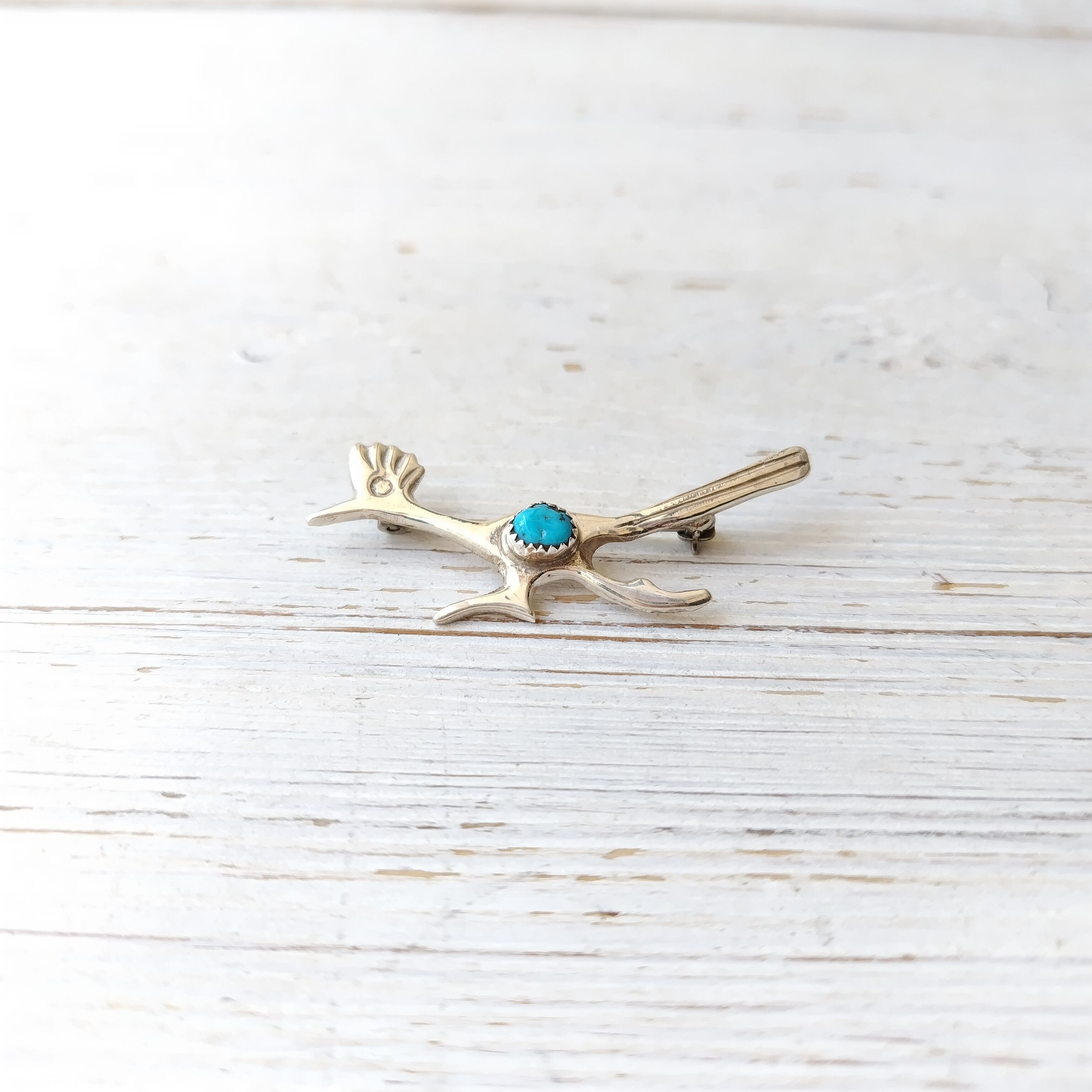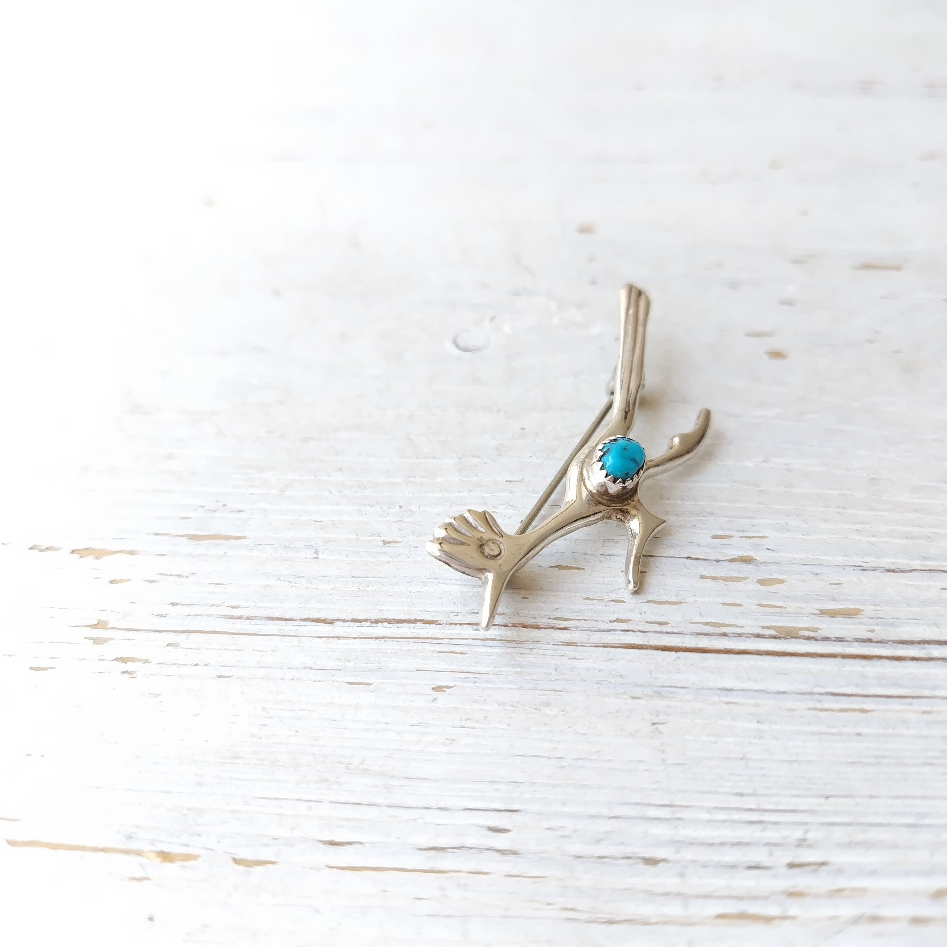 ナバホ ロードランナー Kingman Turquoise シルバーブローチ インディアンジュエリー