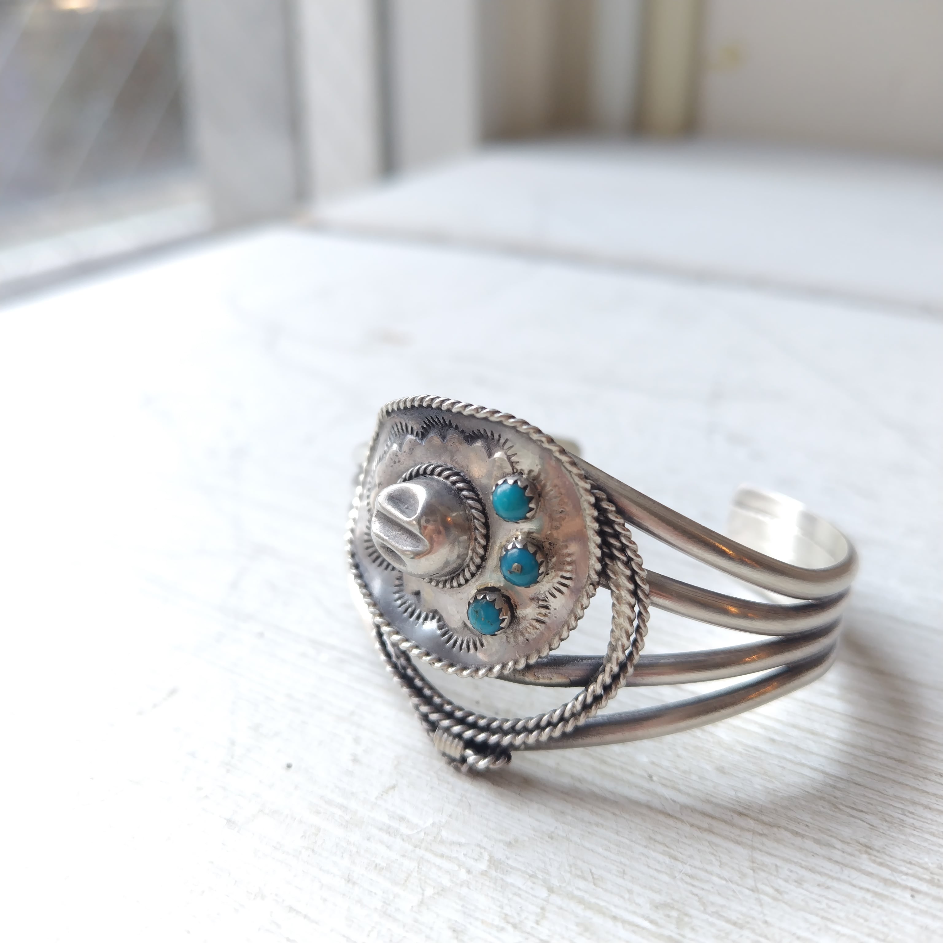 素晴らしいデザインのナバホ カウボーイハット ターコイズ シルバーバングルになります!