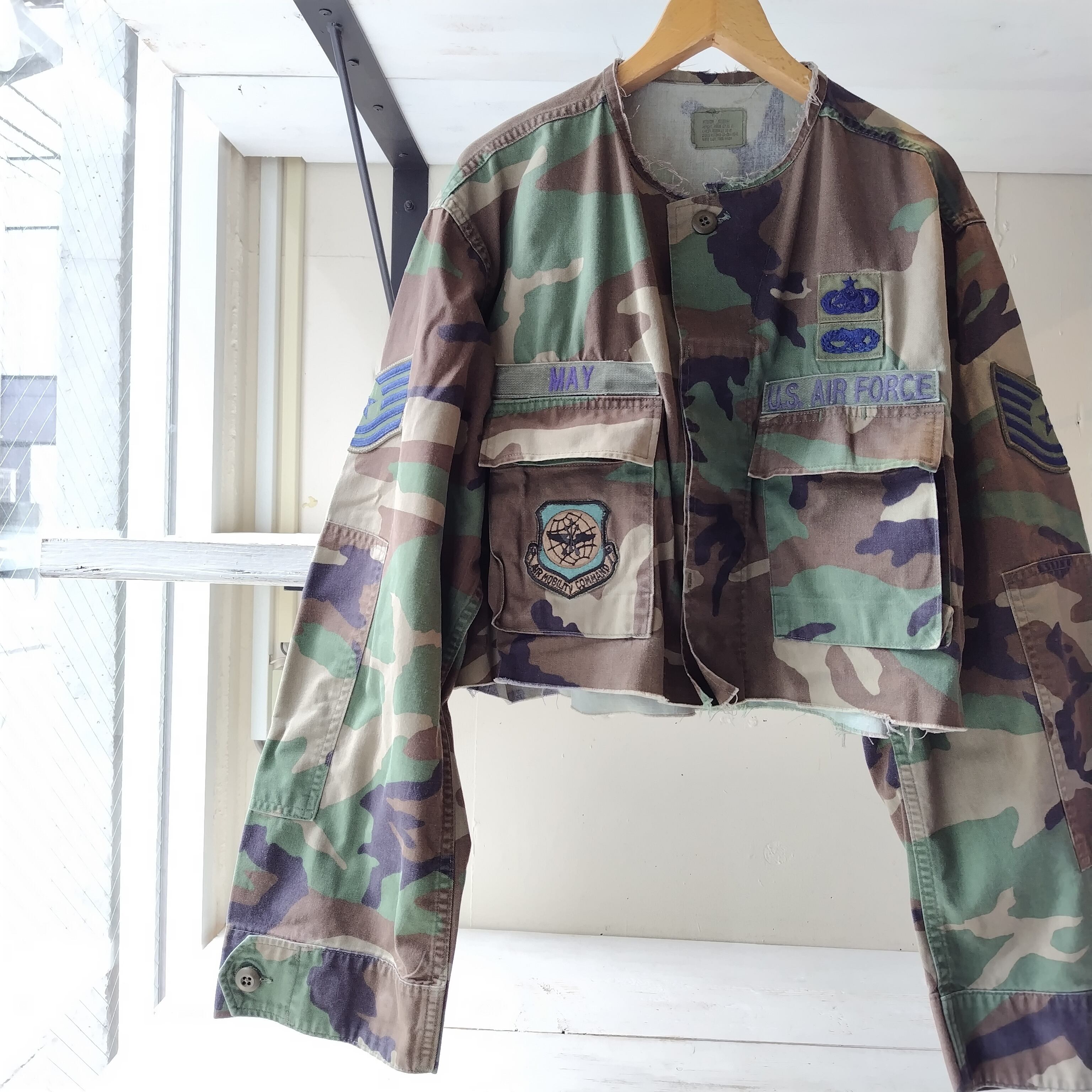 雰囲気、デザインのいいミリタリー カットオフ カモフラージュジャケットになります!