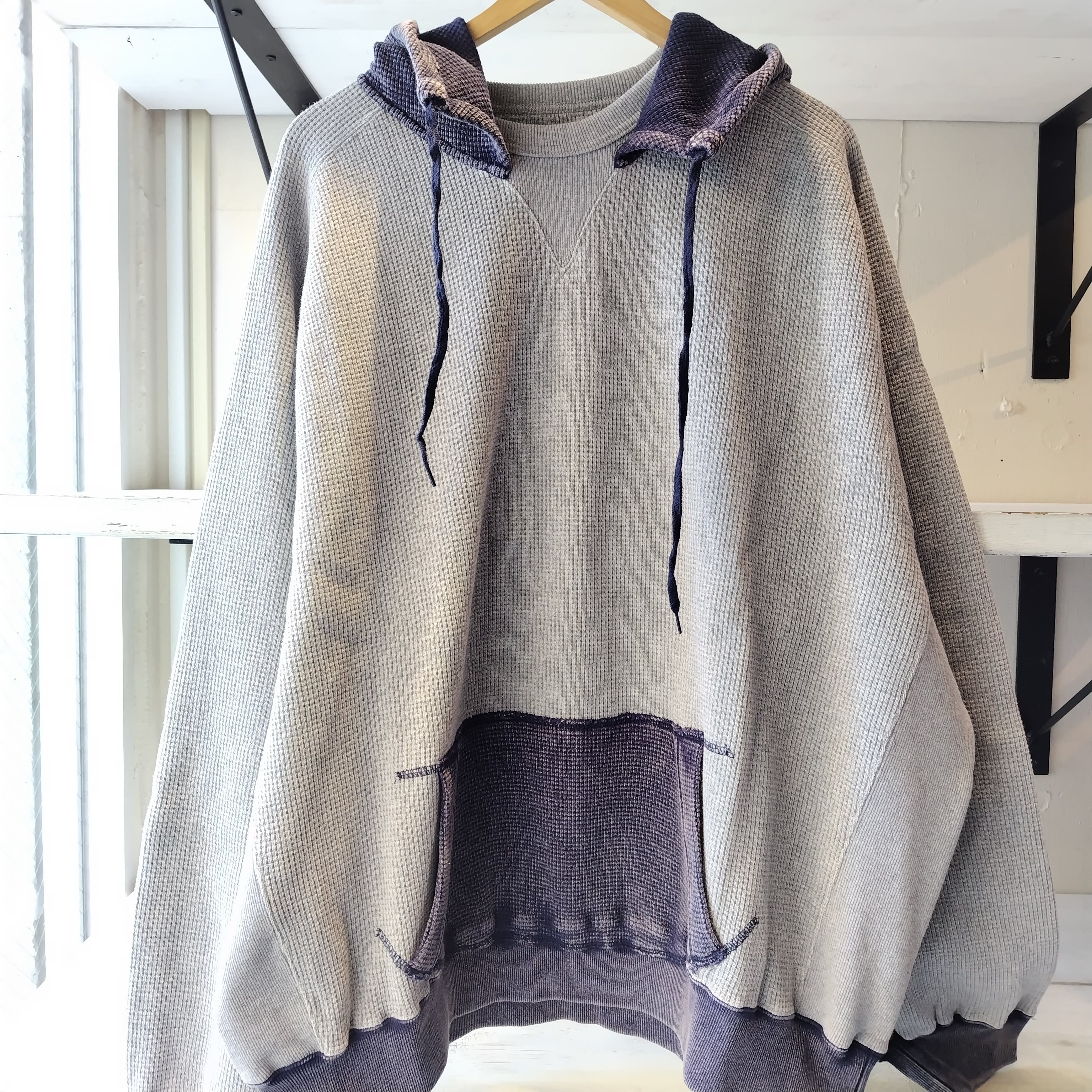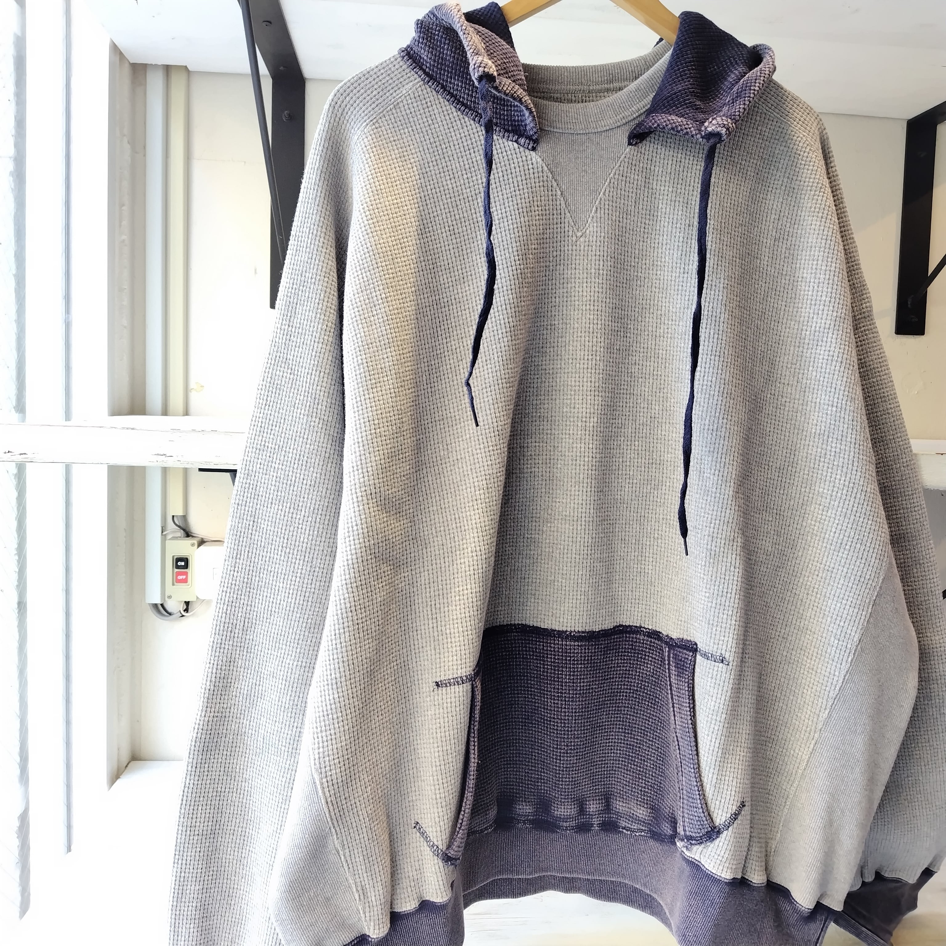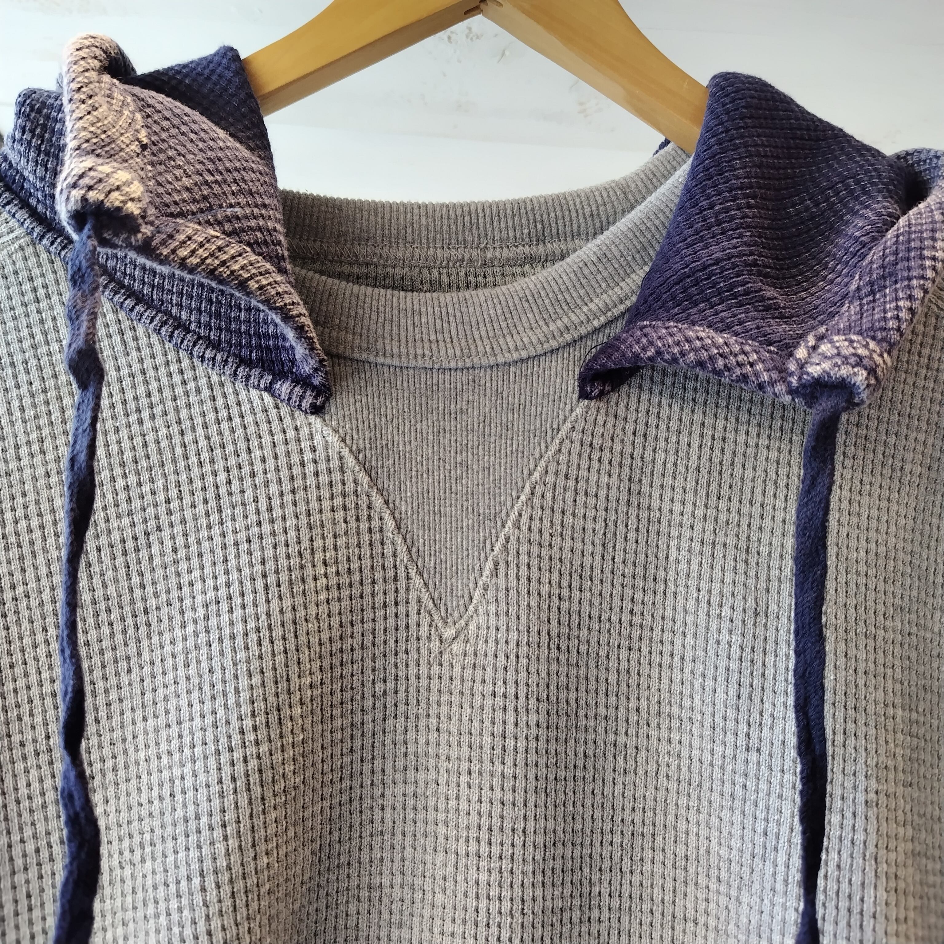 XLサイズ LongBeach x IMPRESTORE 別注 グレー x フェードネイビー サーマル 後付けパーカー はめ込み前V フリーダムスリーブ