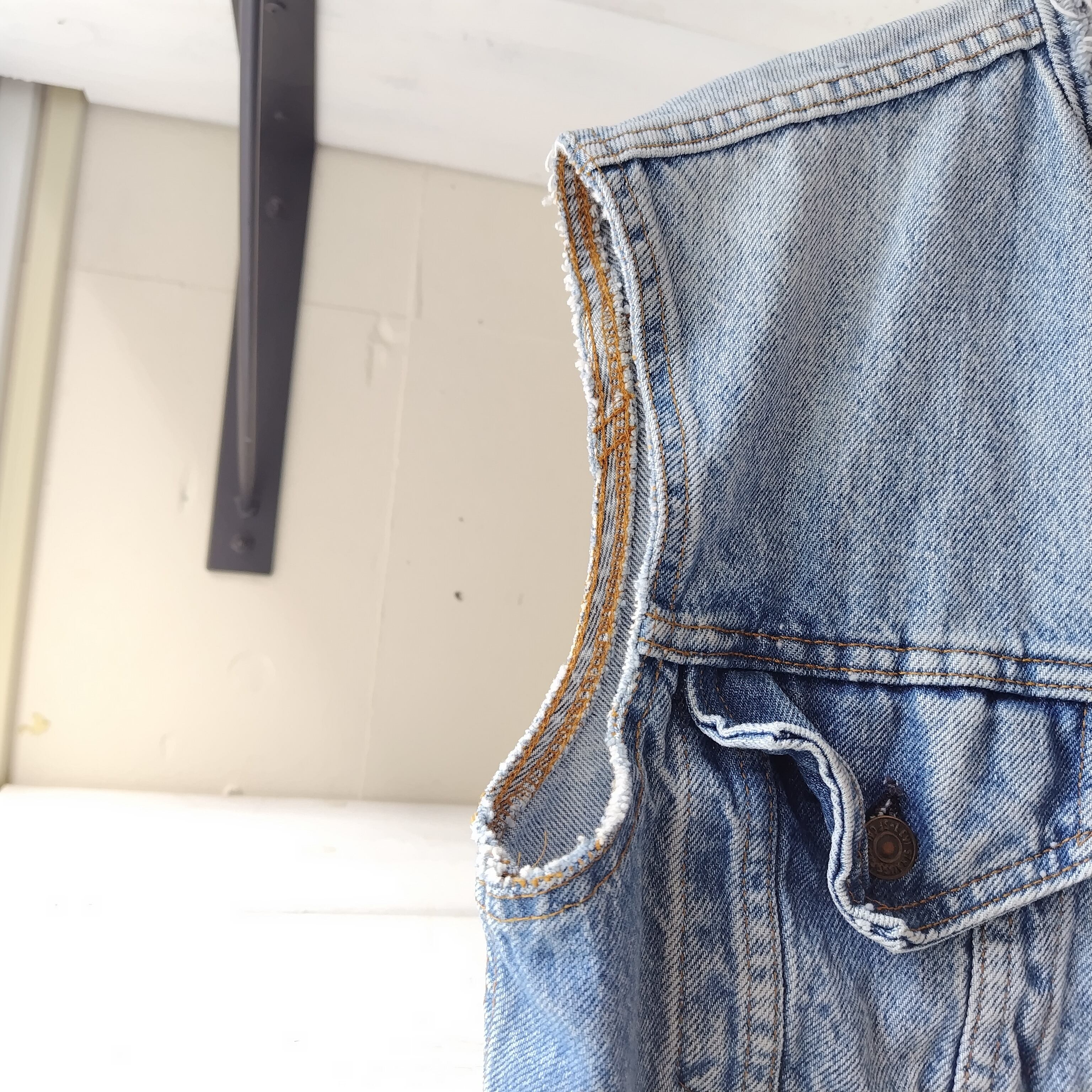 色もいいですが生地も洗いこんだ柔らかさがありかなりオススメのリーバイス カットオフ デニムベストになります!!