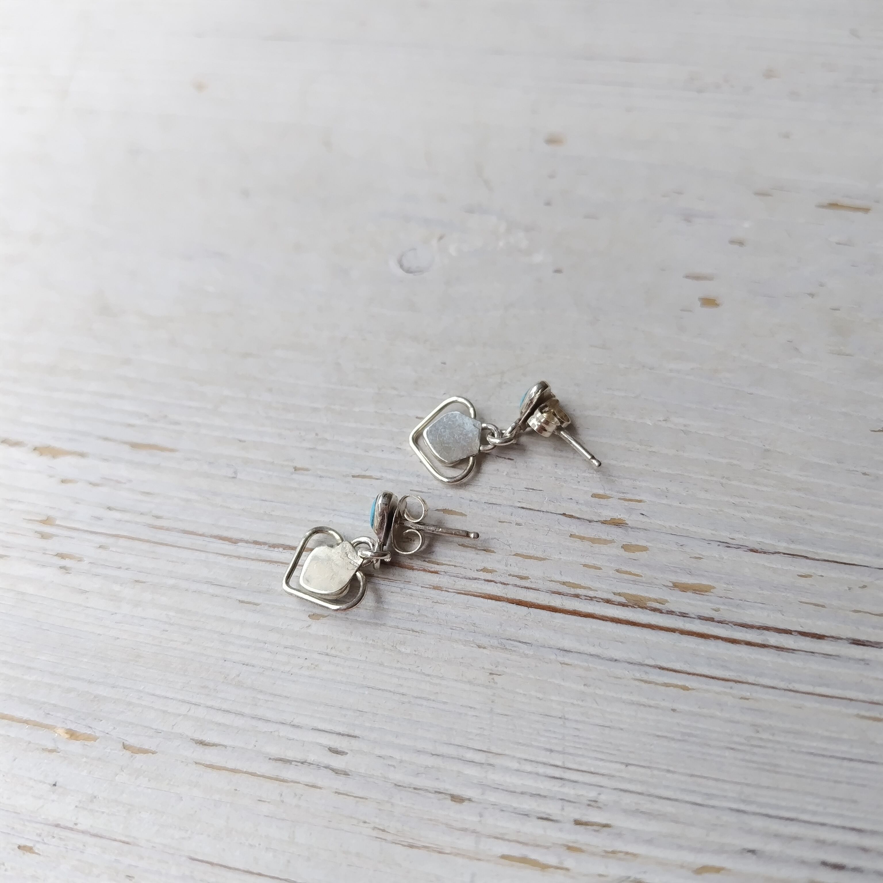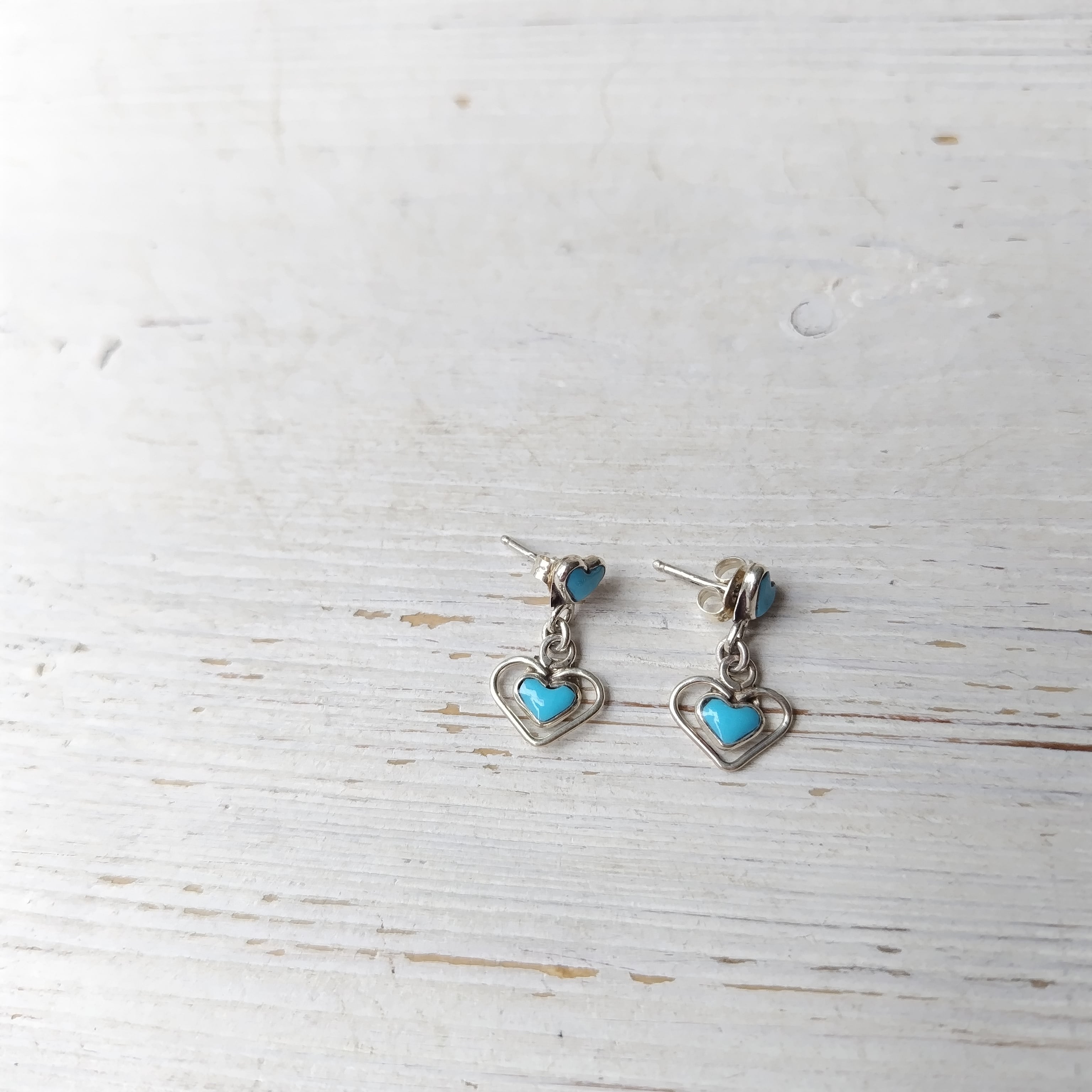素晴らしいデザインのナバホ ターコイズ ハート シルバー ピアスになります!