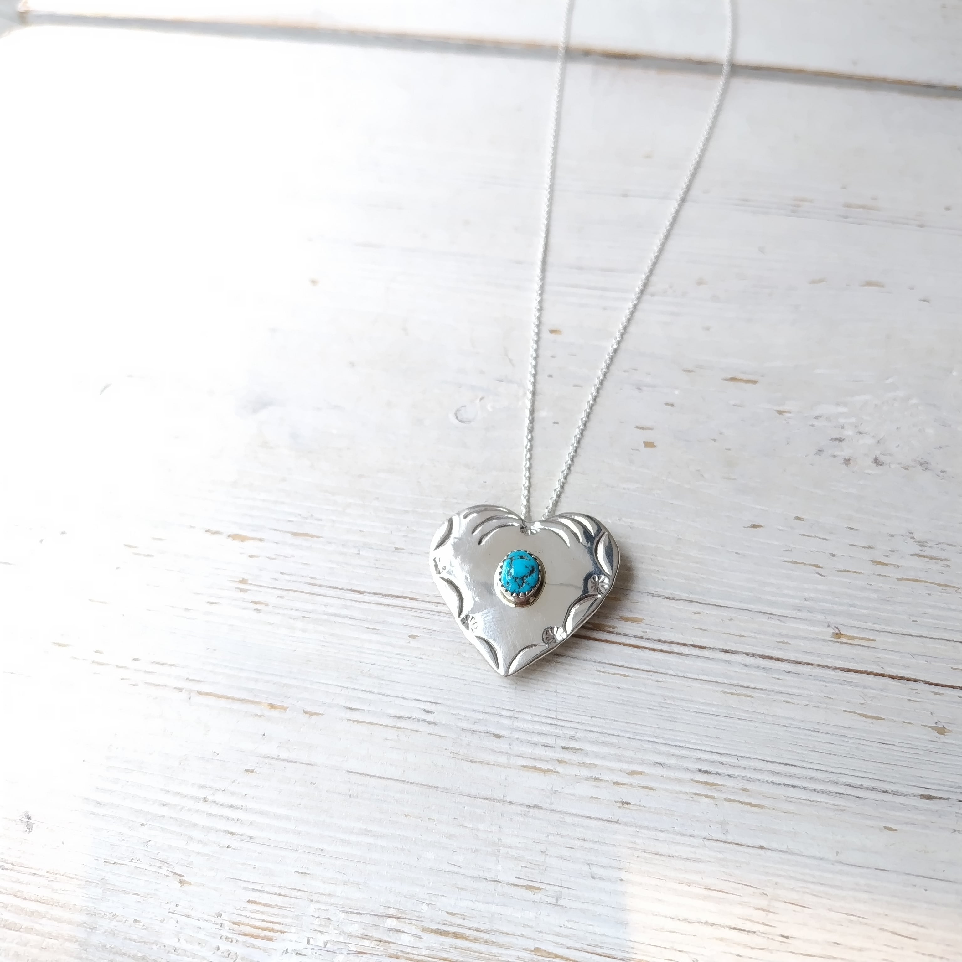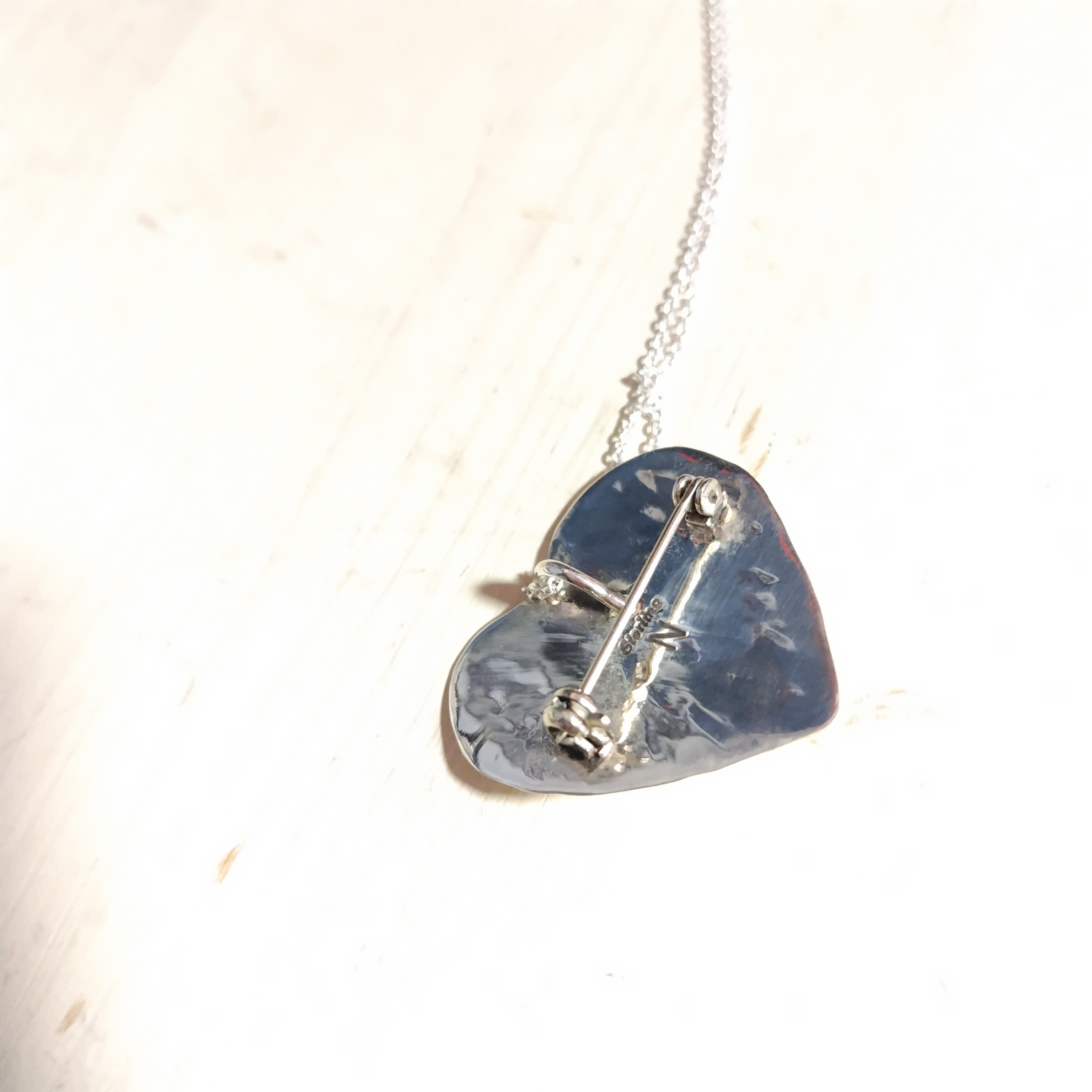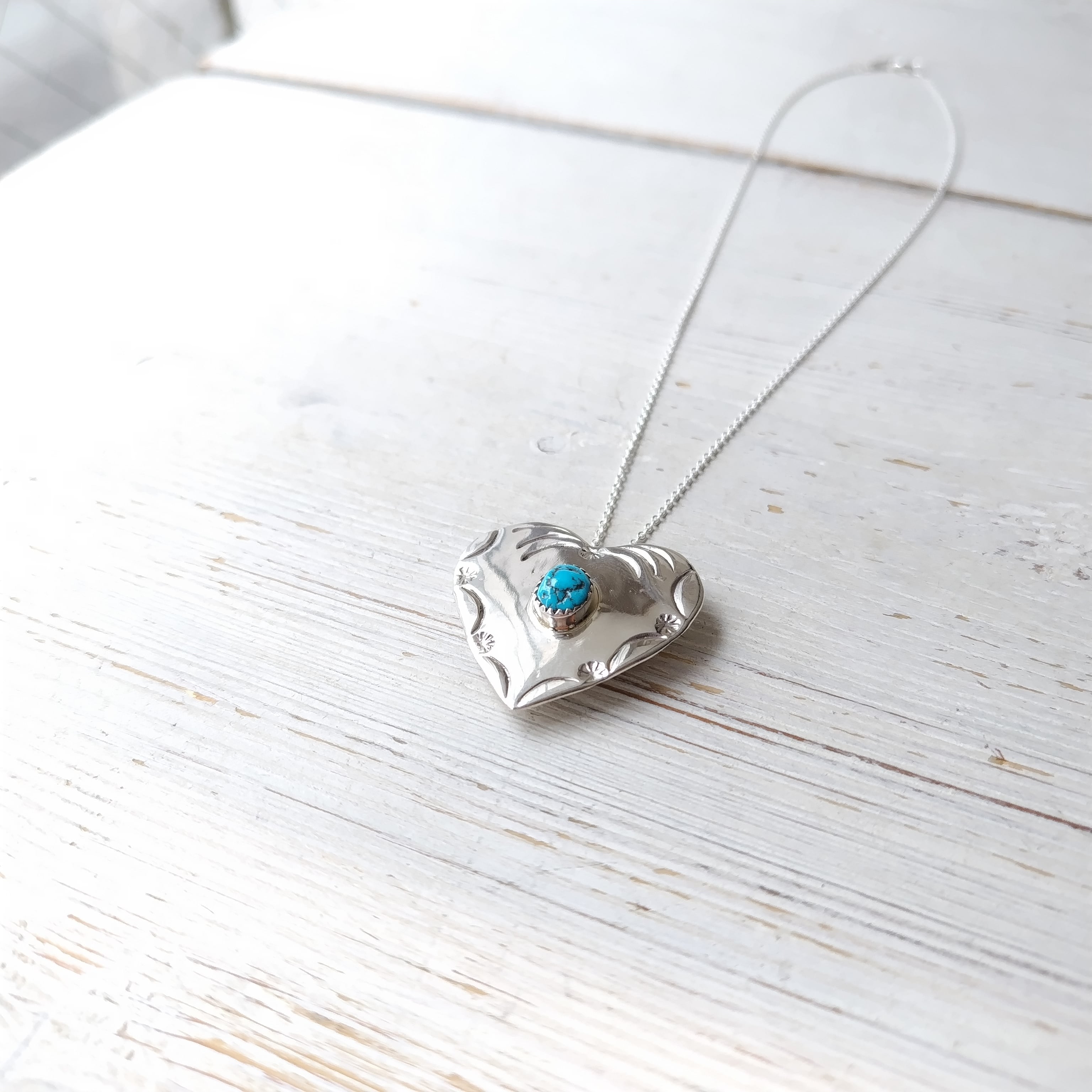 ナバホ ハート ターコイズ シルバーブローチ + ネックレストップ 45cm シルバーチェーン付き インディアンジュエリー