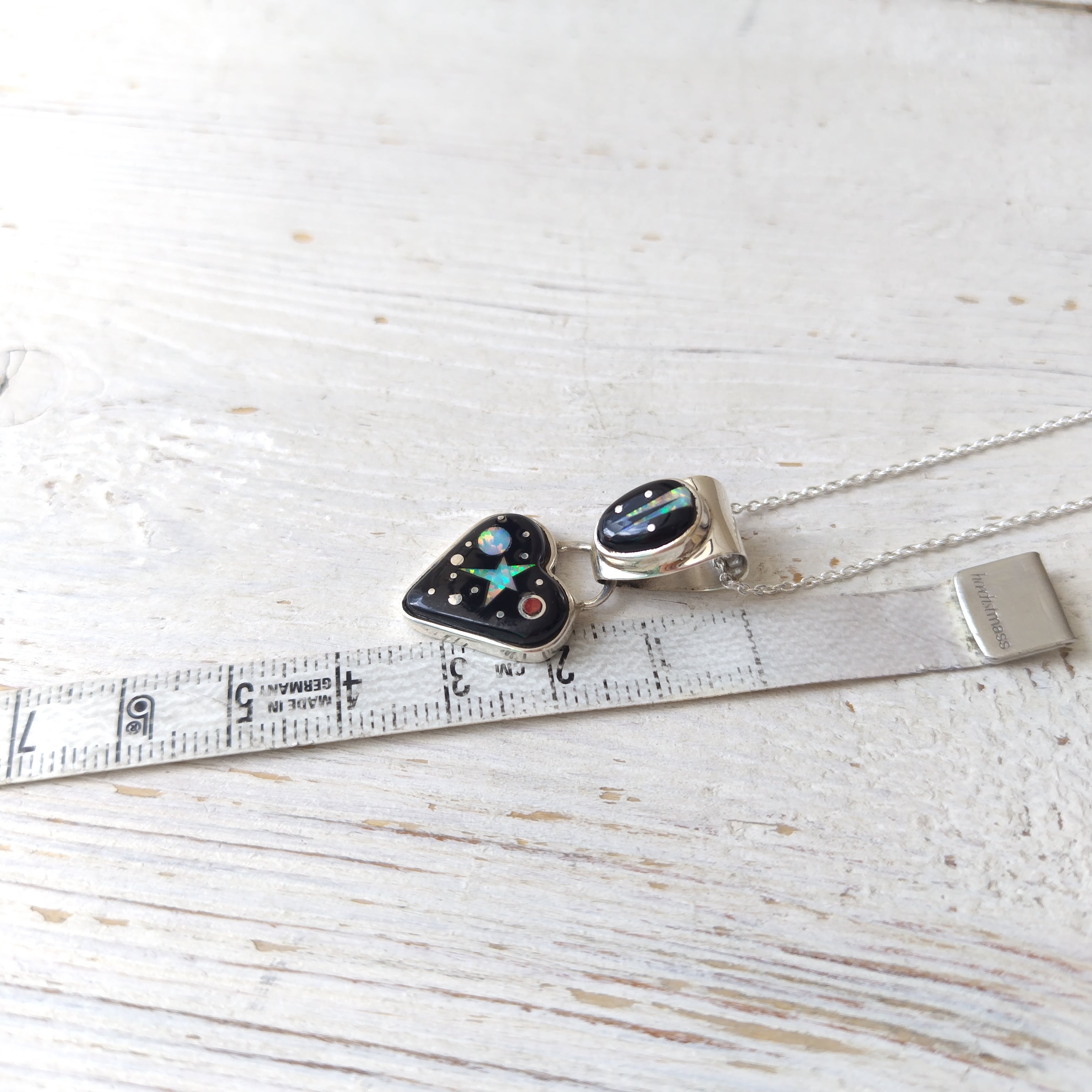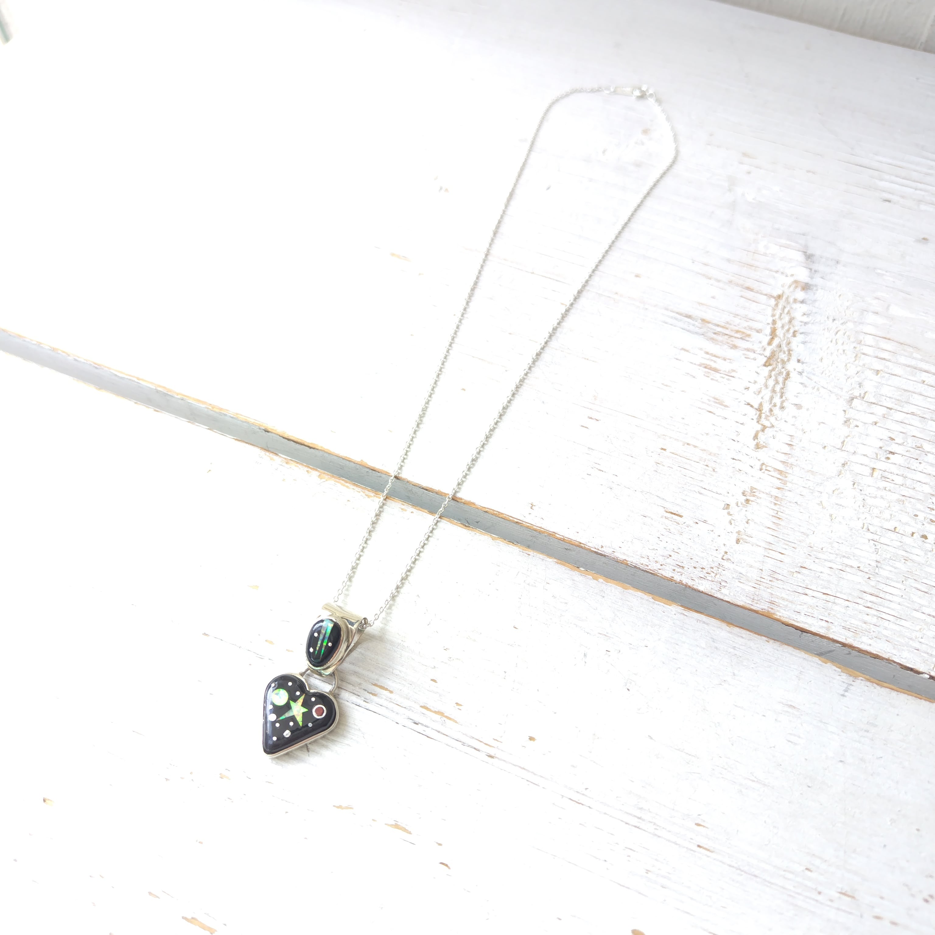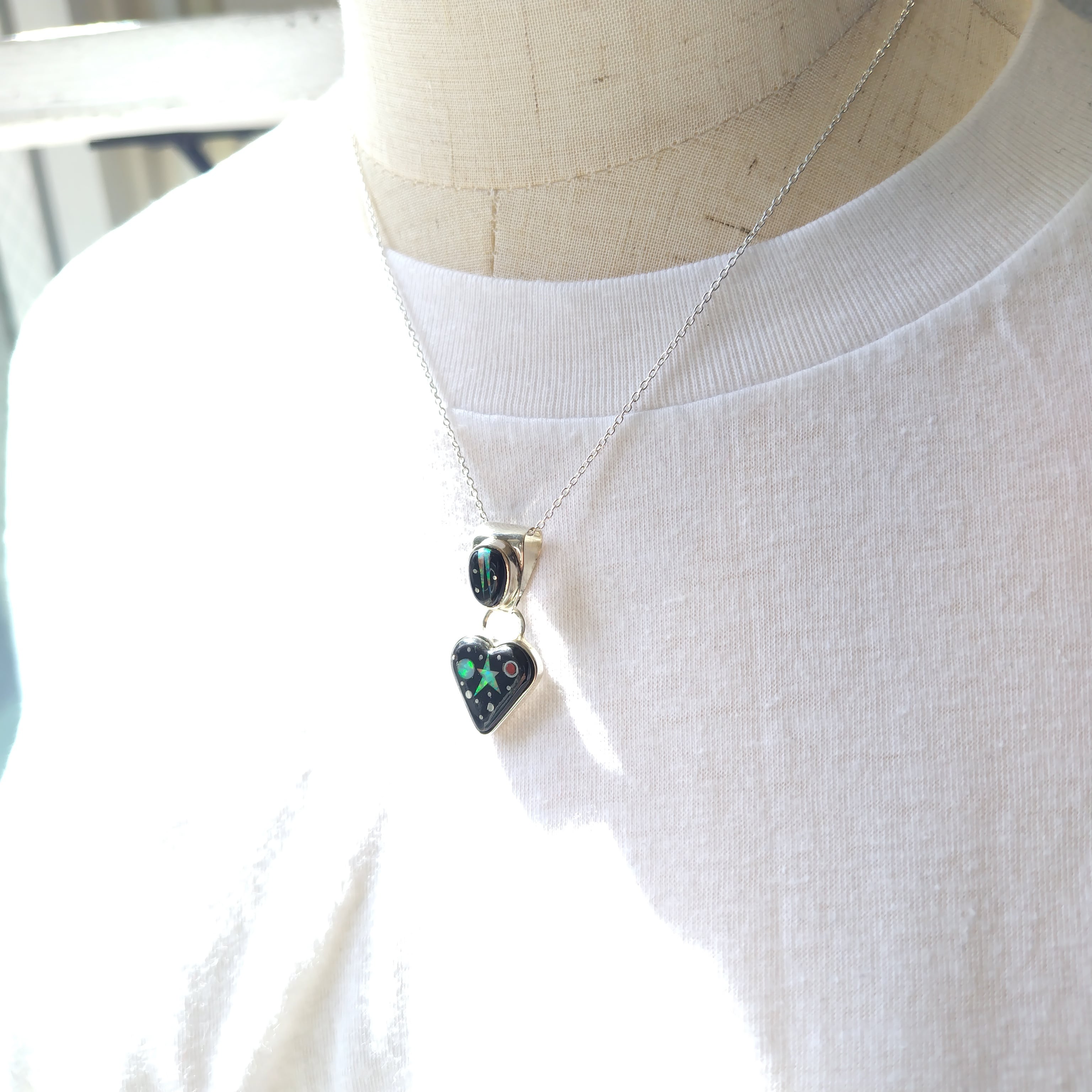 ナバホ Matthew Jack インレイ ハート シルバートップ 45cm シルバーチェーン付き インディアンジュエリー
