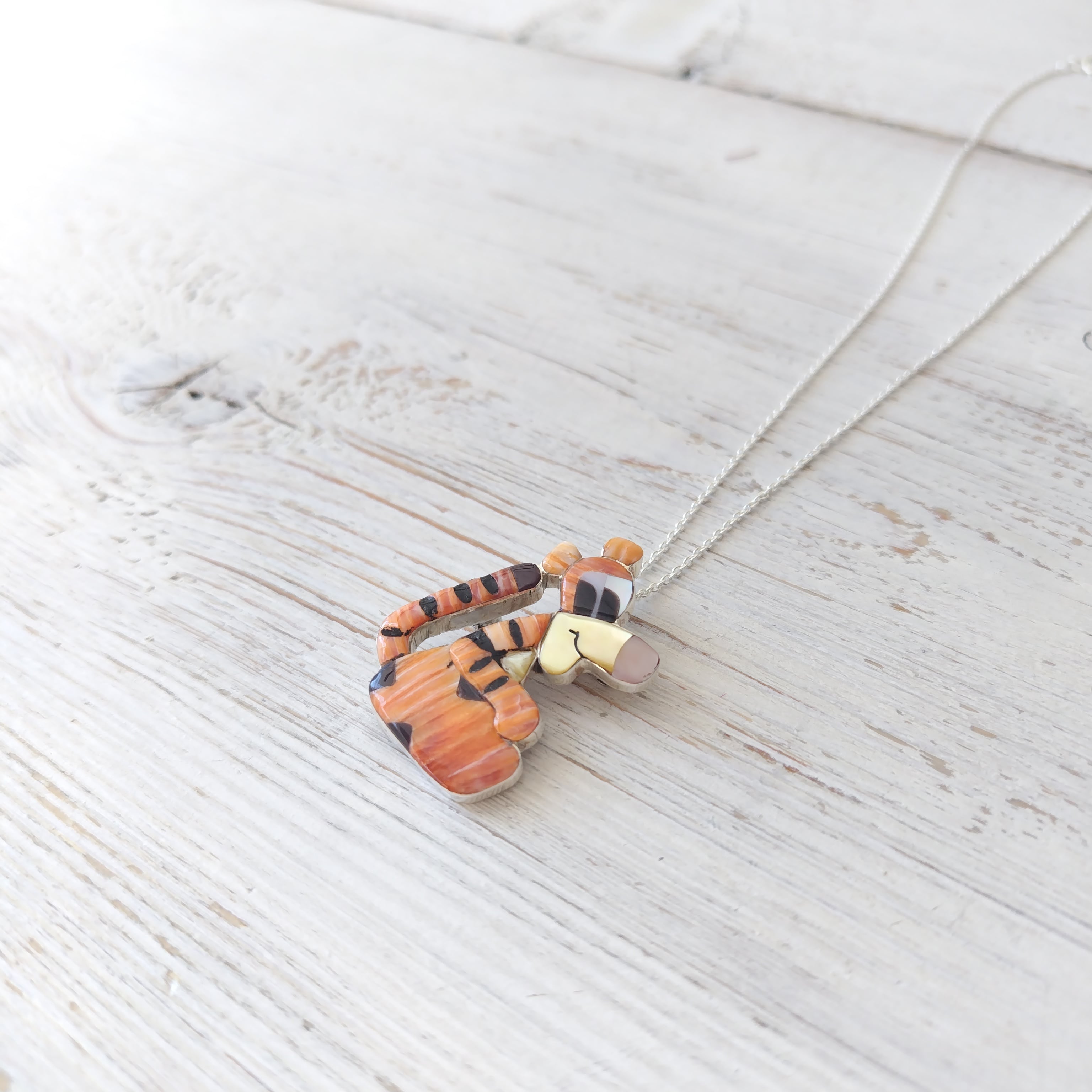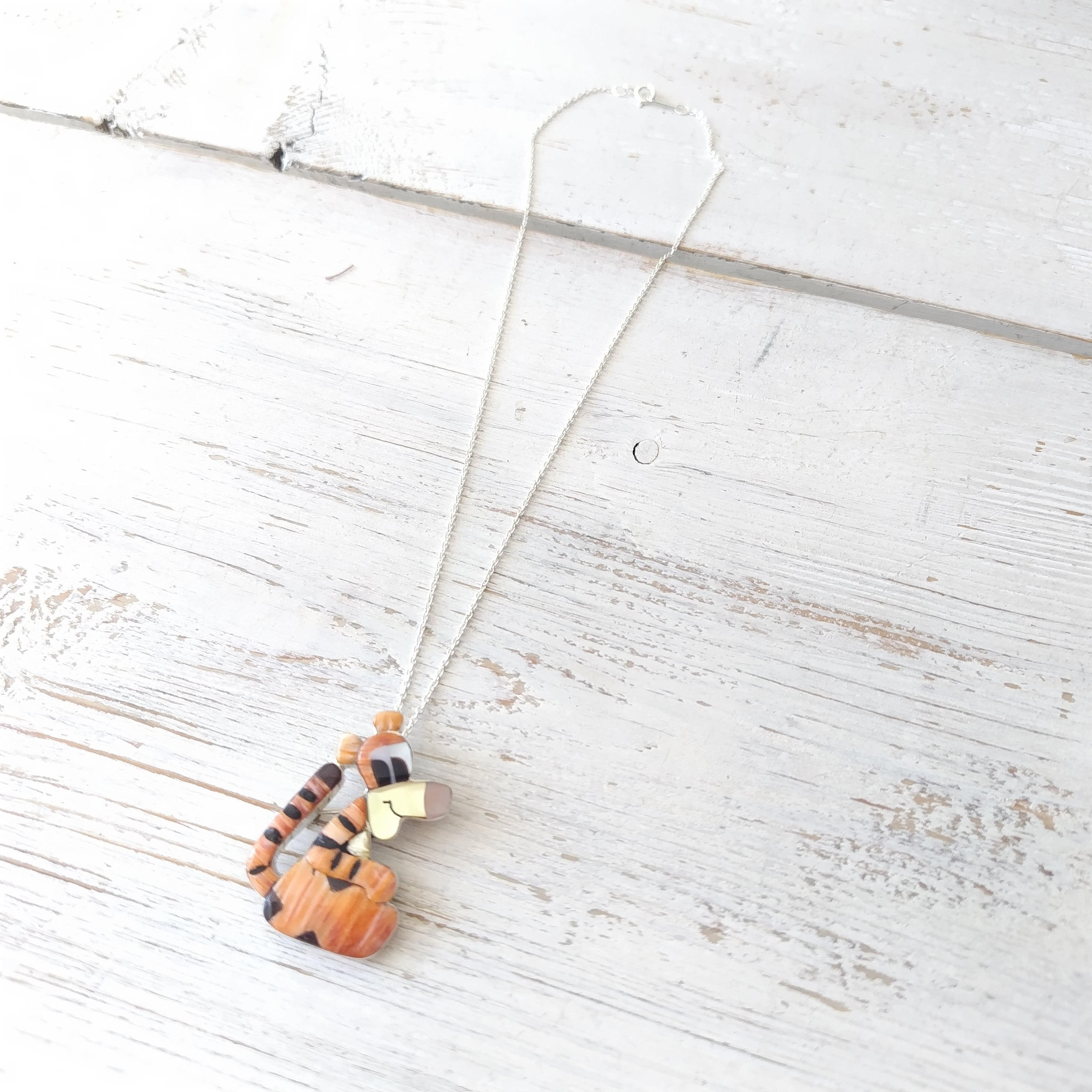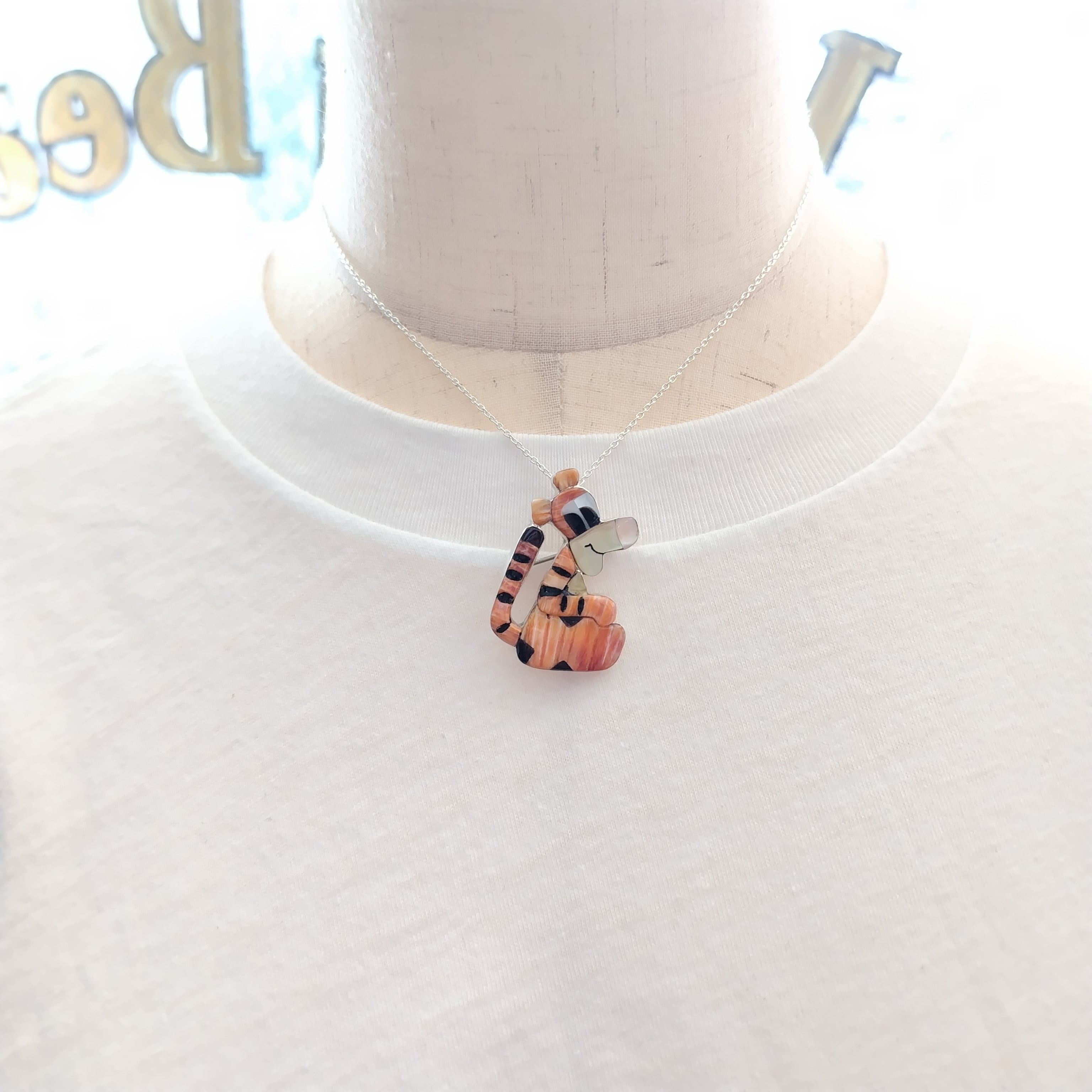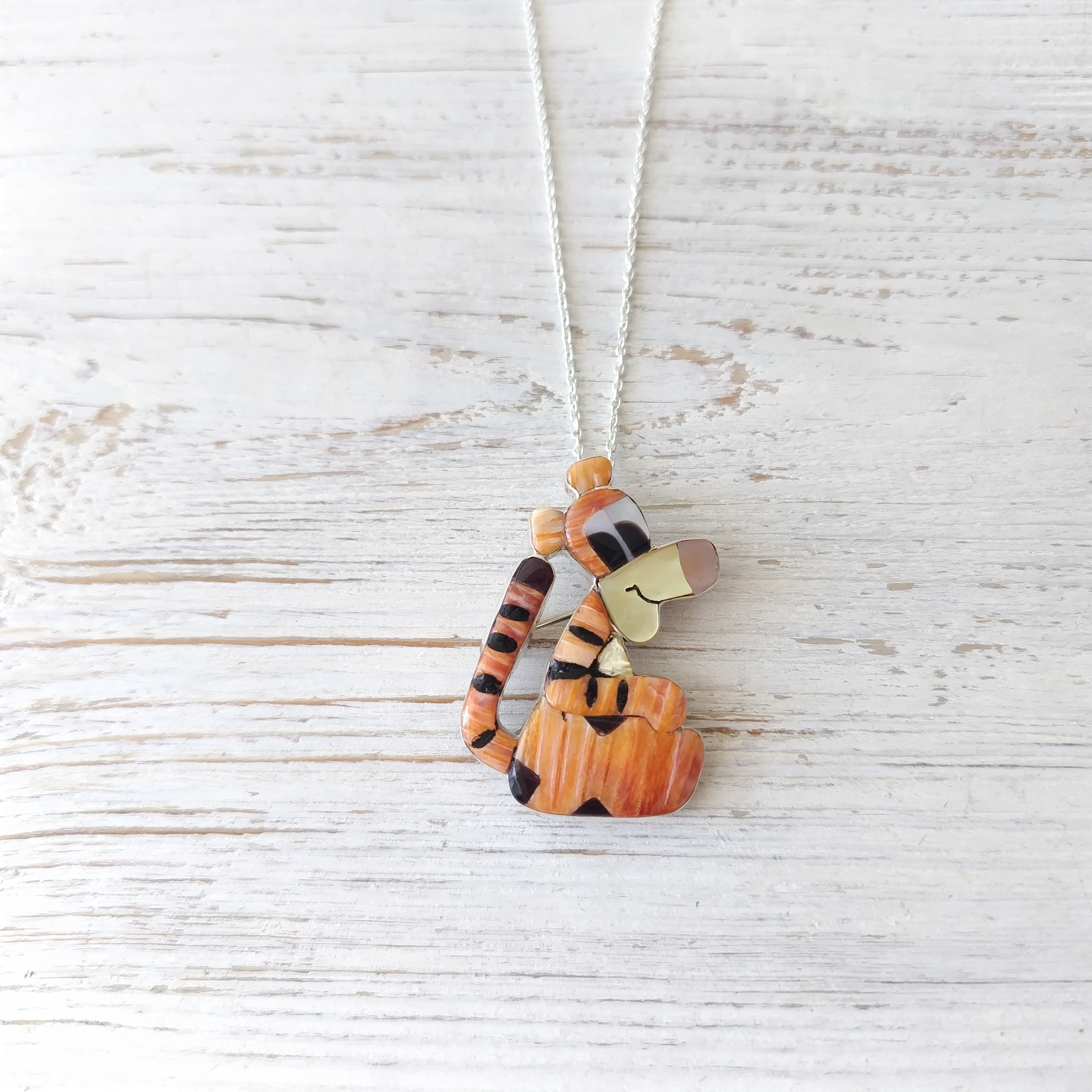 ZUNI Paula Leekity インレイ シルバーブローチ + ネックレストップ 40cm シルバーチェーン付き インディアンジュエリー