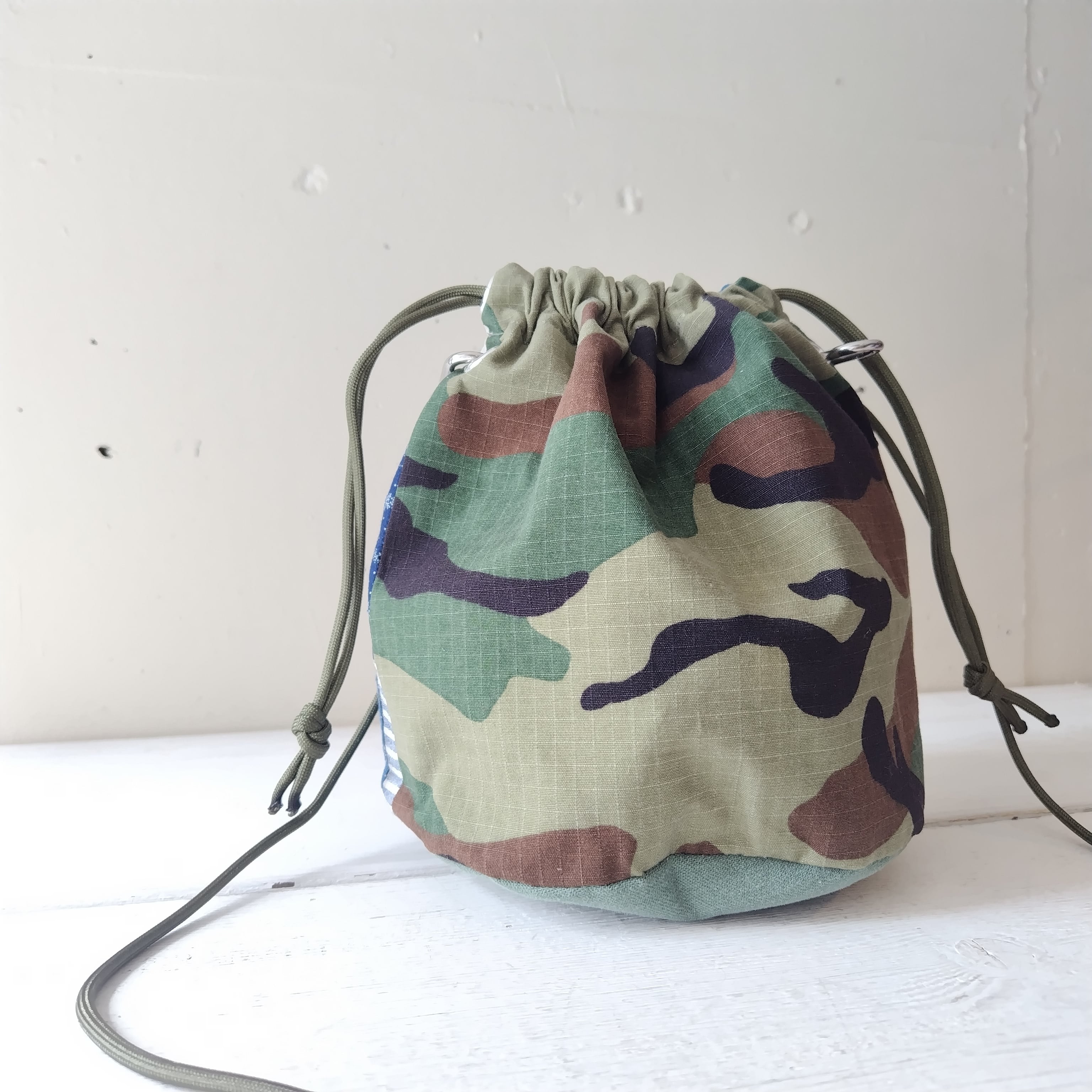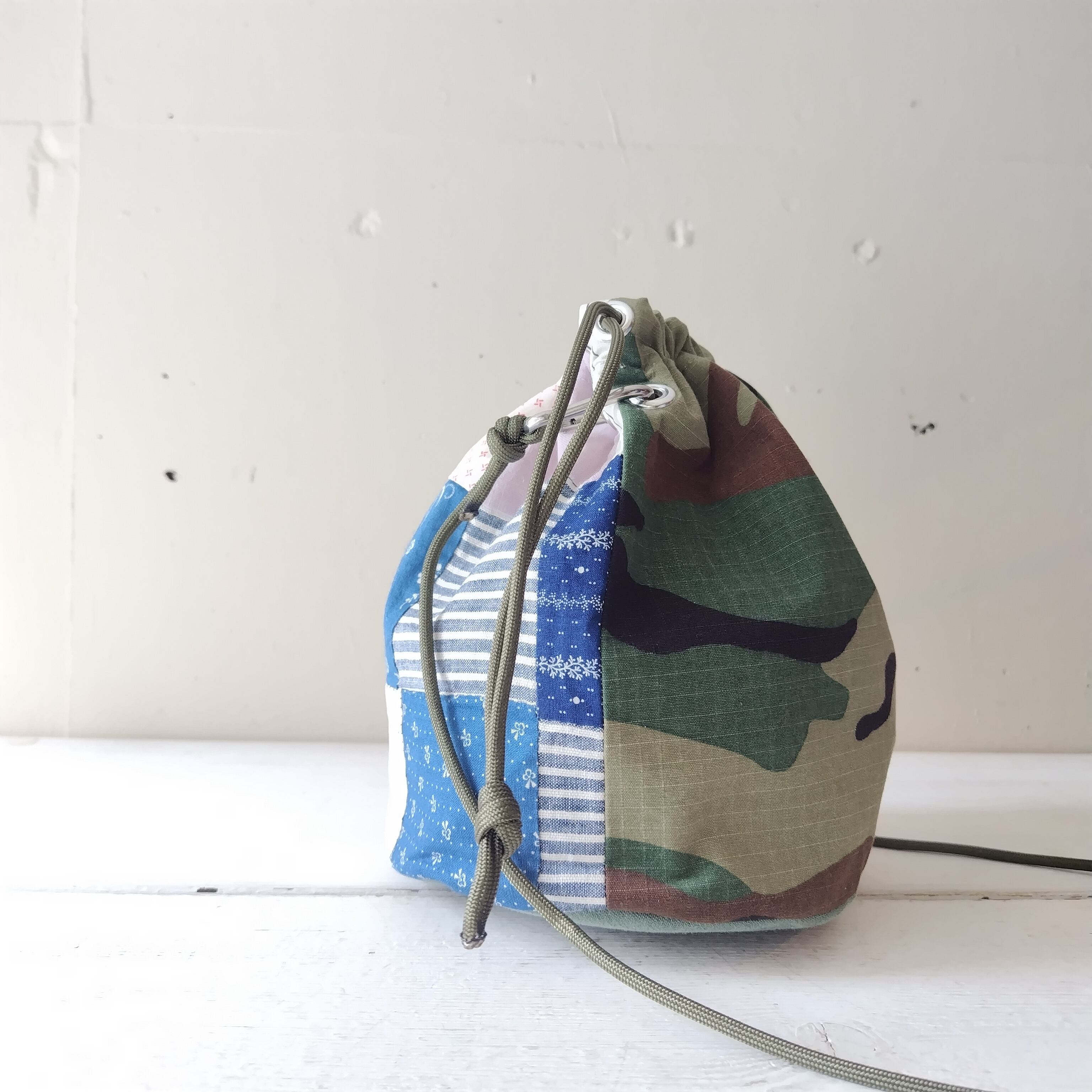 カモフラージュ x パッチワーク リメイク巾着 2wayショルダーバッグ