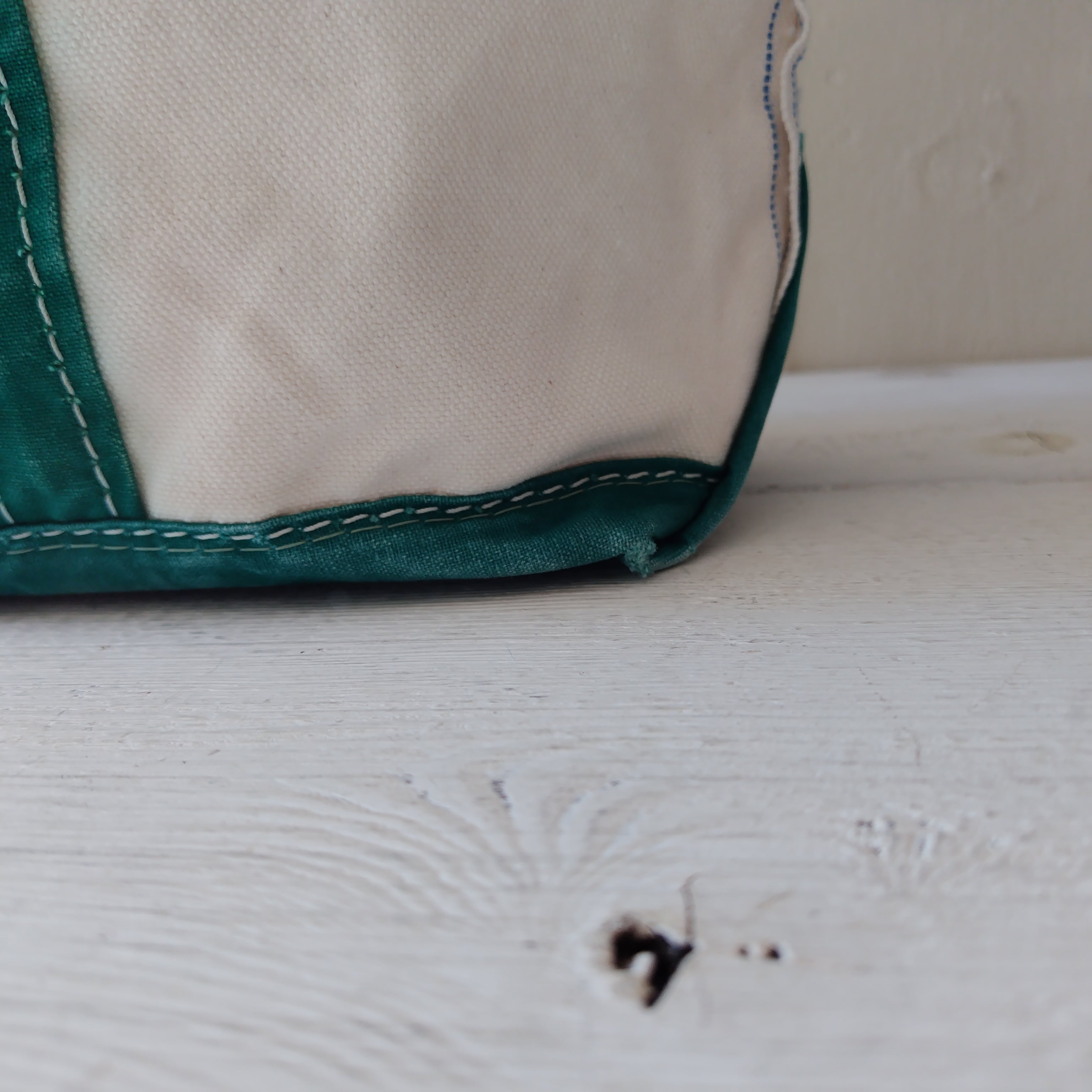 洗いこんだフェード感、生地にクスミや微量のシミ、底角に若干のダメージがございます。