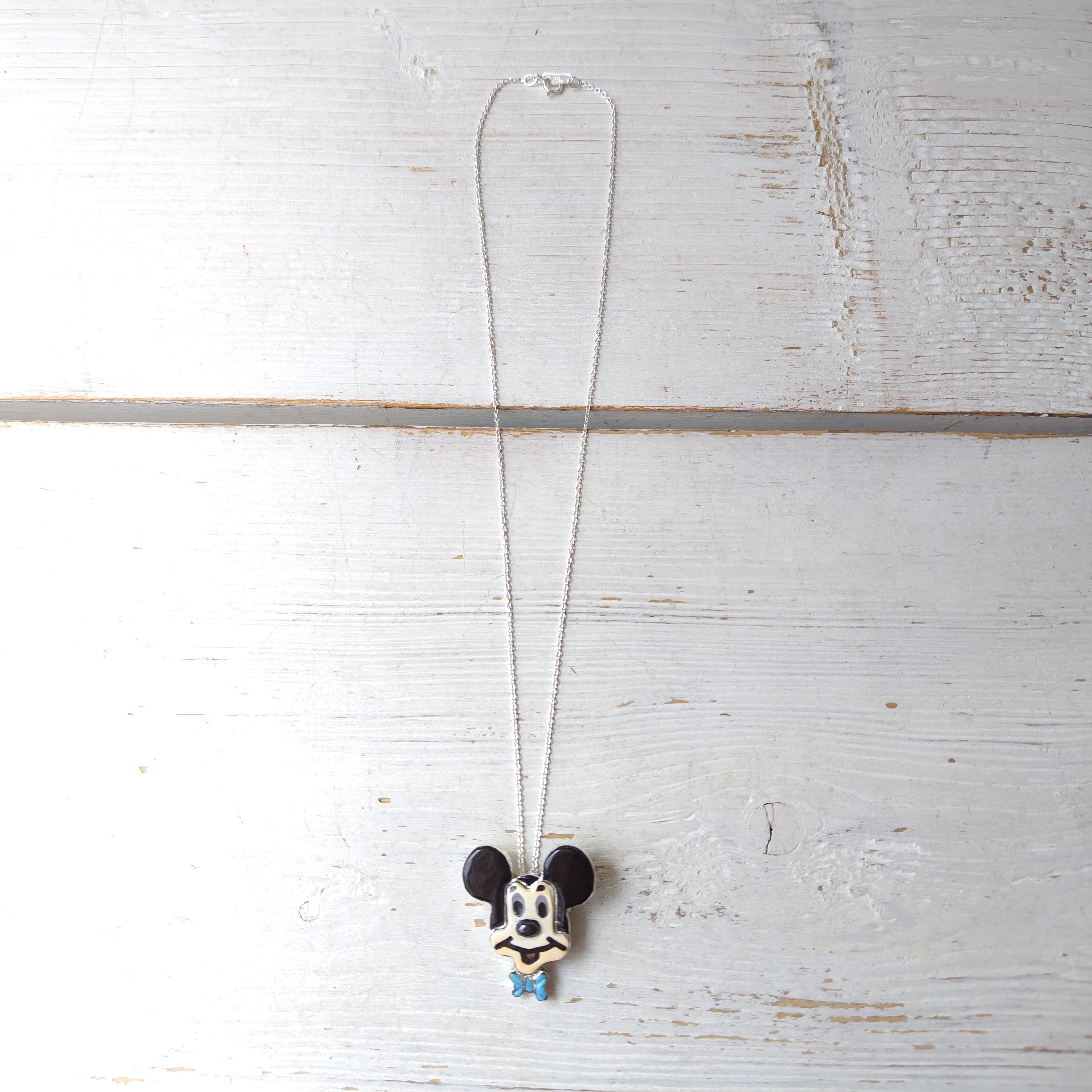 ZUNI Andrea Lonjose インレイ シルバートップ + ブローチ 45cm シルバーチェーン付き インディアンジュエリー