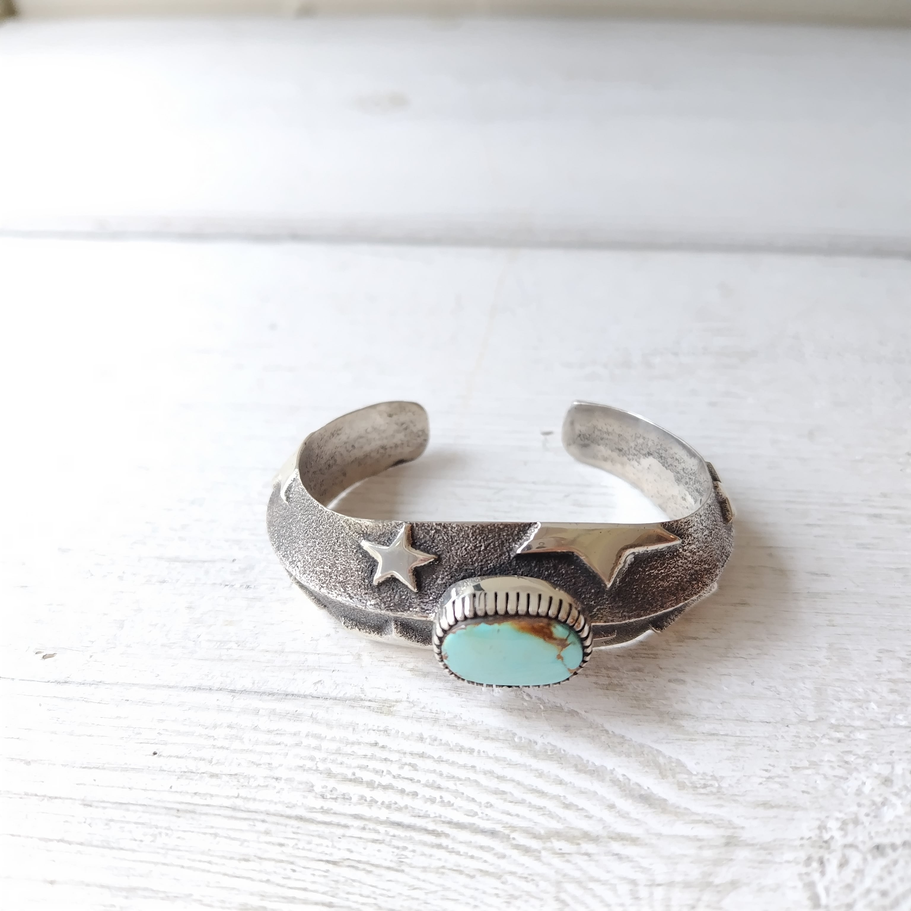 ナバホ Kevin Yazzie Royston Turquoise スター シルバーバングル インディアンジュエリー