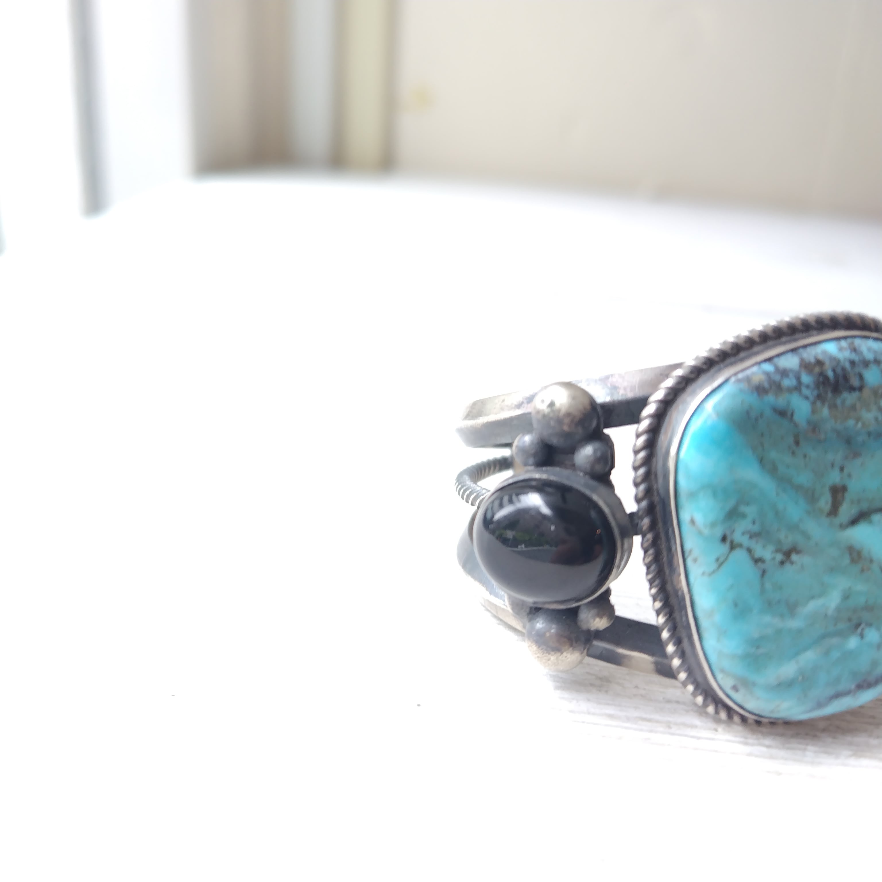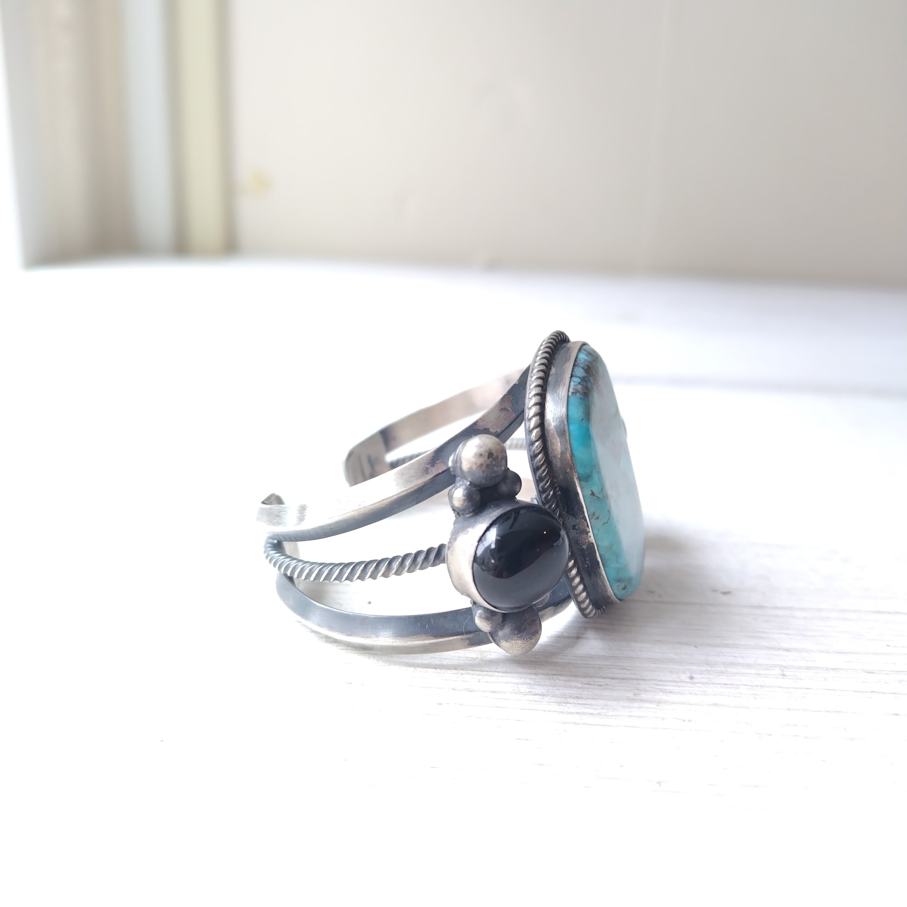 ナバホ Chimney Butte Stormy Mt Turquoise シルバーバングル インディアンジュエリー