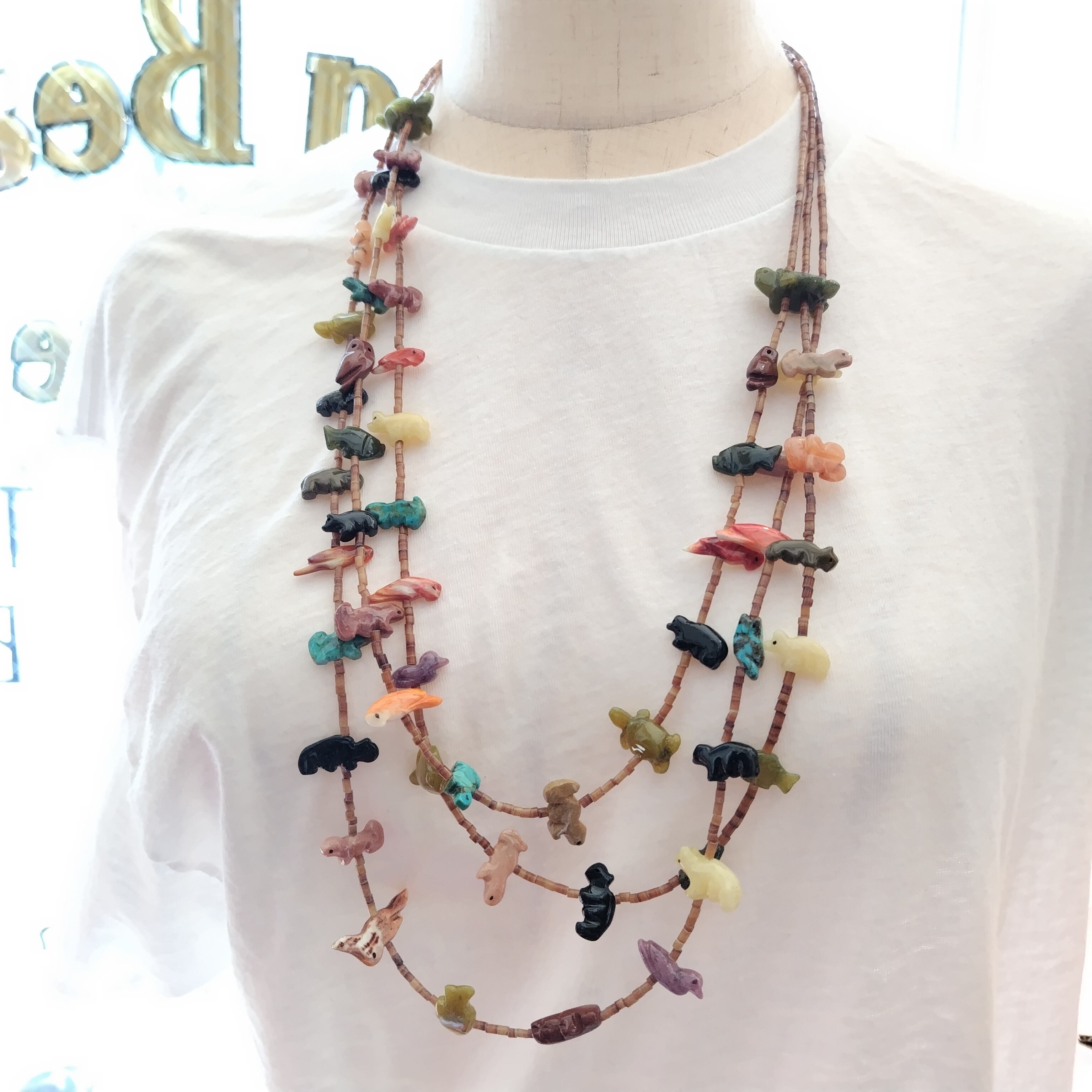 80cm 3連 ナバホ フェティッシュネックレス インディアンジュエリー