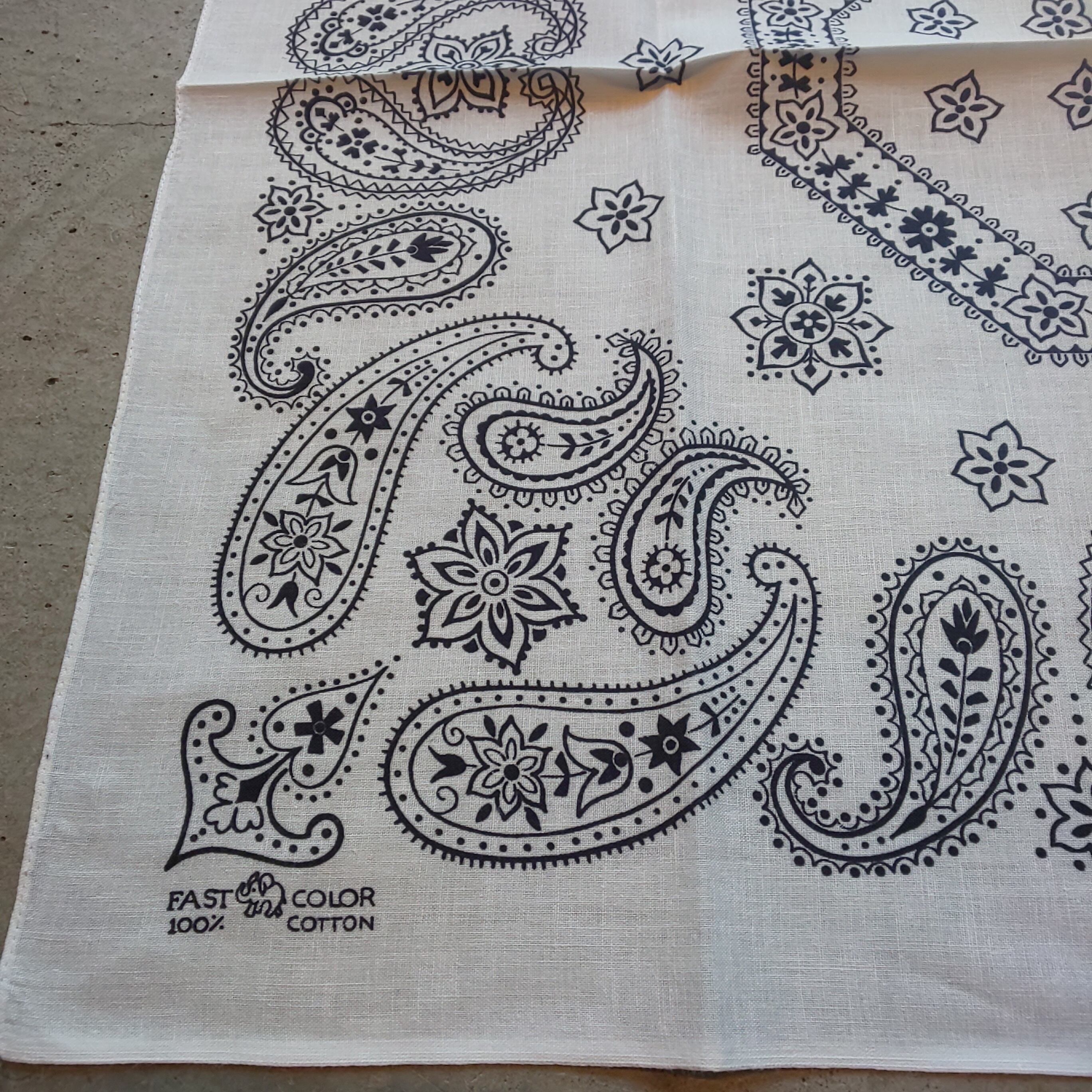 レアカラー ホワイト x ブラック エレファントブランド ビンテージ バンダナ