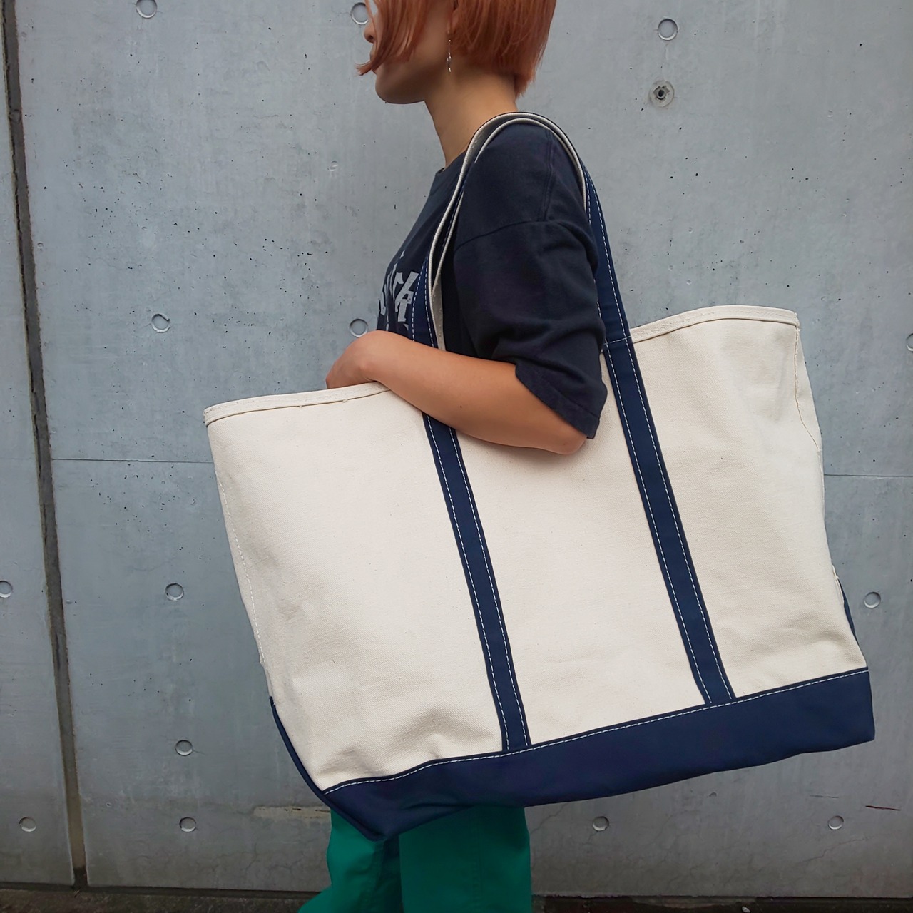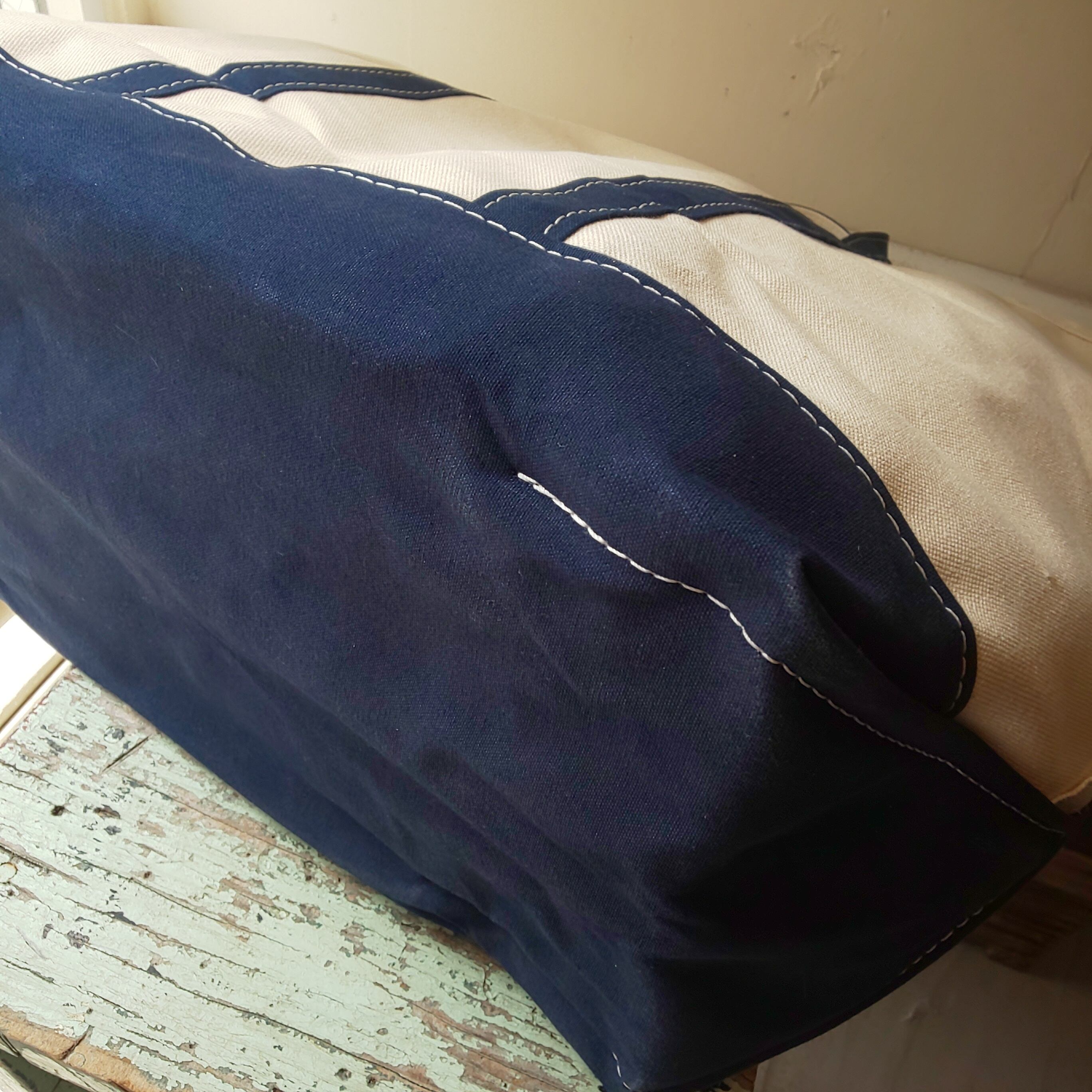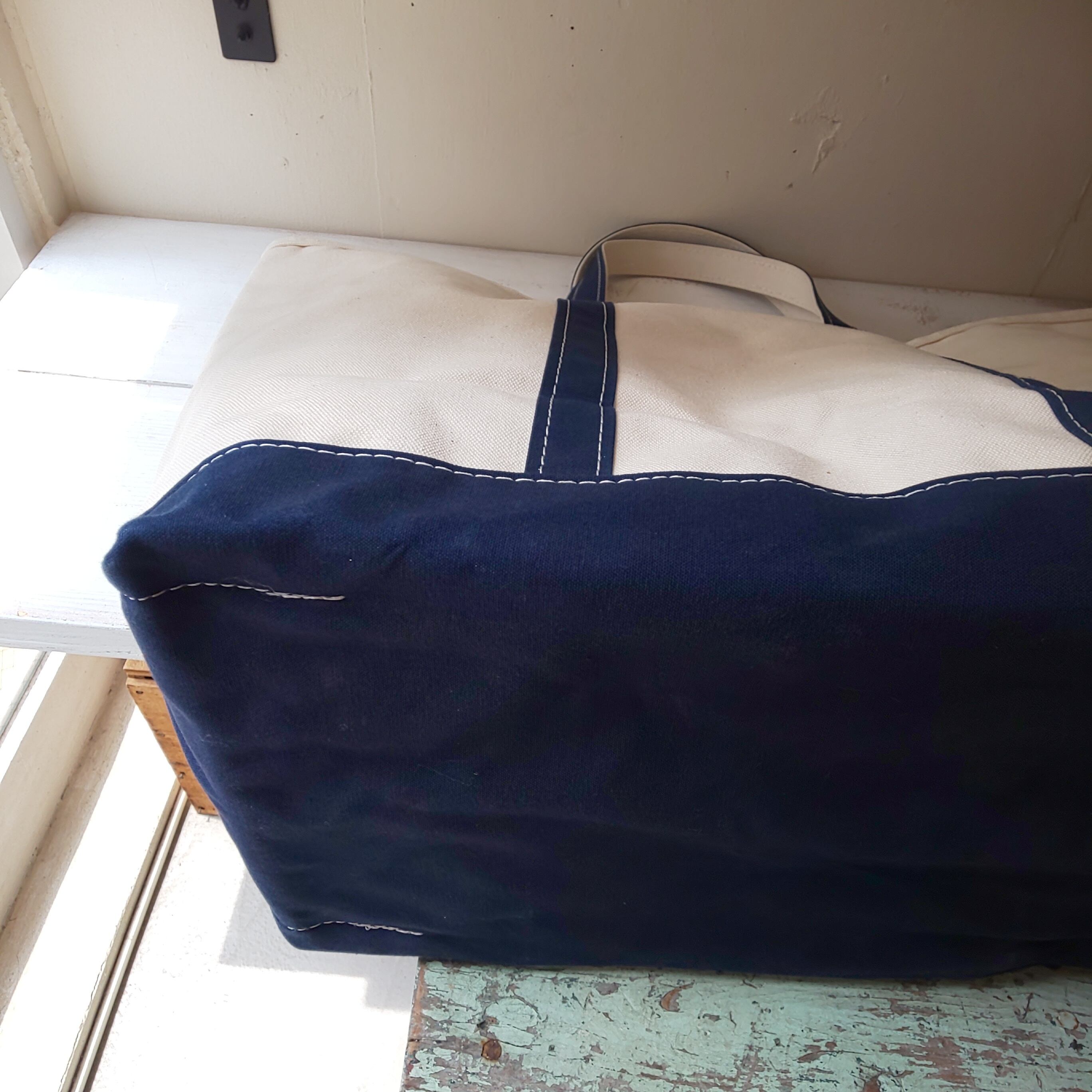 いいコンディション、 使用感の少ない 生地にハリがしっかり残るビッグサイズの L.L.Bean 80s~90s ネイビーハンドル トートバッグになります!