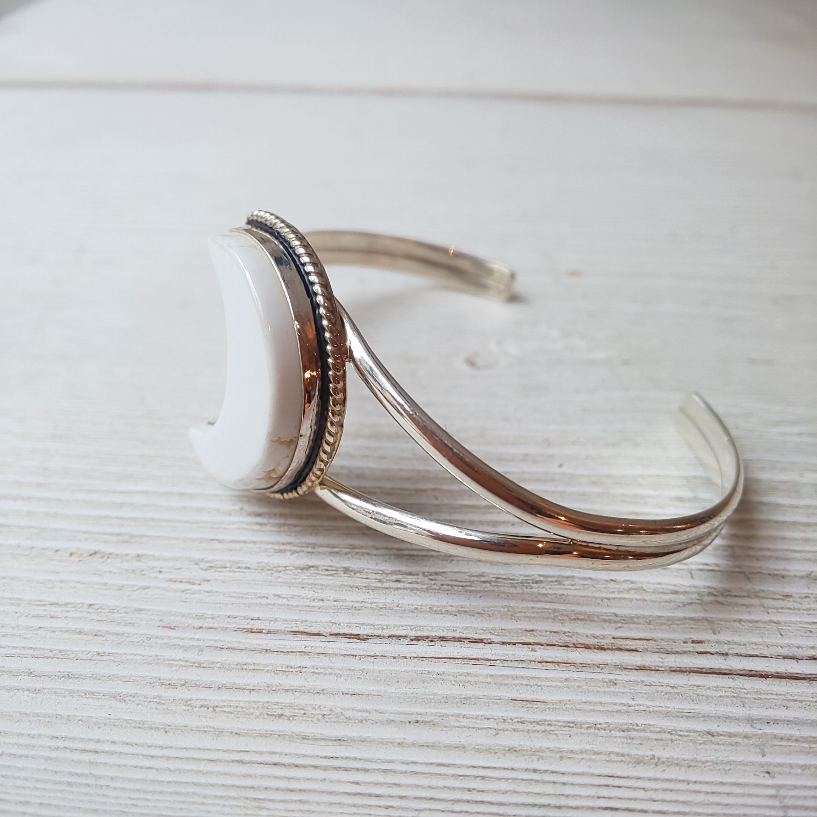 ナバホ シルバー クレセントムーン バングル ホワイトバッファロー インディアンジュエリー