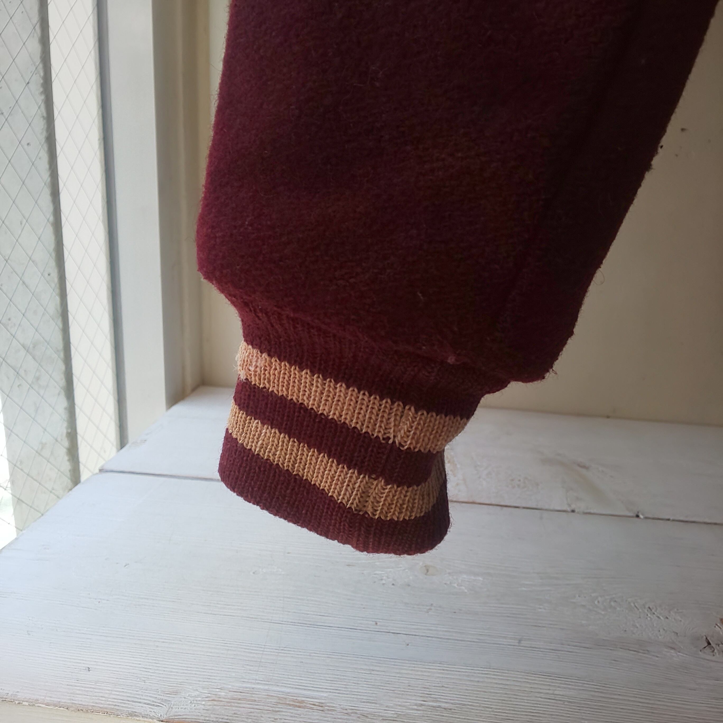 生地の毛羽立ち、裾、袖のリブに微量のシミと使用感、肩のレザーにスレ、外からはわかりませんが中の刺繍裏に微量のシミなどございます。