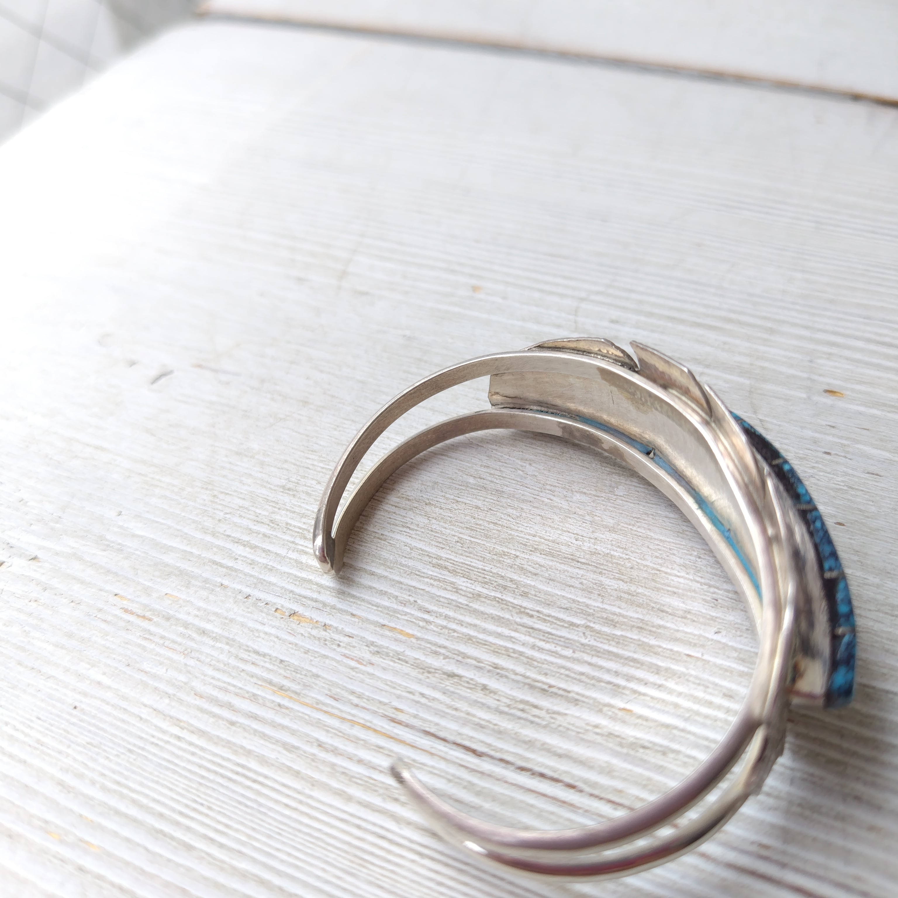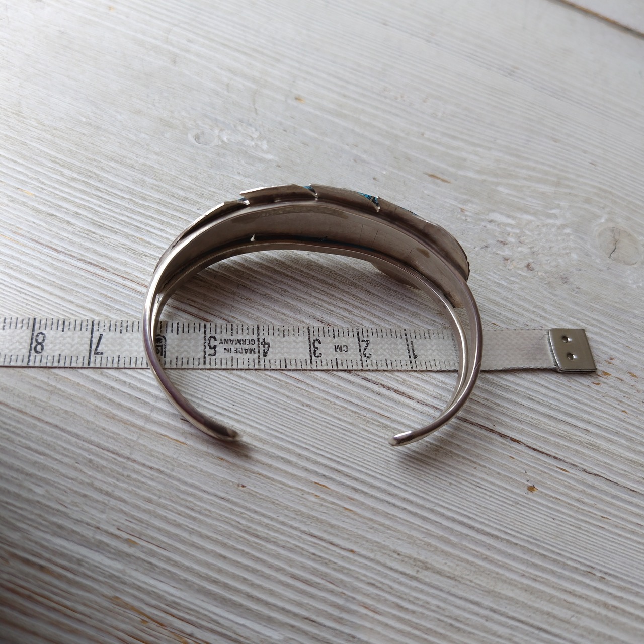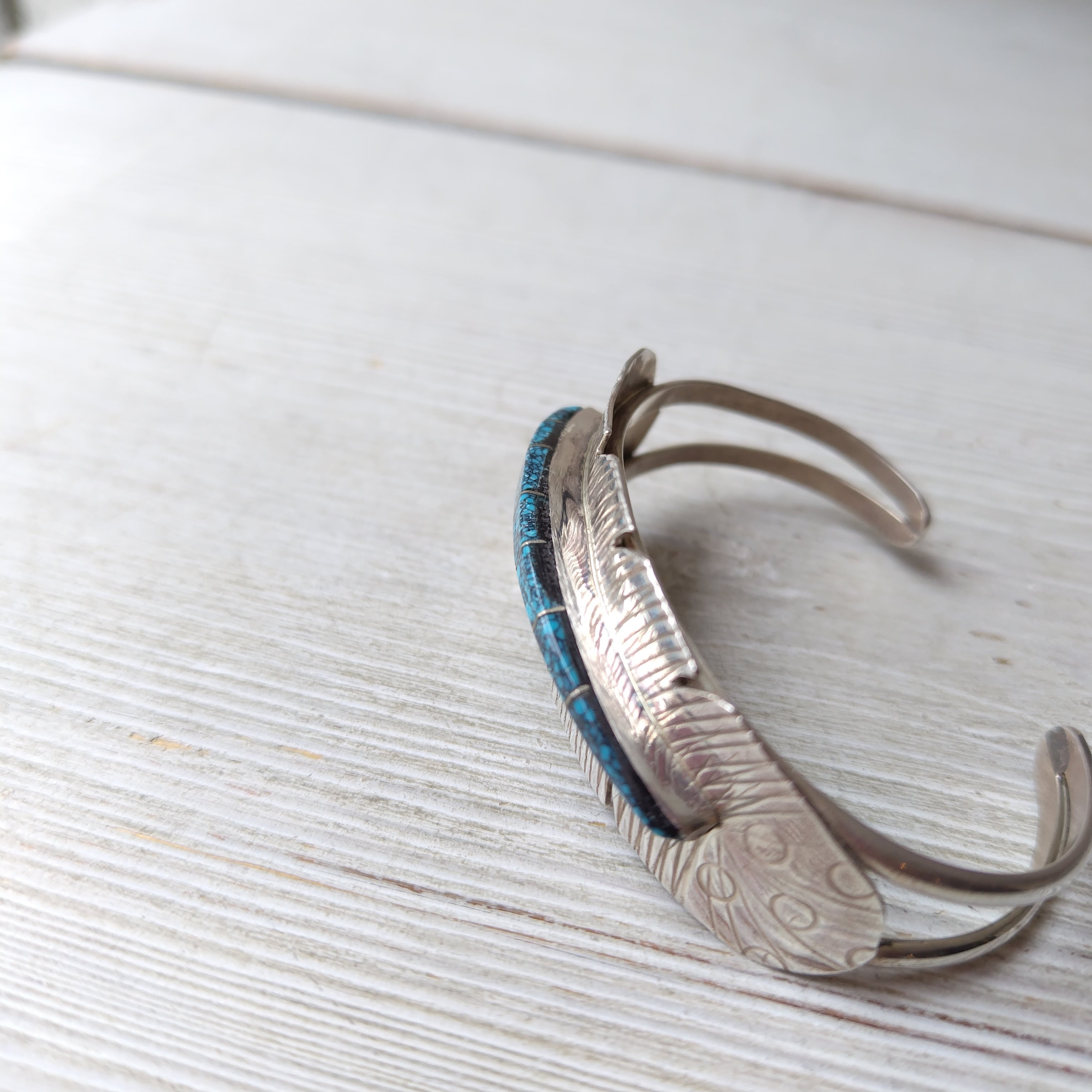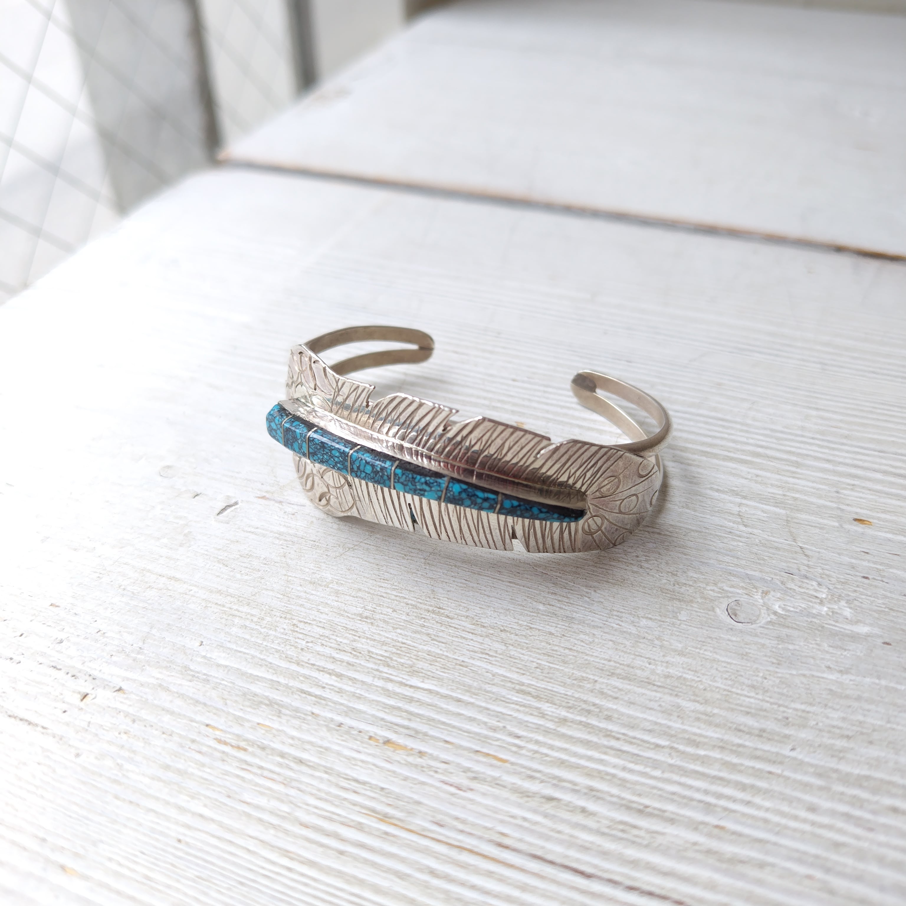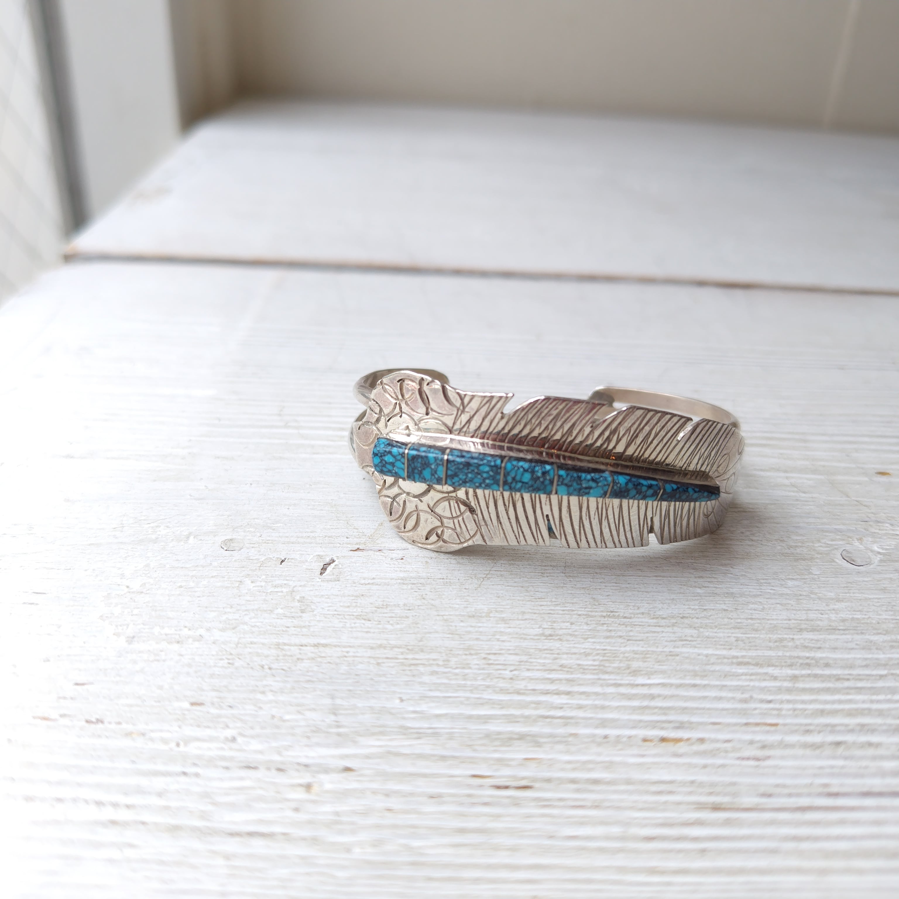 ナバホ ターコイズ フェザーシルバーバングル インディアンジュエリー