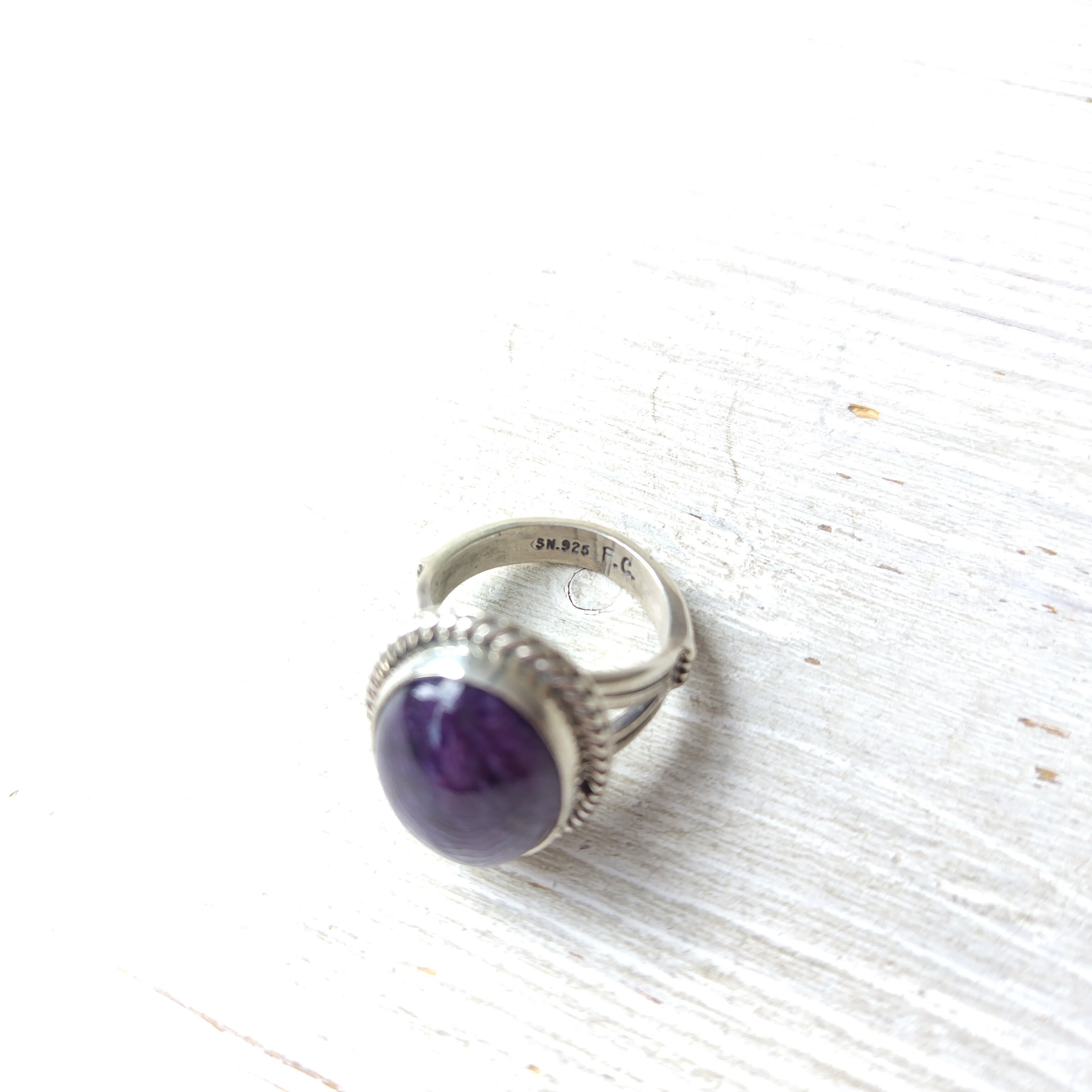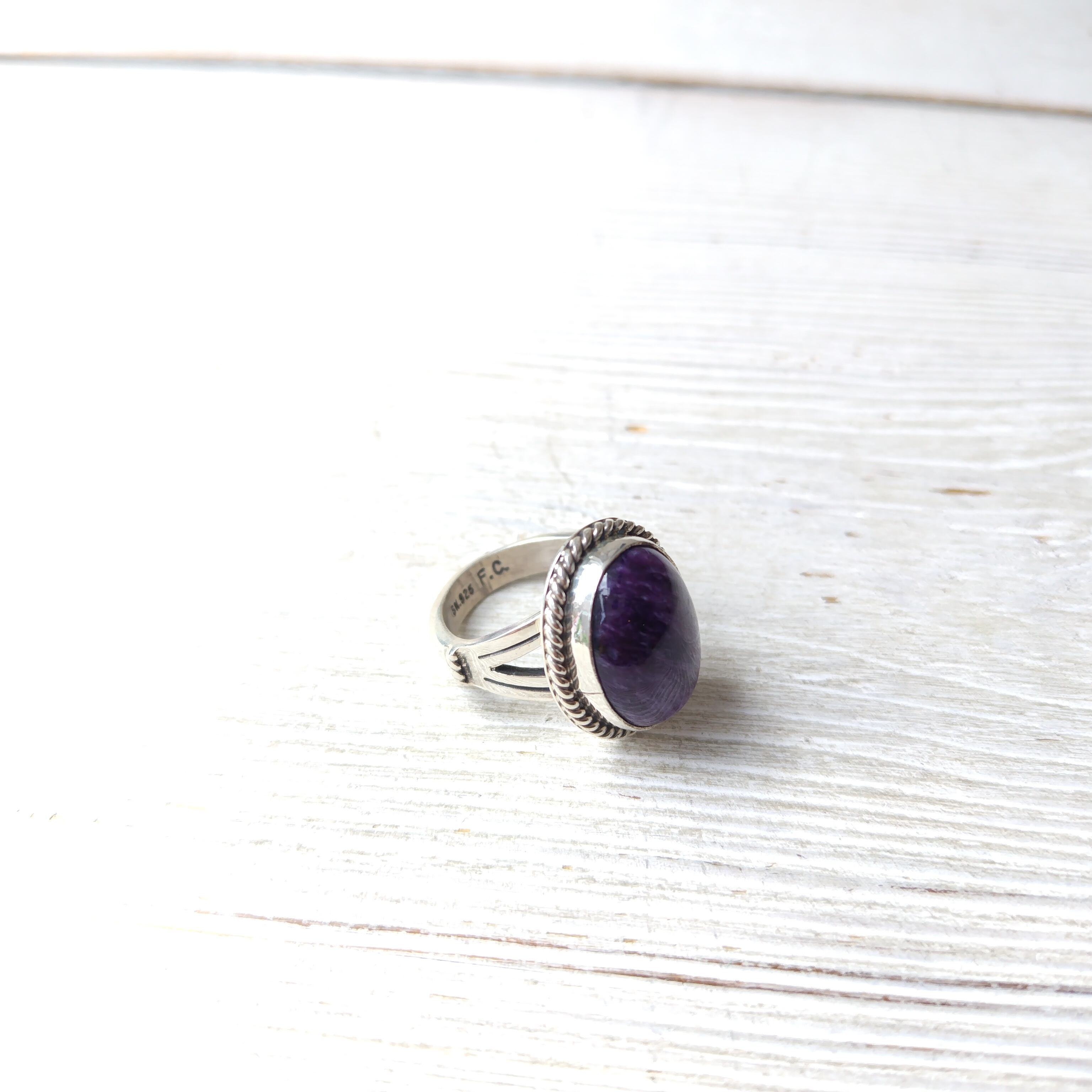 ナバホ チャロアイト シルバーリング 14号 インディアンジュエリー