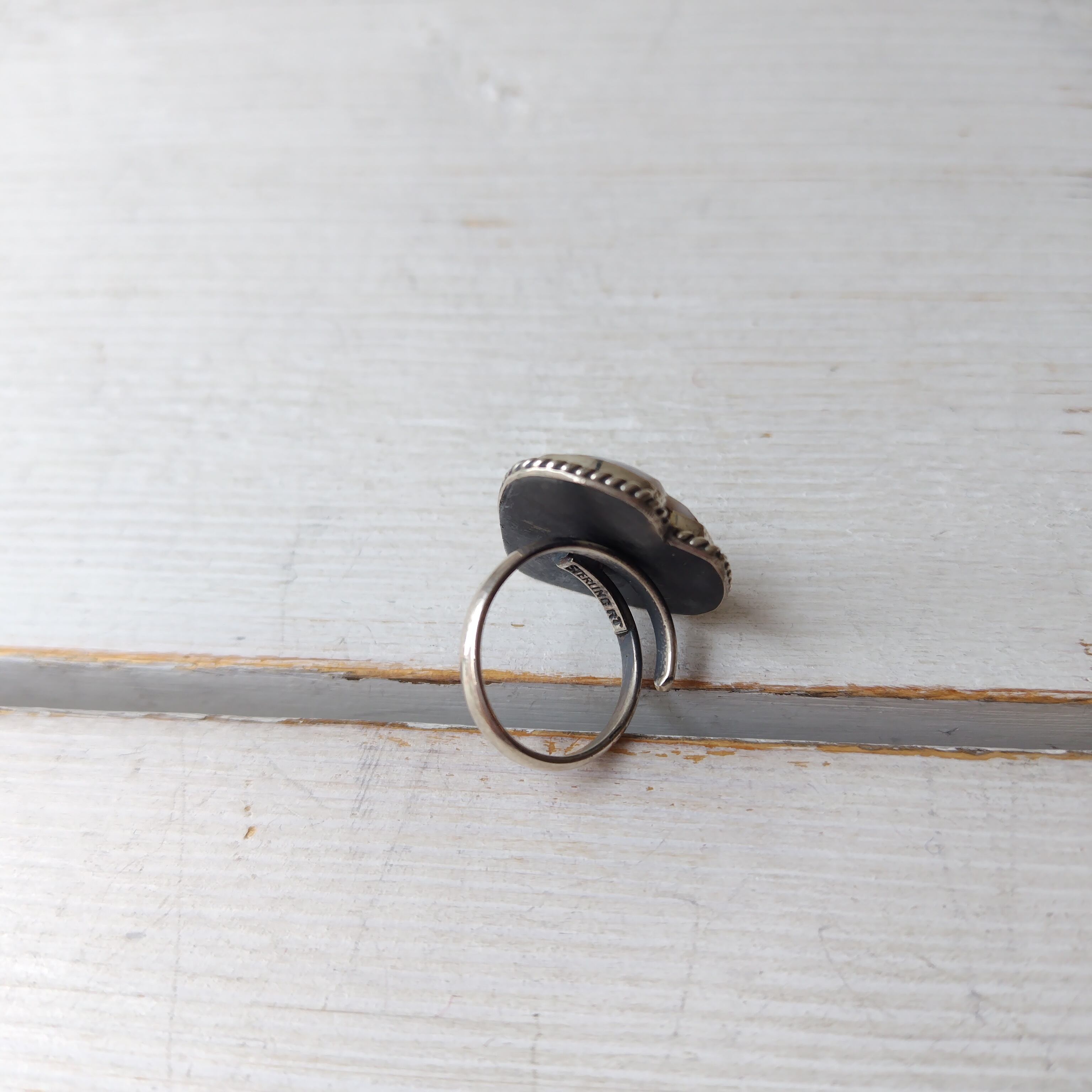 ナバホ ホワイトバッファロー ハートシルバーリング 12号前後 フリーサイズ インディアンジュエリー