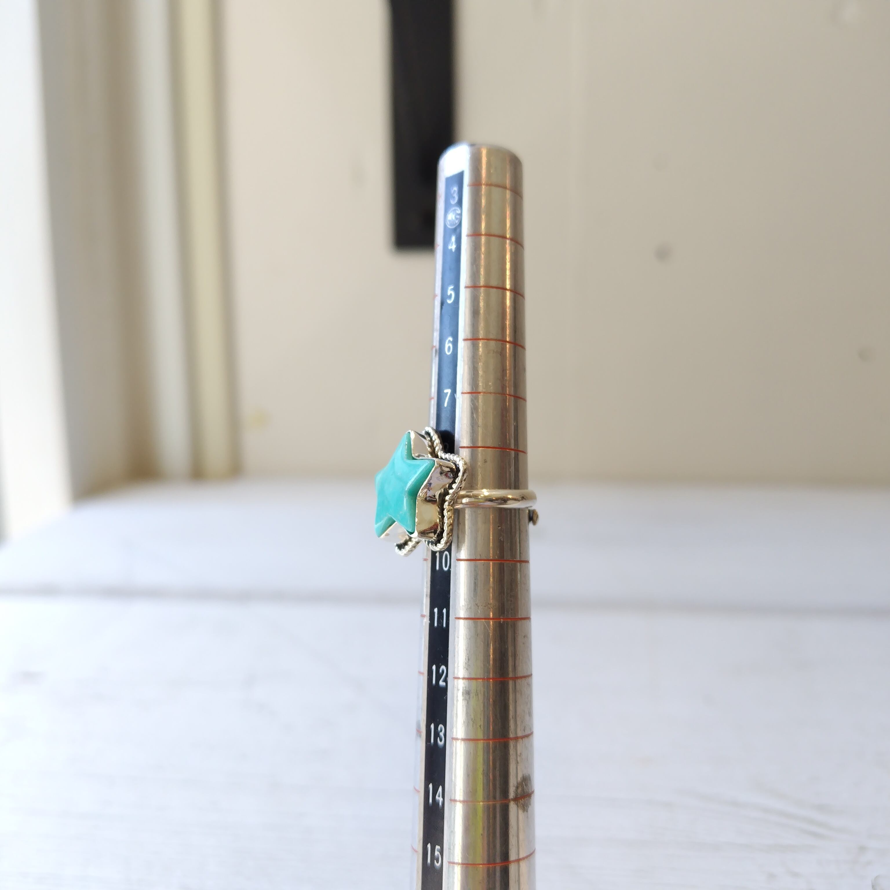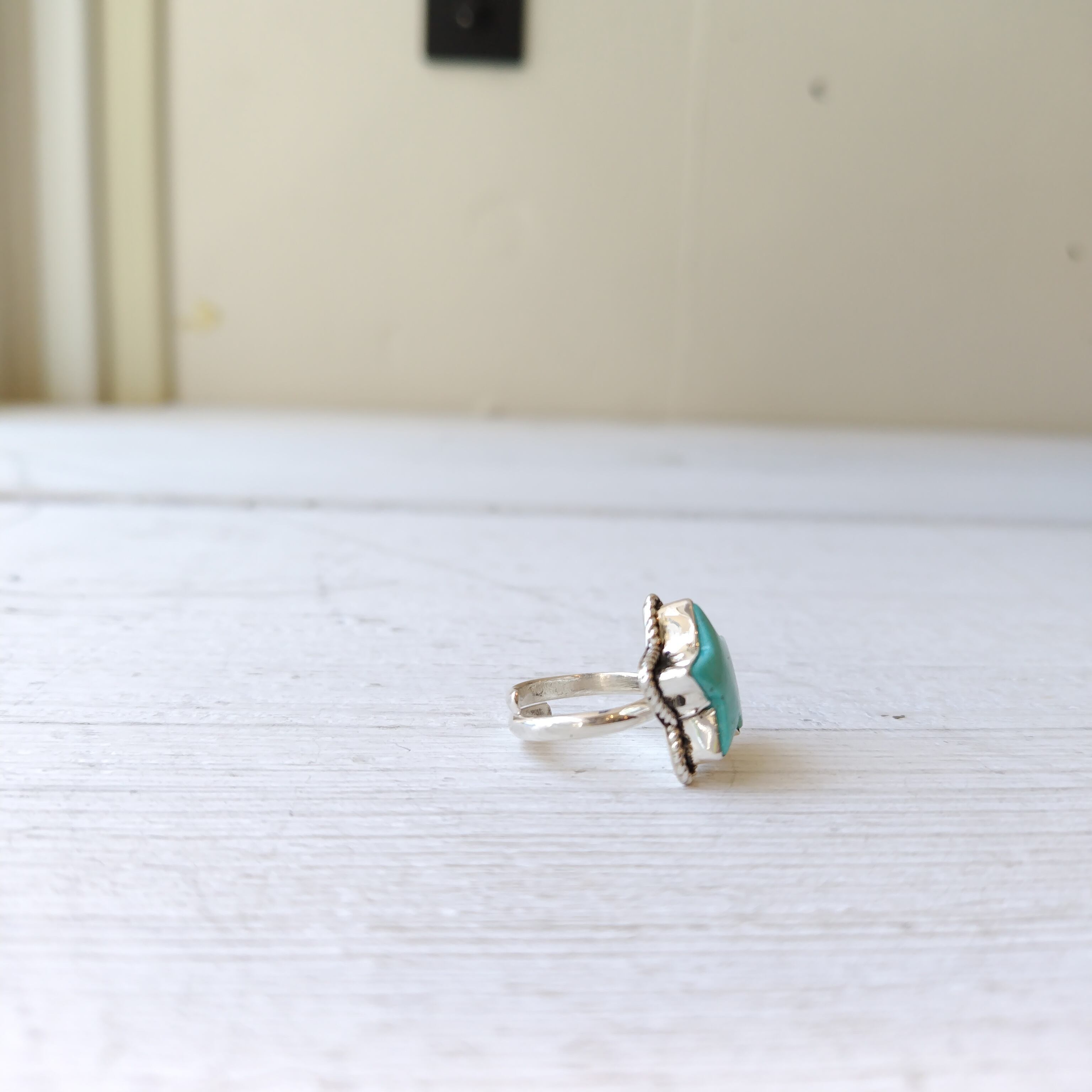 9号前後 フリーサイズ ナバホ KINGMAN TURQUOISE スターシルバーリング インディアンジュエリー
