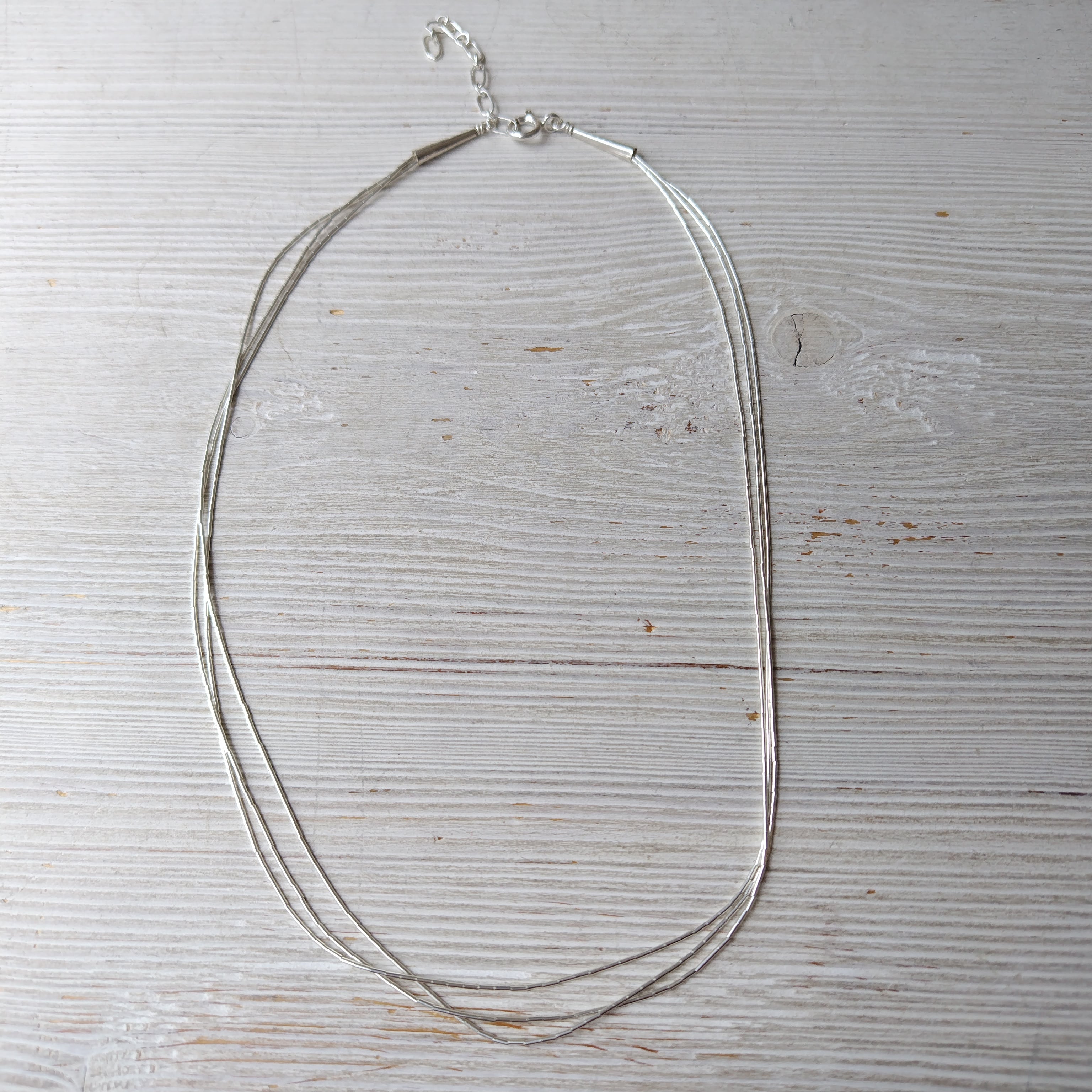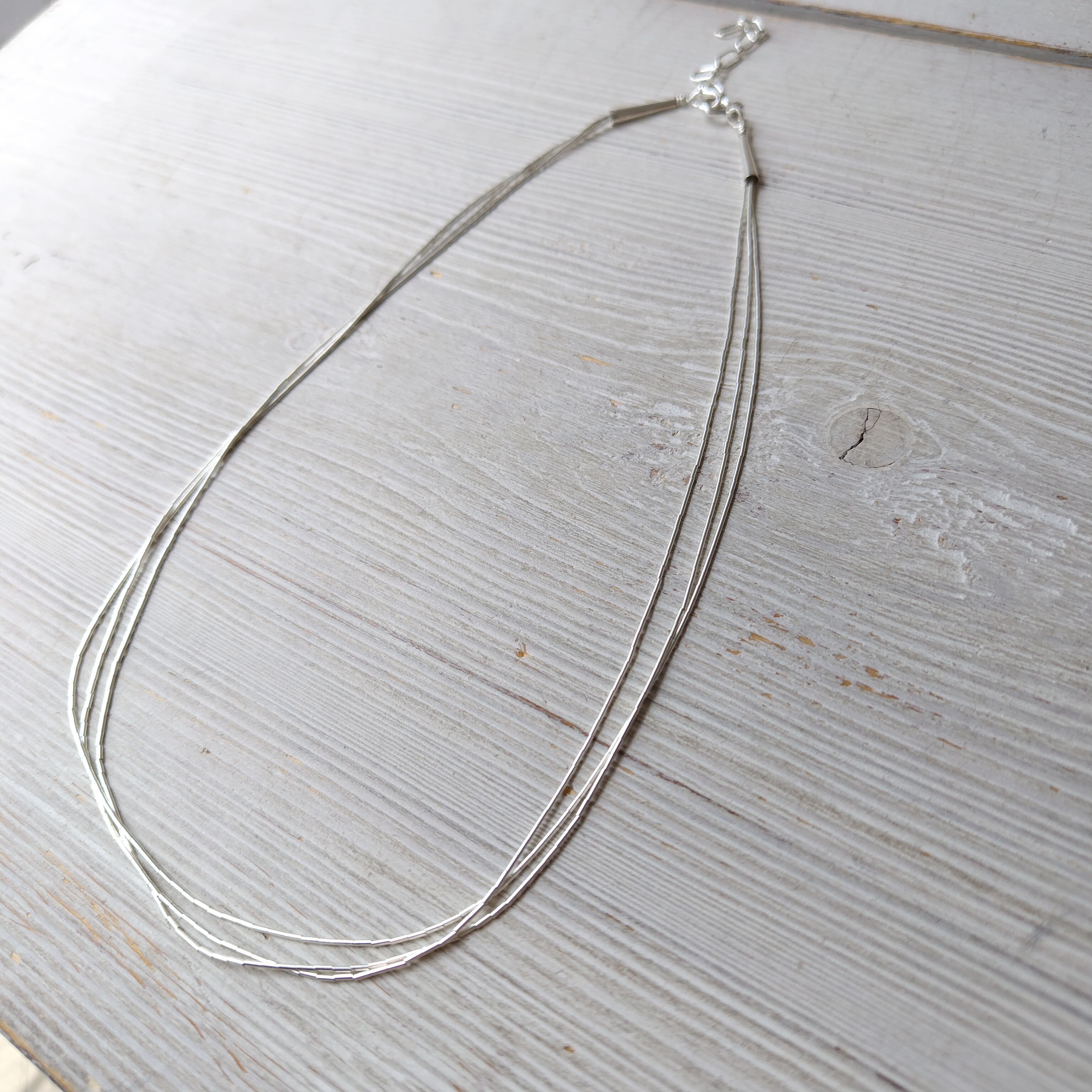 40cm + アジャスター5cm ナバホ 3連 リキッド シルバーネックレス インディアンジュエリー