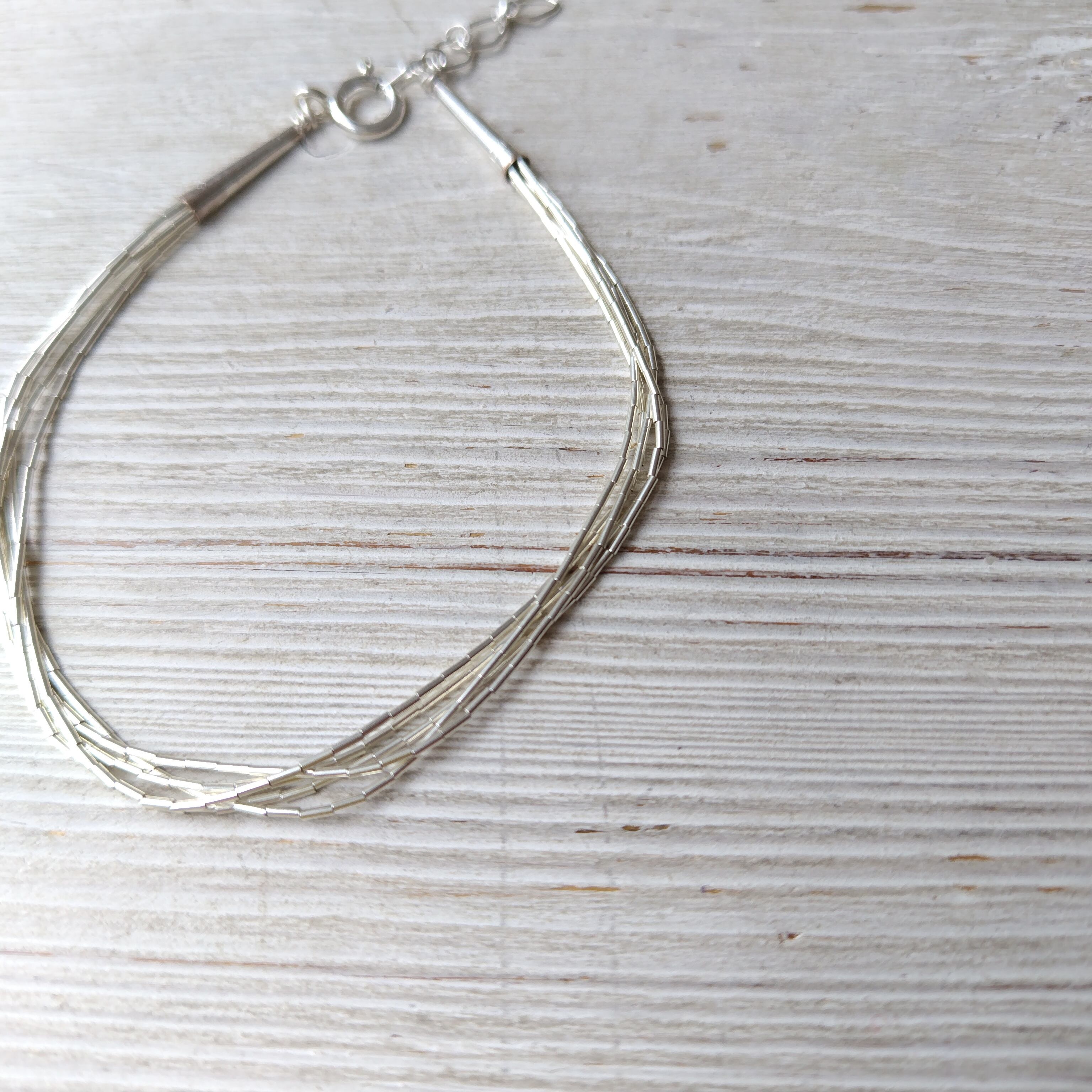 5連 18cm + アジャスター 2cm ナバホ リキッドシルバーブレスレット インディアンジュエリー